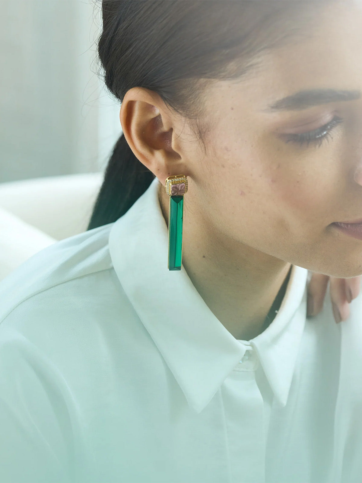 - Round Face: To elongate your face, choose long, angular earrings like teardrops or geometric shapes. Avoid overly round earrings, which can accentuate the roundness of your face.