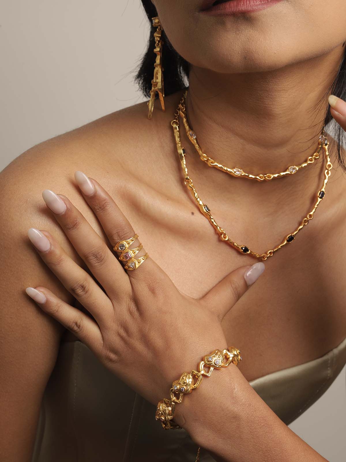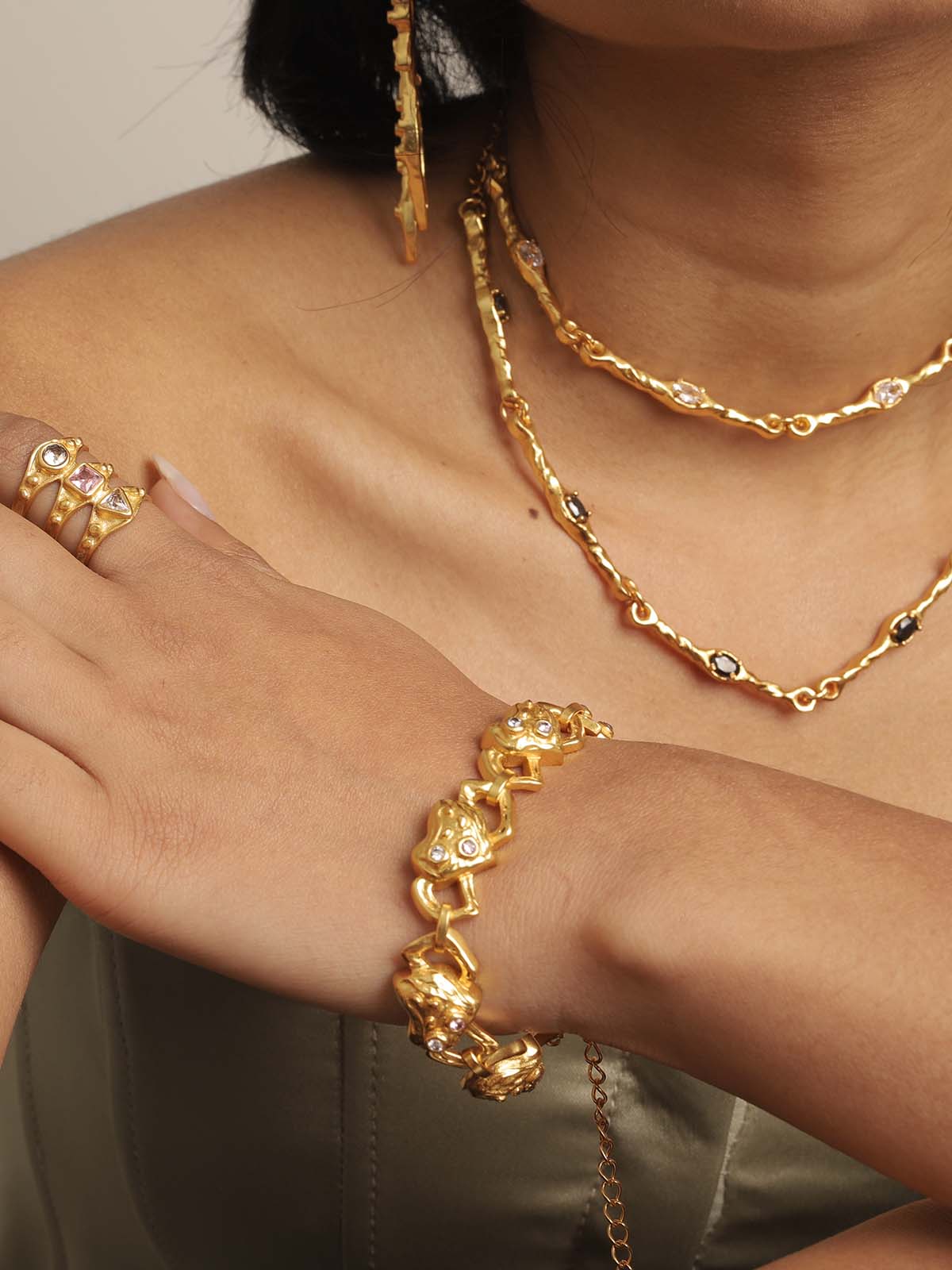 - Edgy Style: Go for bold, statement jewelry with geometric designs, chunky chains, and dark, dramatic pieces.