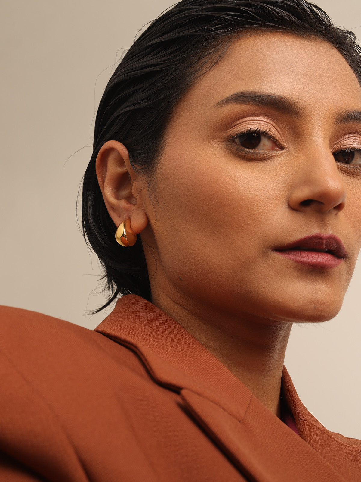 - High Neck: For high-neck or turtleneck styles, skip the necklace and go for bold earrings or stacked rings to add interest without overwhelming the look.