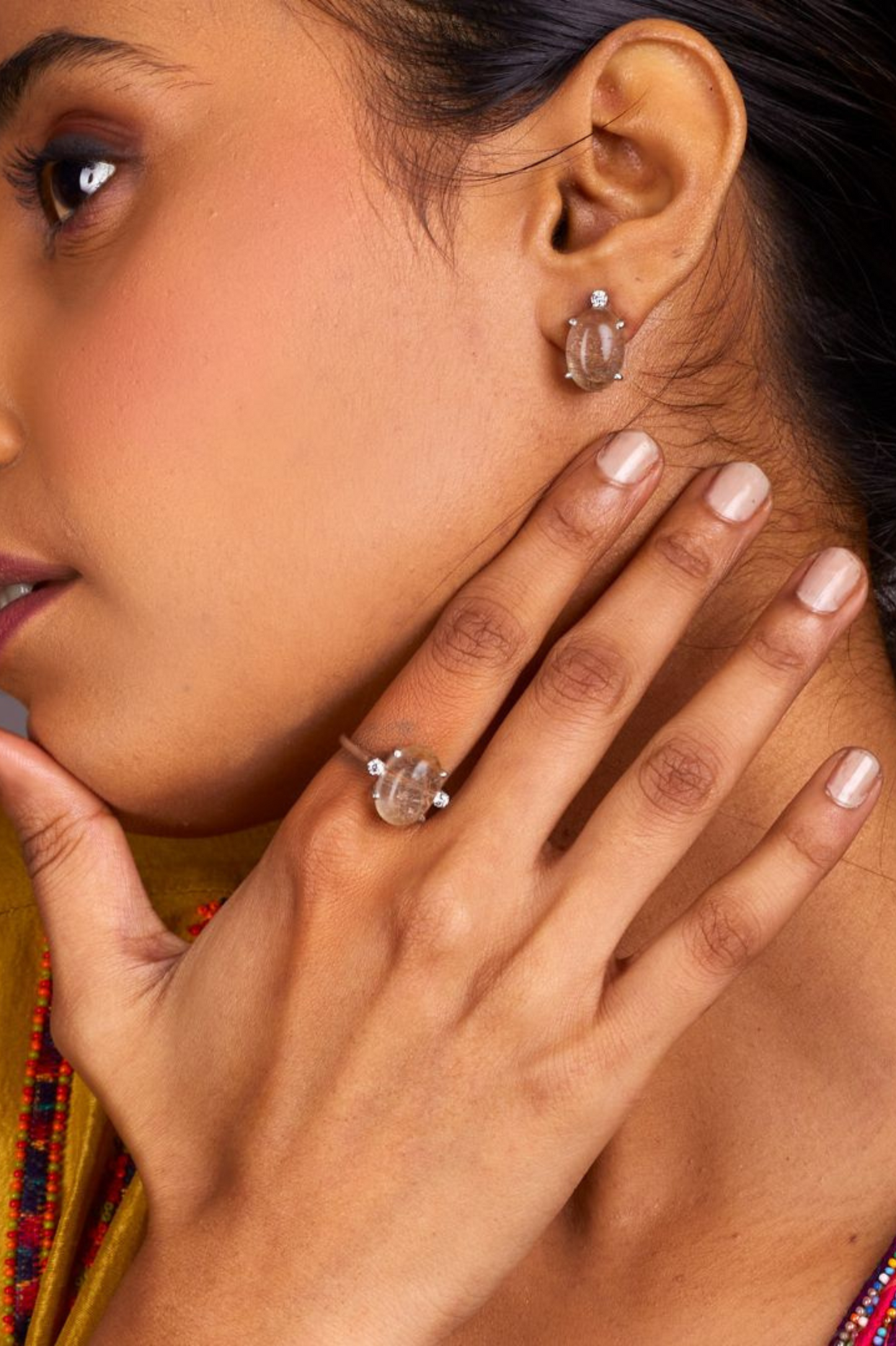 Stones Used : Cabochon Golden Rutile & Cubic Zircon