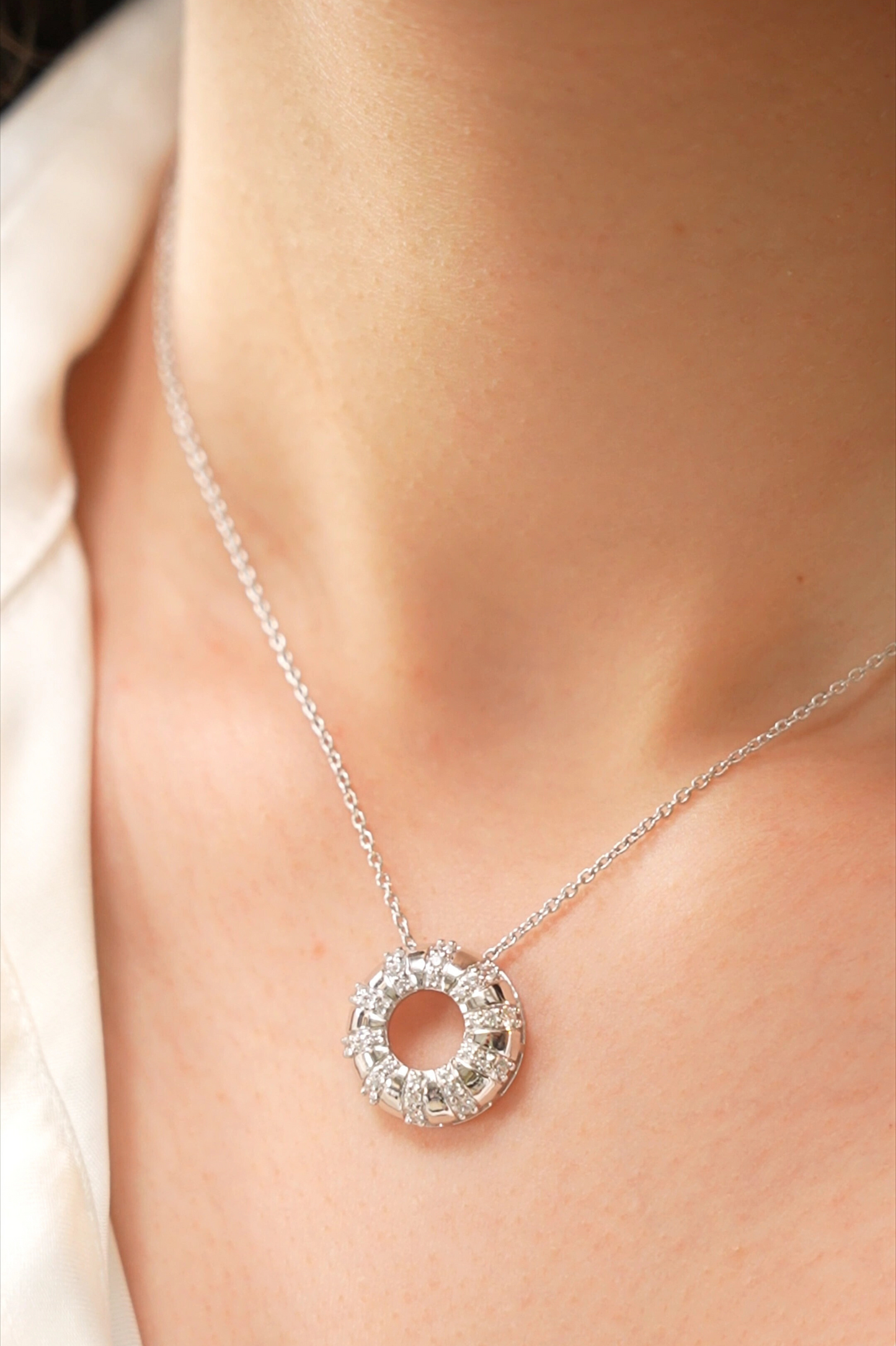 The Alterna Necklace is a sleek, modern piece crafted in sterling silver, adorned with delicate CZ stones. Its minimalist design makes it the perfect accessory for layering or wearing solo, bringing an understated elegance to your everyday look.