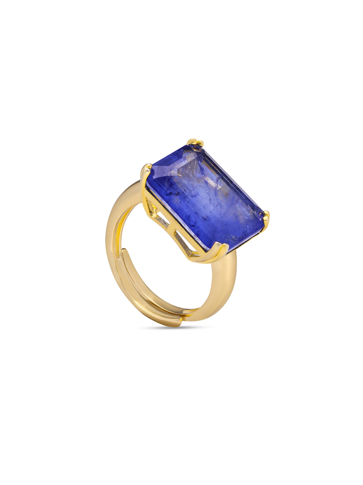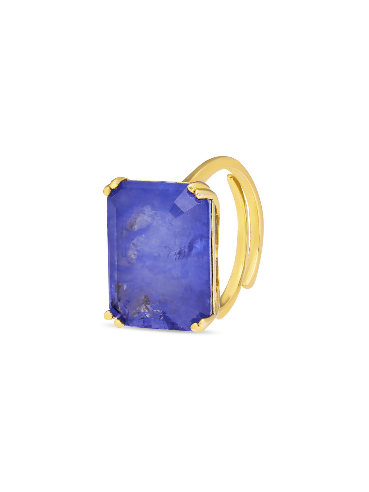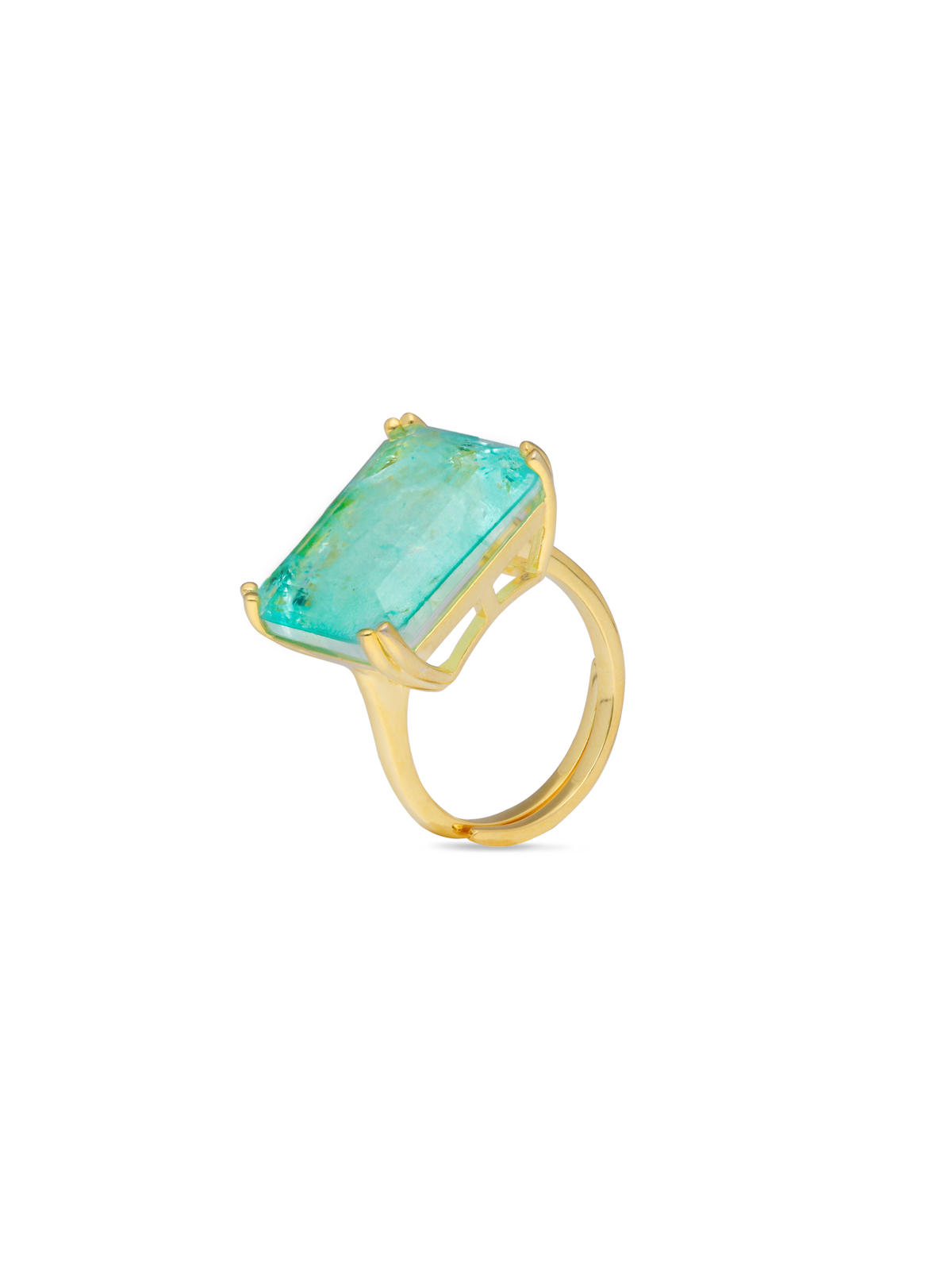 Command attention with this statement ring featuring a stunning aqua blue stone evoking the mesmerizing hues of the ocean, set in gold-plated sterling silver.