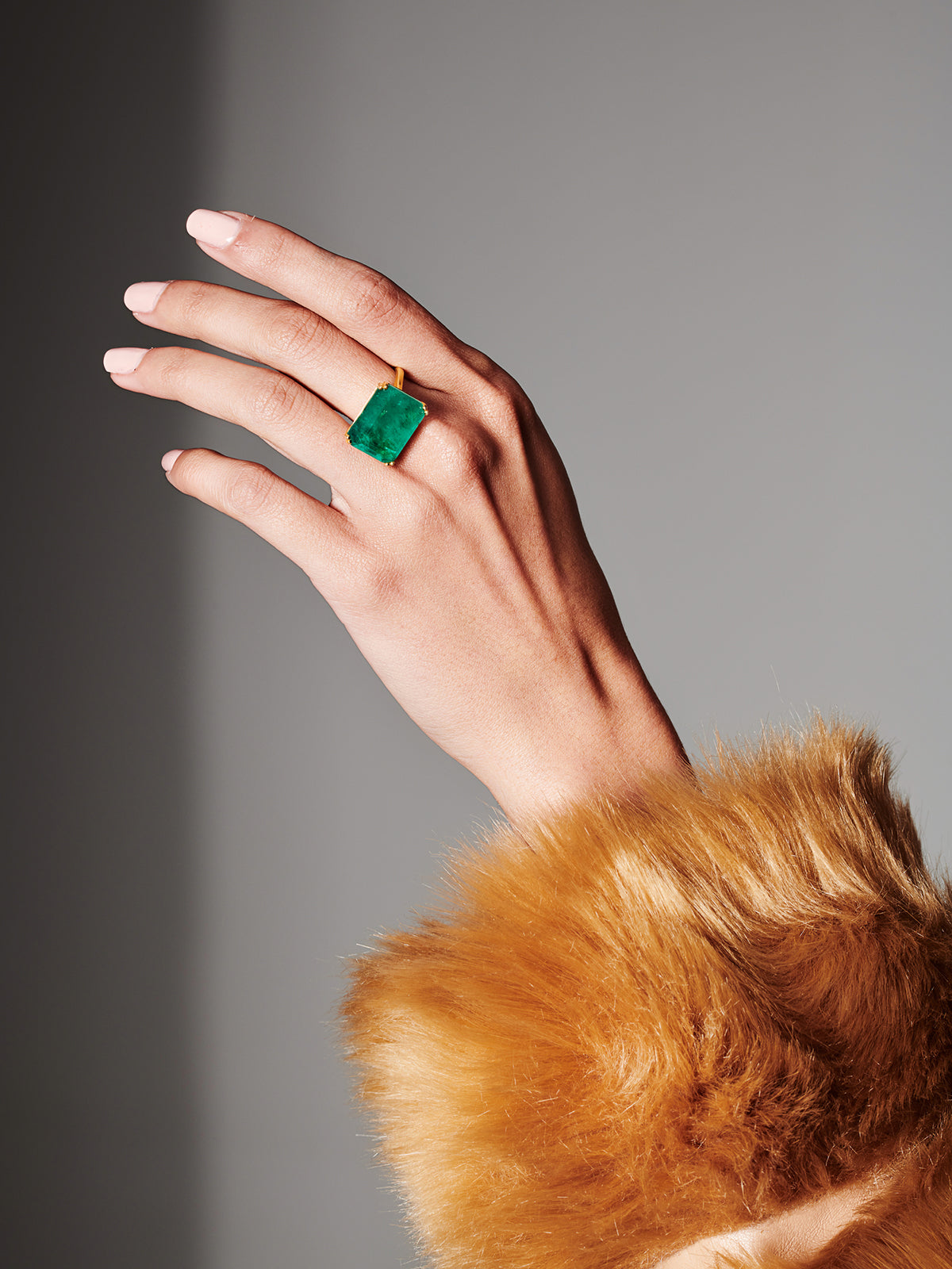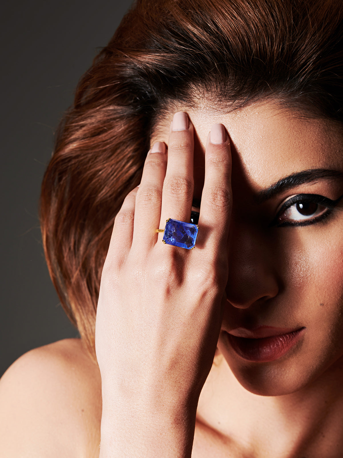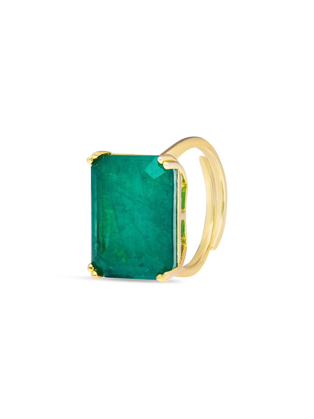 Command attention with this statement ring featuring a stunning aqua blue stone evoking the mesmerizing hues of the ocean, set in gold-plated sterling silver.