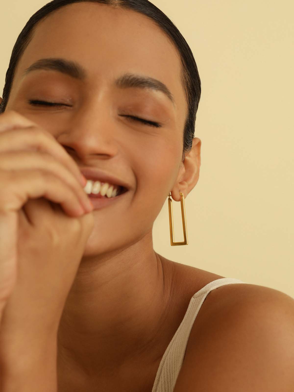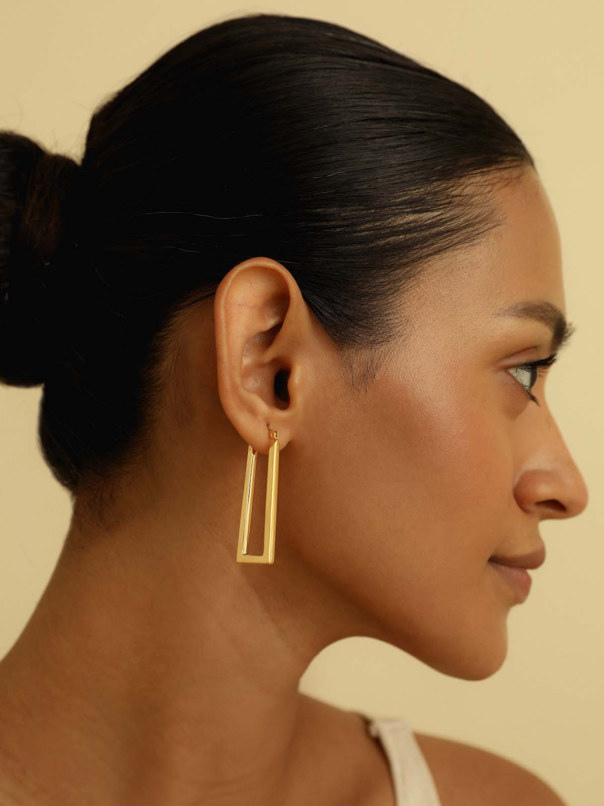 Inspired by the geometric charm- The Geometric Gold Hoop Earrings are crafted from sterling silver and adorned with a modern gold finish, these hoops blend contemporary design with timeless elegance for a sophisticated look.