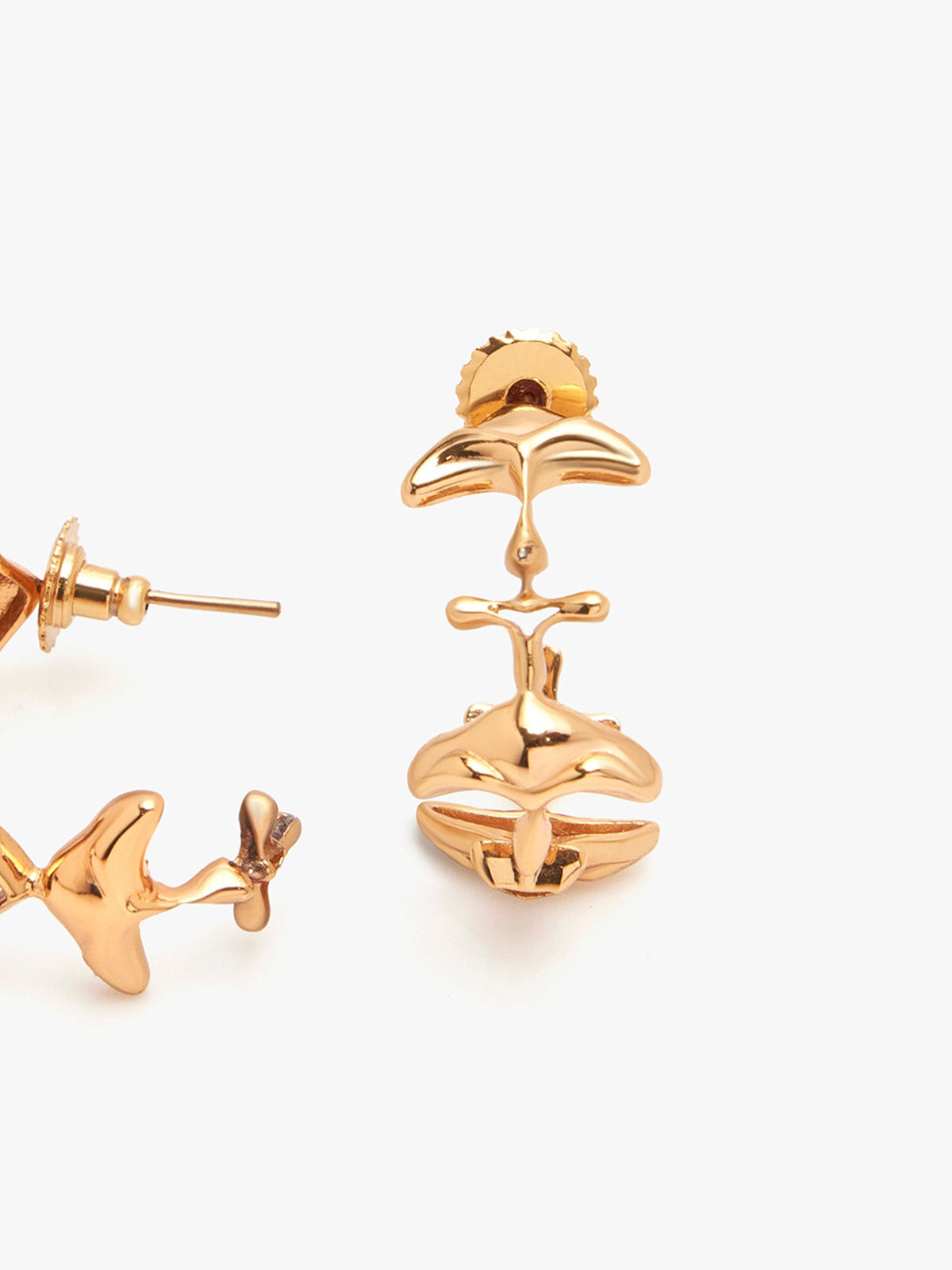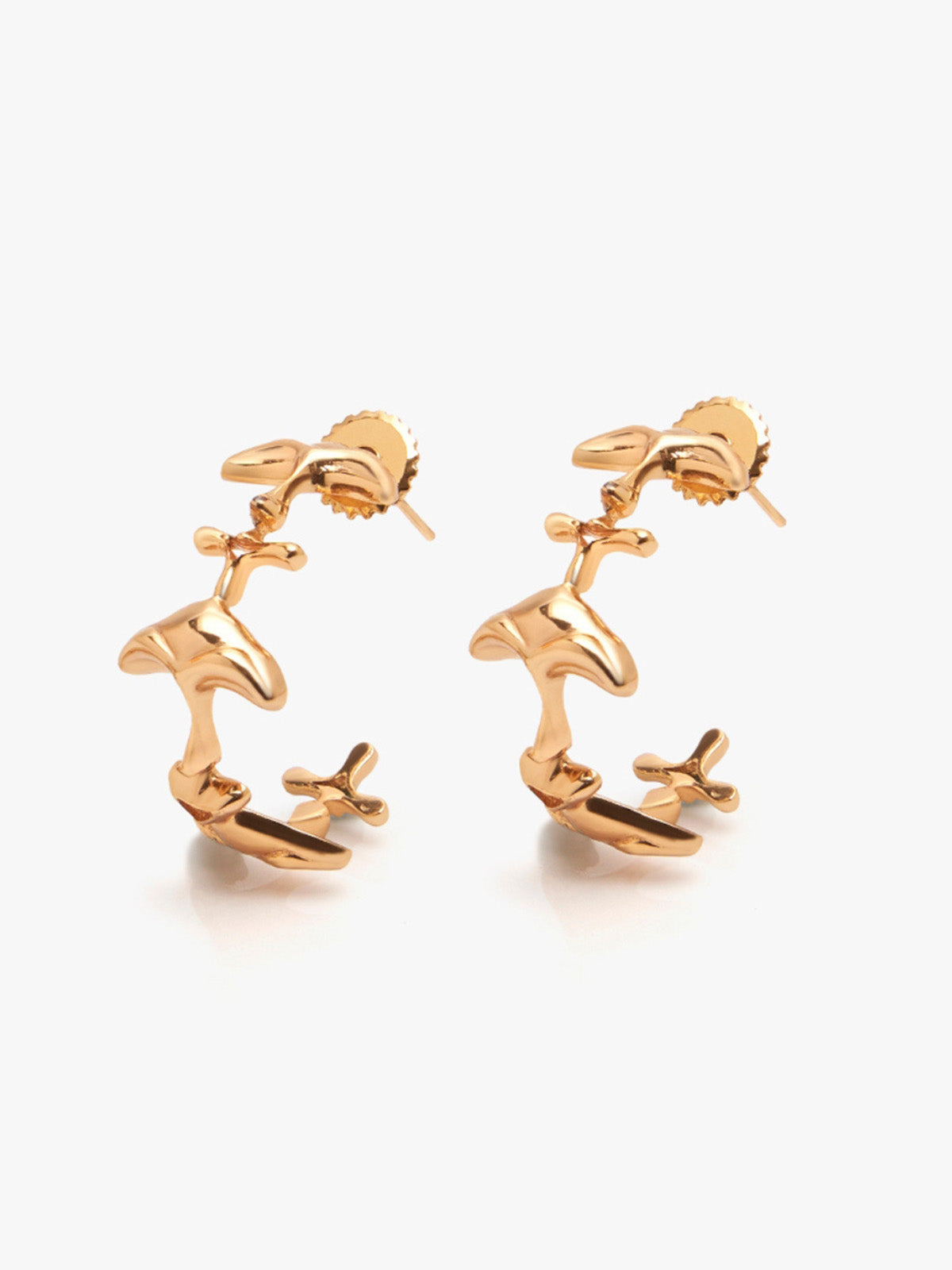 Embark on a bewitching voyage with the The Shroom Hoop Earrings, a delicate masterpiece recently unveiled in Outhouse's enchanted repertoire. This pair, delicately handcrafted, reveals the iconic Shroom motif pirouetting along its circumference, whispering tales of both delicacy and boldness in an ethereal design language. These earrings are embraced by the resplendent beauty of 22K gold. Style this whimsical duo as celestial whispers framing your face.