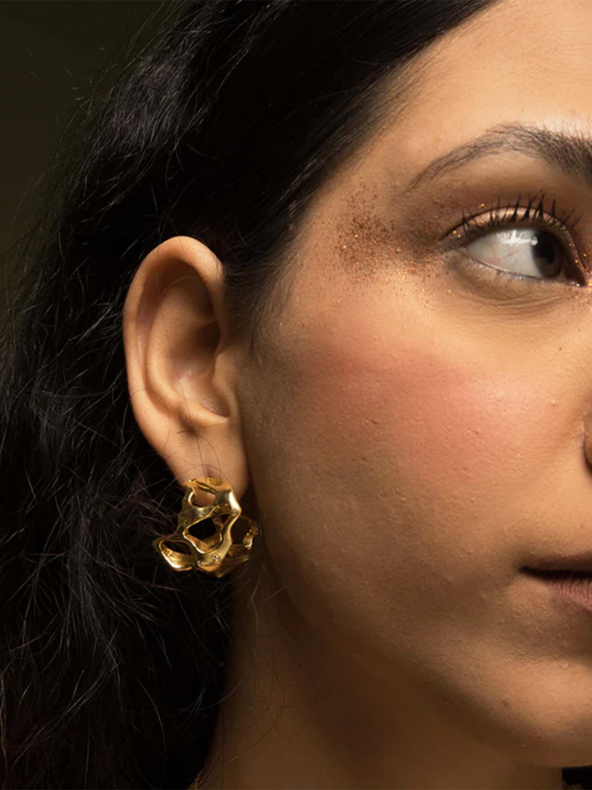 Make a statement in these Hoop earrings with a distinctive molten texture, adorned with playfully placed stones for elegant edge.