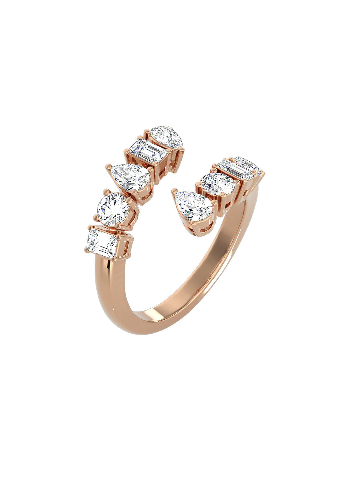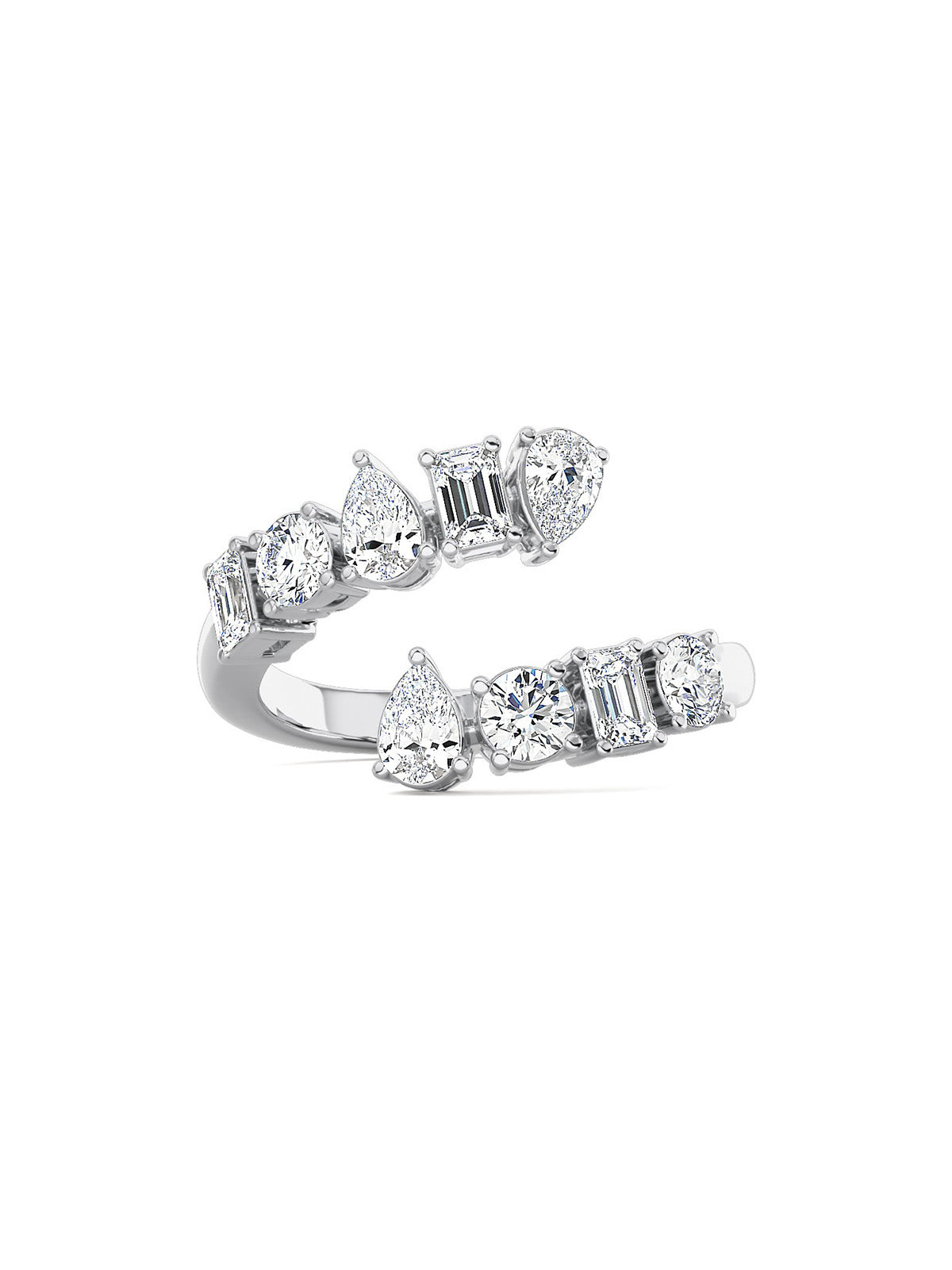 1.27 total carat weight bella twist ring with mixed shape lab grown diamonds E-F color and VVS-VS purity.