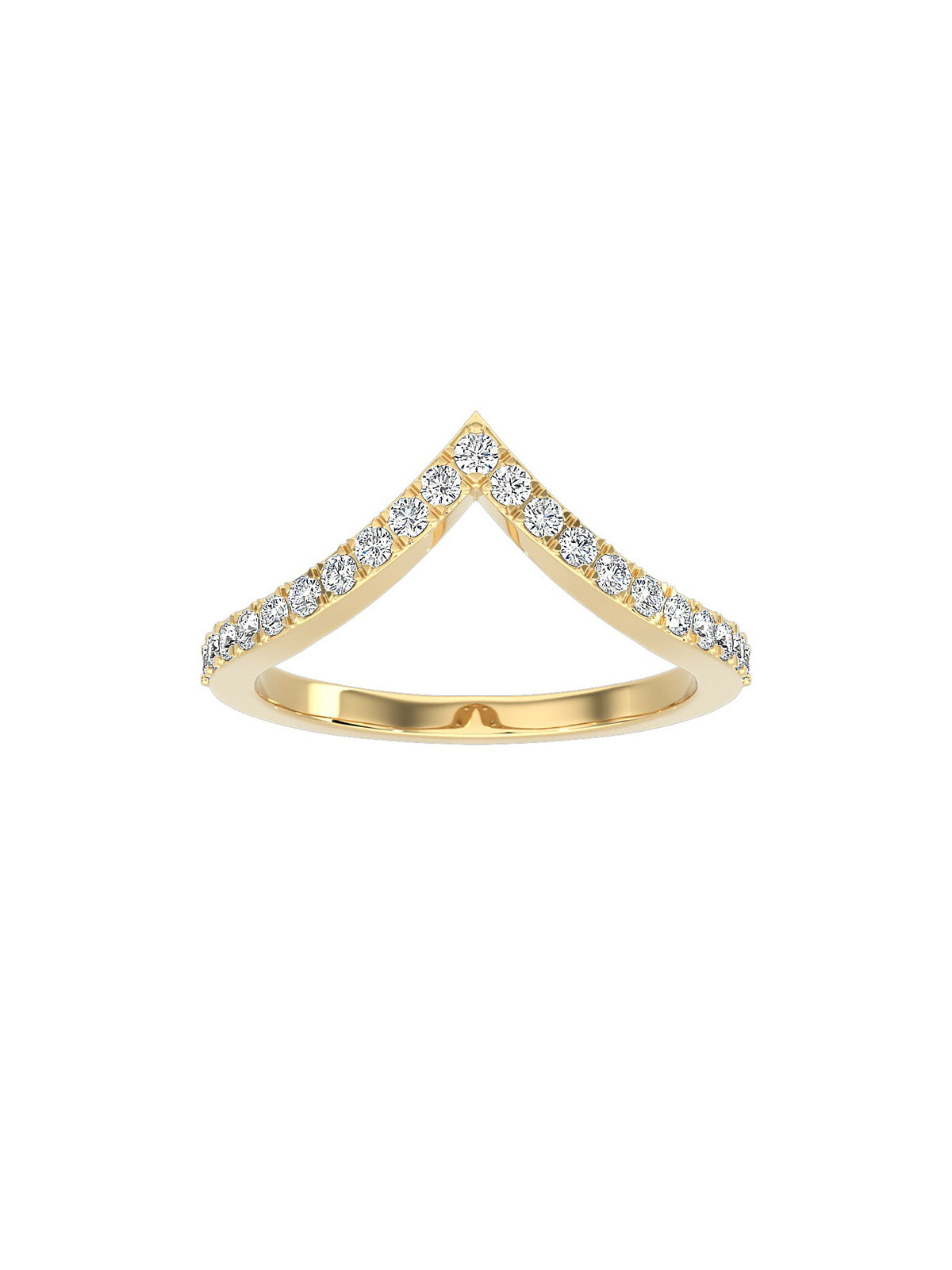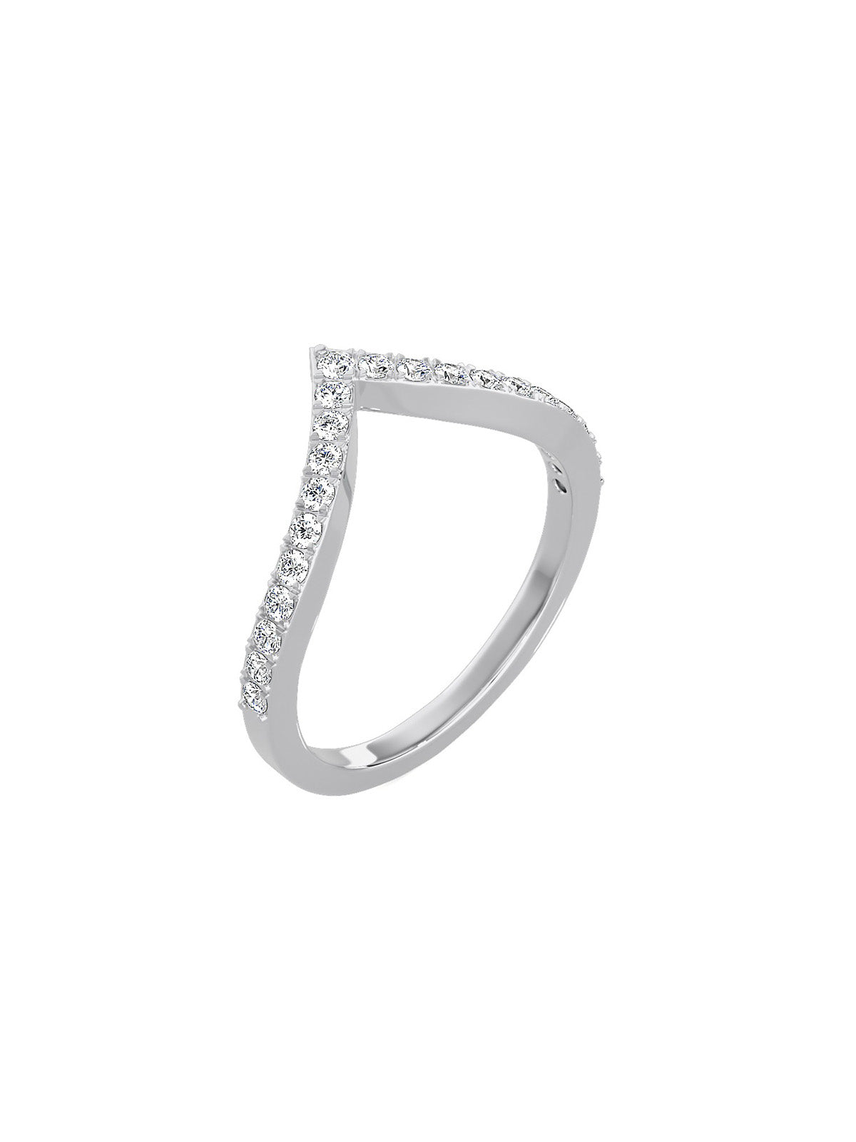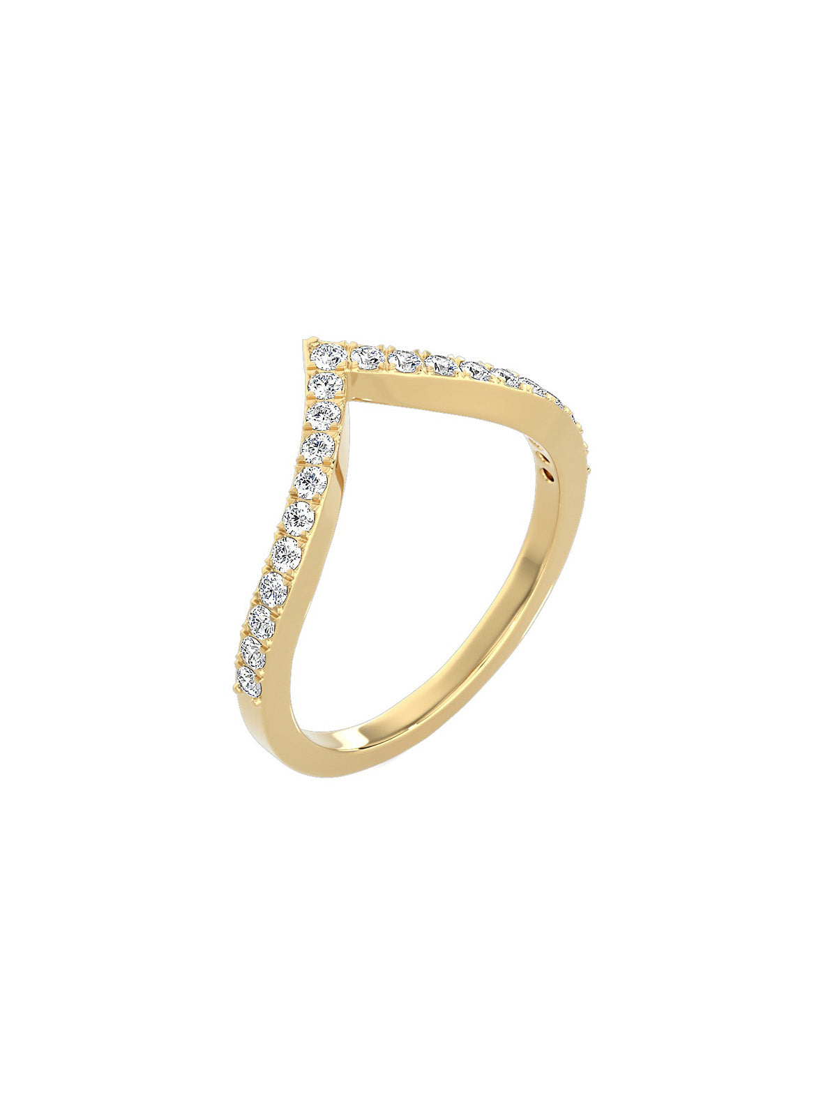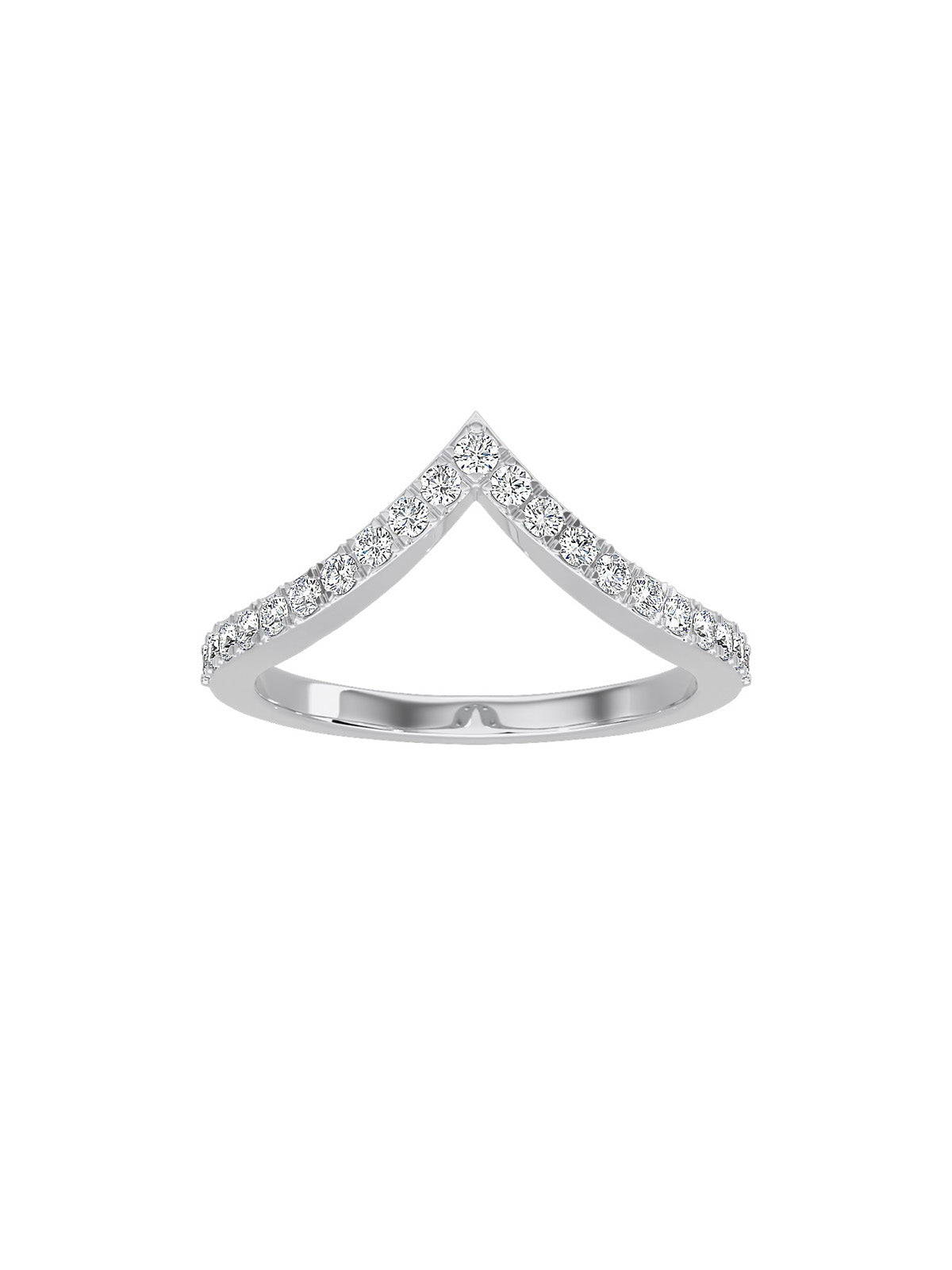 0.24 total carat weight v shape ring with round brilliant cut lab grown diamonds E-F color and VVS-VS purity.