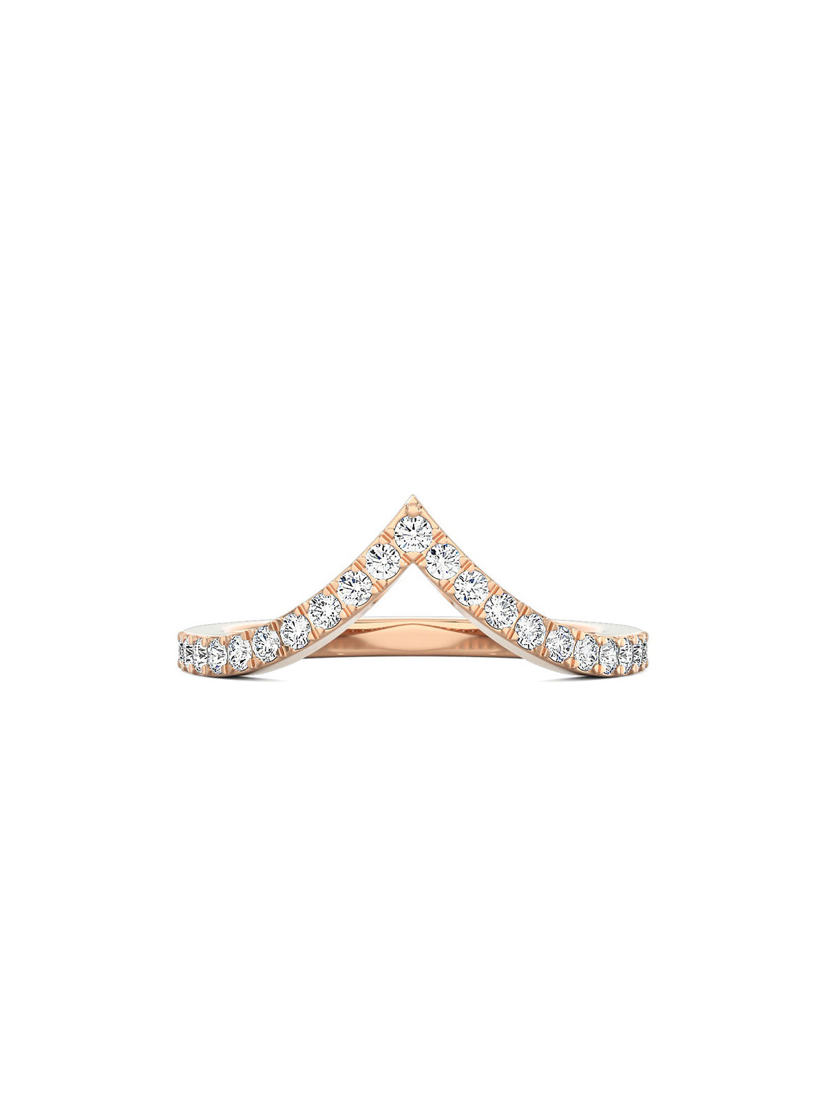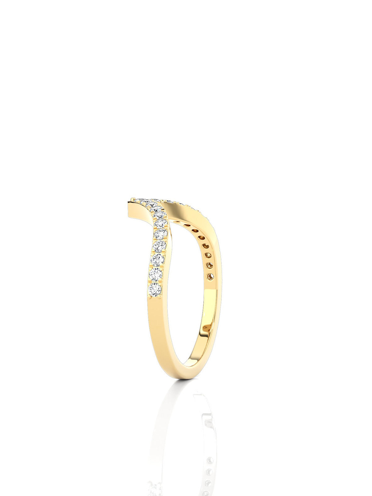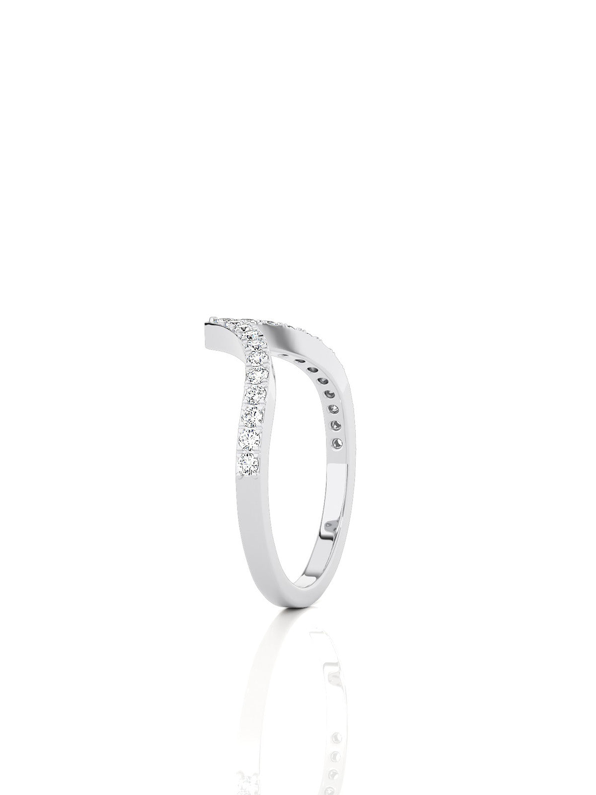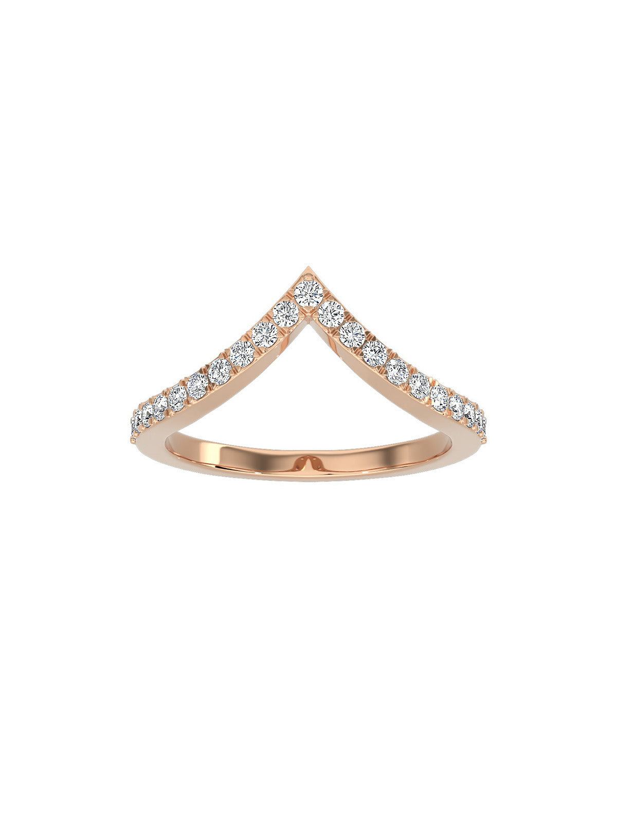 0.24 total carat weight v shape ring with round brilliant cut lab grown diamonds E-F color and VVS-VS purity.
