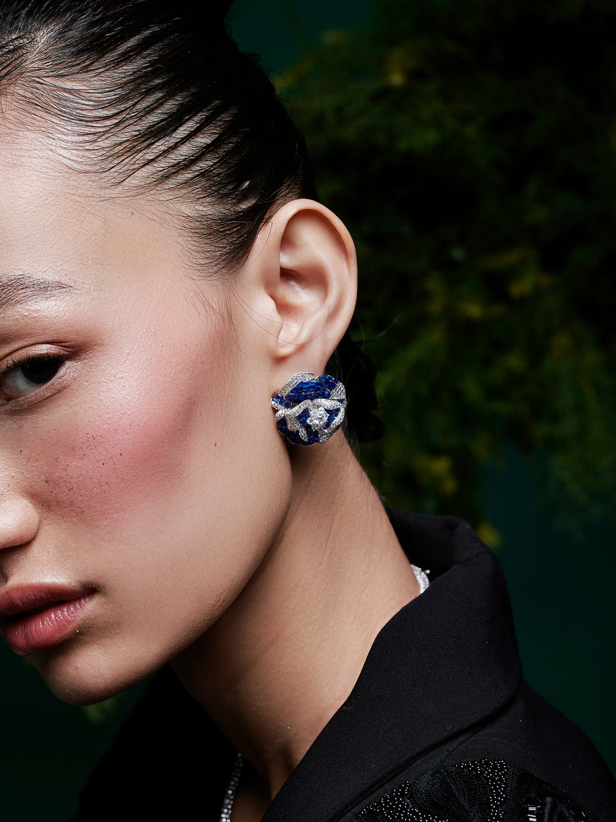 Crafted with unparalleled artistry, the delicate beauty and charm of the floral design reflects the enchanting allure of nature's blooms! The mesmerizing combination of the vivid hues of sapphire blue and the serene shimmer of clear zircon gemstones makes it a graceful and striking addition to your ensemble, be it for a swanky society soiree or an intimate brunch! Whether worn as a standalone statement piece or paired with other woodland-inspired 'Wildflower Whispers' accessories, it serves as a captivating reminder of the magic of the enchanted forest!