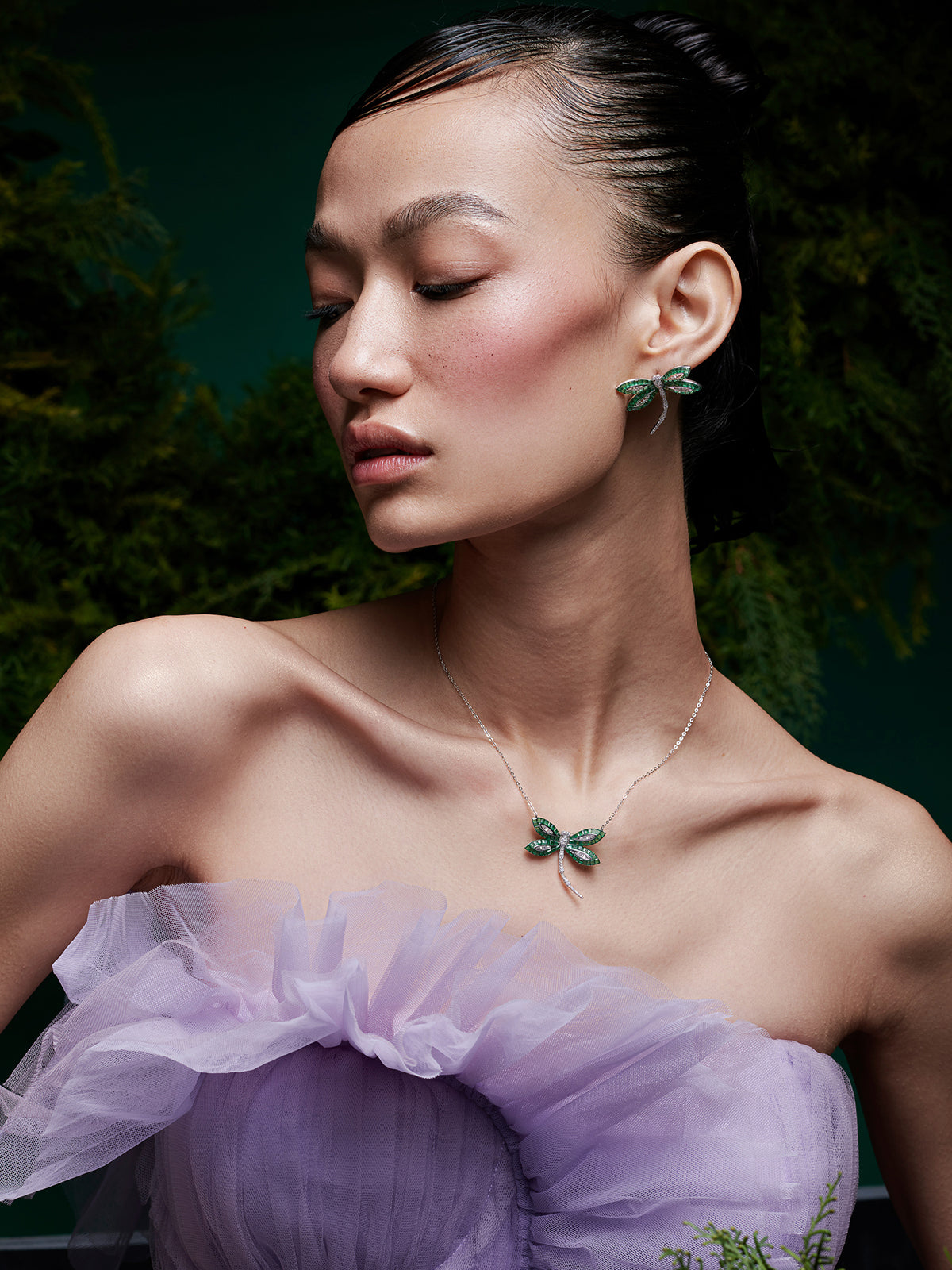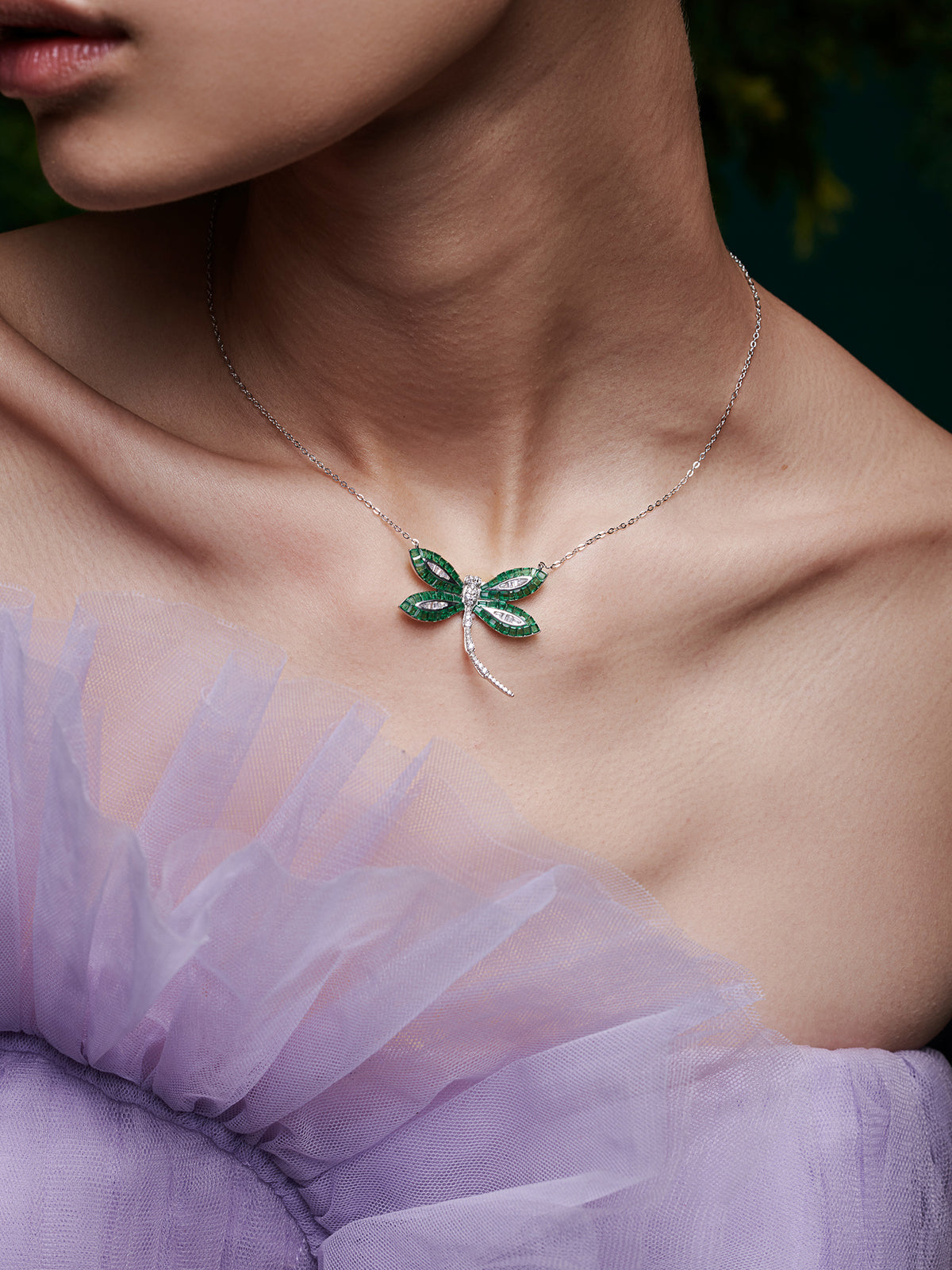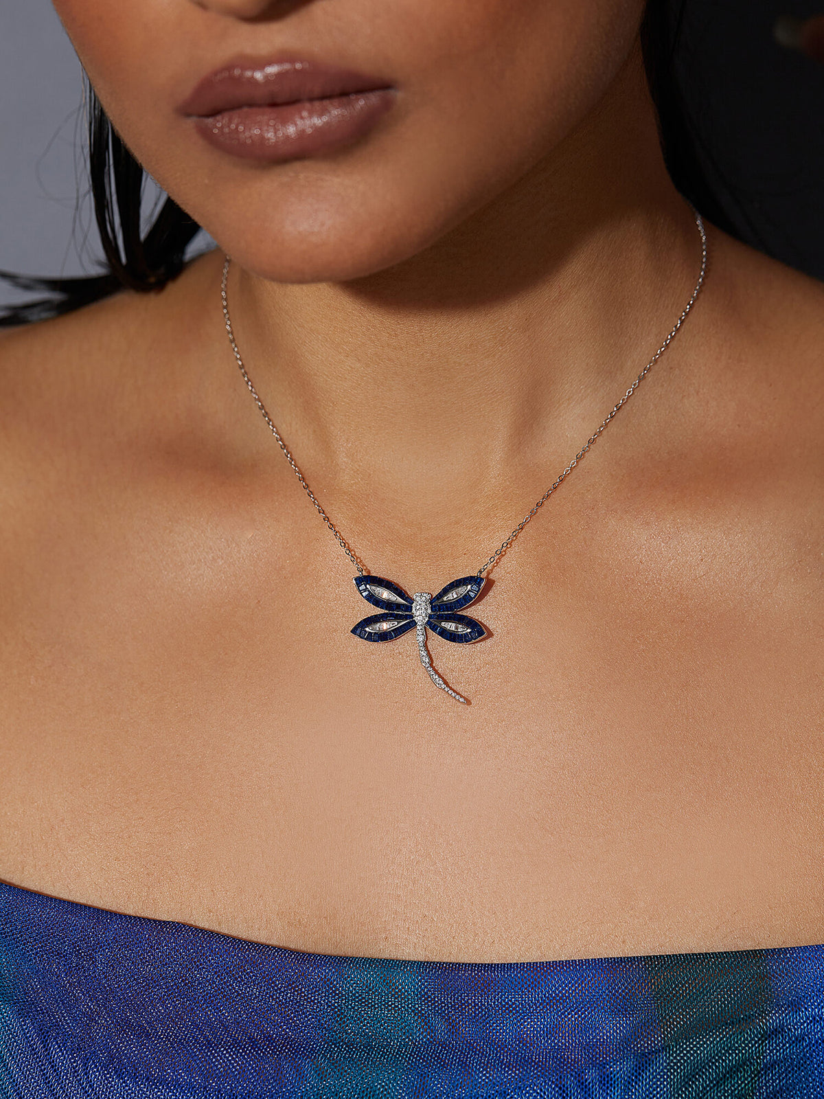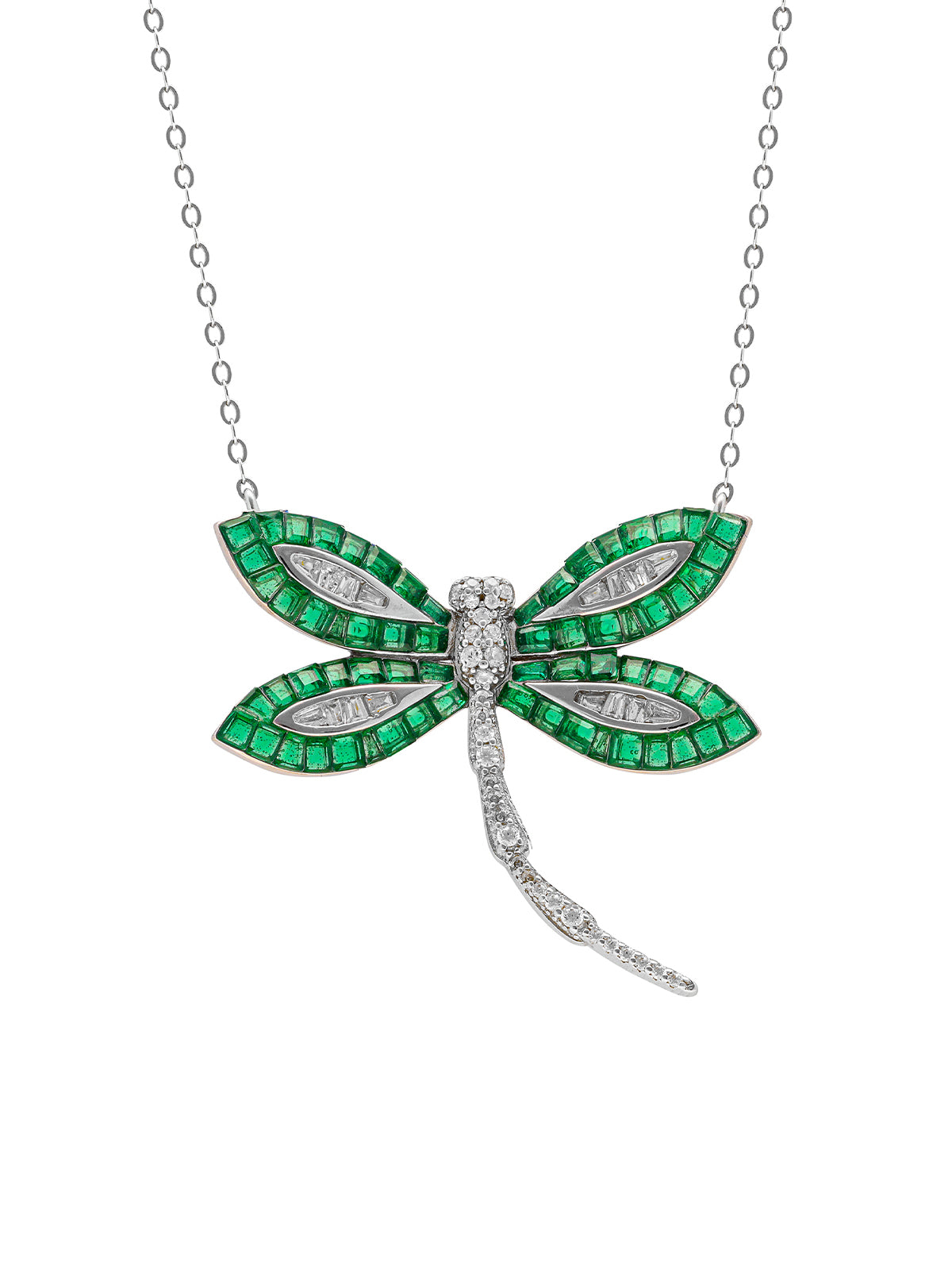 Crafted with meticulous detail, this pendant features a graceful dragonfly suspended in mid-flight. The wings are intricately crafted with 925 sterling silver with delicate patterns of spinel stones that evoke the enchanting flora of the forest and truly make for statement accessory!
