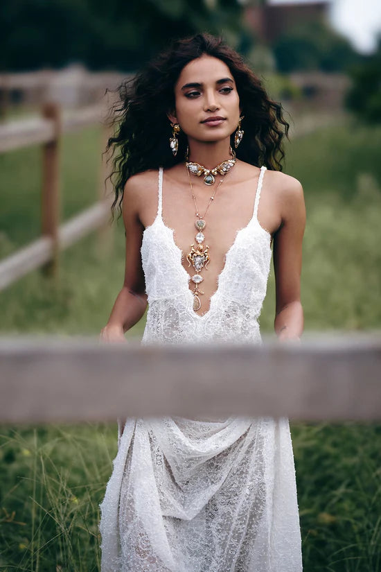 Nestled on the neck in striking combinations, this choker can be styled in multiple ways to create a mesmerising look. At its centre, two sculpted leopard forms meet in poised symmetry, framing a lustrous green prehnite drop, a stone of clarity and calm. Flanking it are elongated