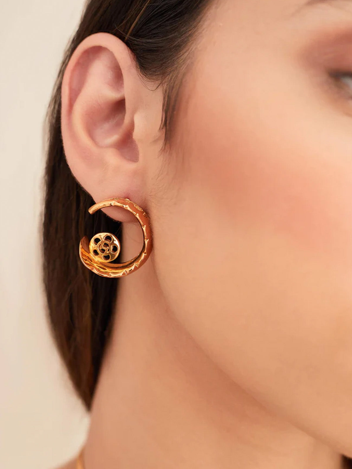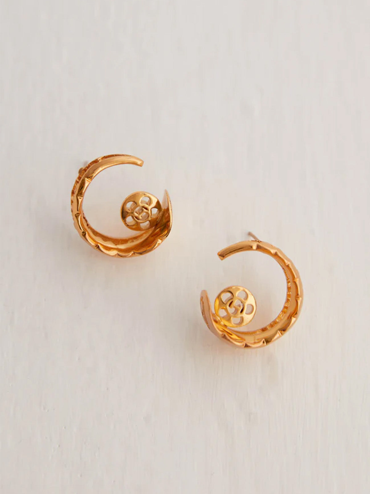 Hooping your way through life finds a new meaning if it’s so stylish. Lucky for you, our OH Acuti Monogram Stud Earrings play partner-in-crime and glisten in 22kt gold in that quest. The design taps effortlessly into the House’s elegant aesthetic and features the signature floral Poppi monogram sitting gracefully at the edge of the hoop. Inspired by the industrial aesthetic, the razor-like silhouette contrasts playfully against the iconic monogram’s soft yet bold presence. A stunning selection to don for an evening out on the town.