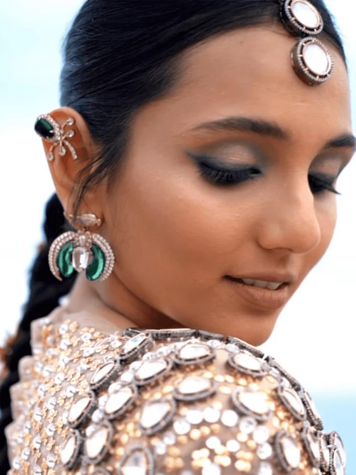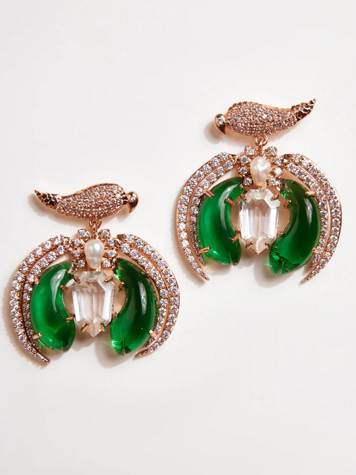 A classic design that is bound to feel fresh and modern, the Le Palmier Earrings are statement-instilling creations that uplift the overall look with their architectural proportion. Crafted in carved stone, natural pearl, and cubic zircoin, the studs add a vivid tinge of colour to a glamorous attire, perfect for making the occasion even more vibrant and alluring. Finished in 22KT rose gold, the earrings can be adorned with any attire, to offer a glamorous look.