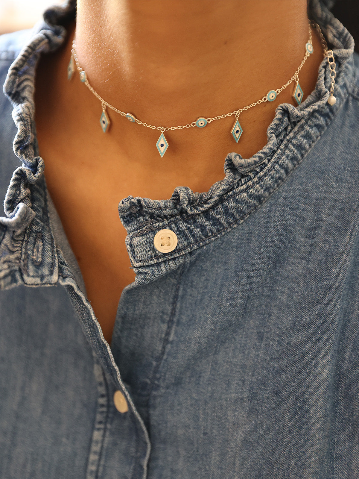 The Evil Eye Collection is our take on classic jewellery transformed with bold hues. Make sure you get your stack game on for that extra drama!