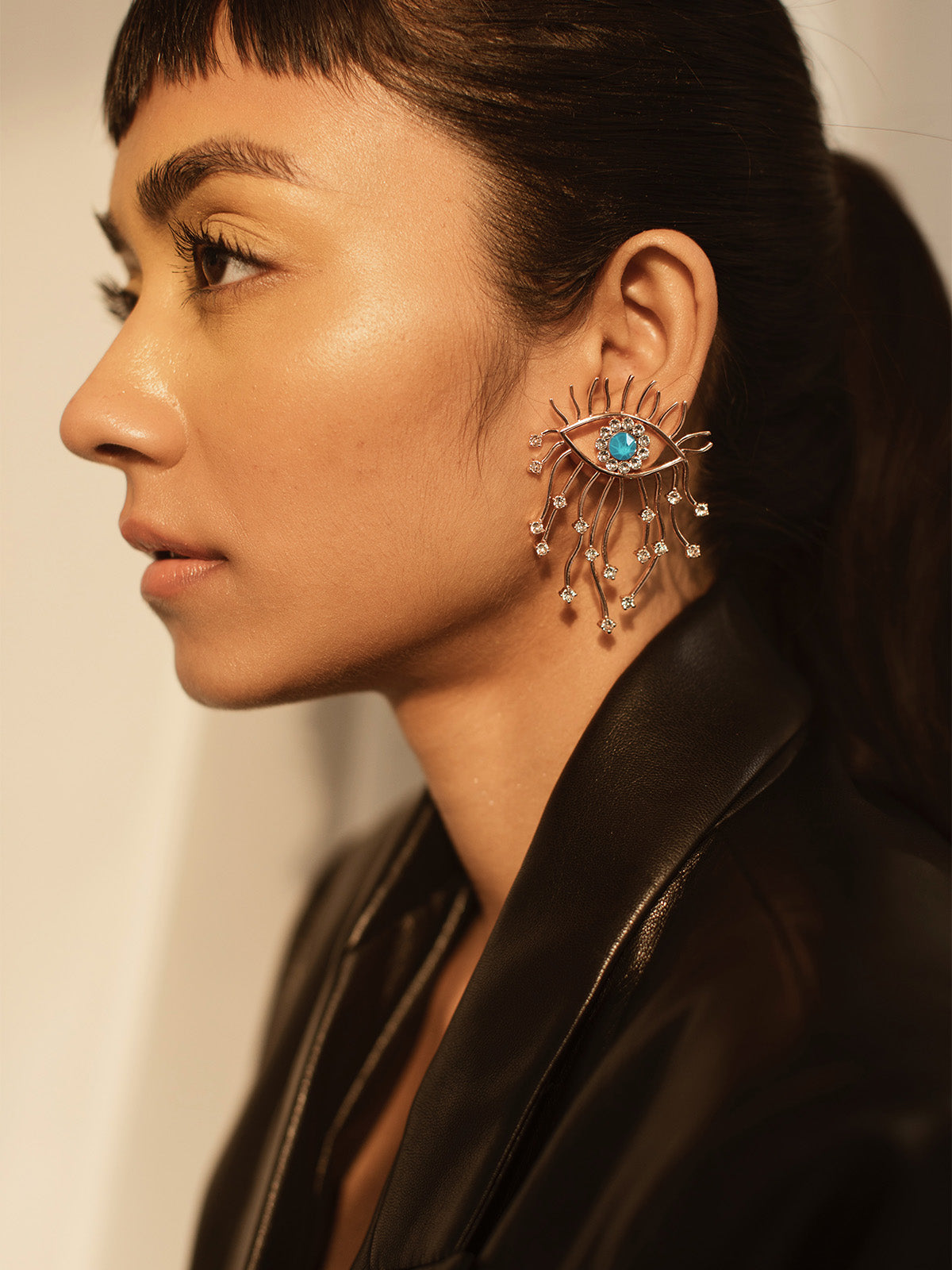 Evil eye hanging studded with pp21 crystals and round swarovski centre