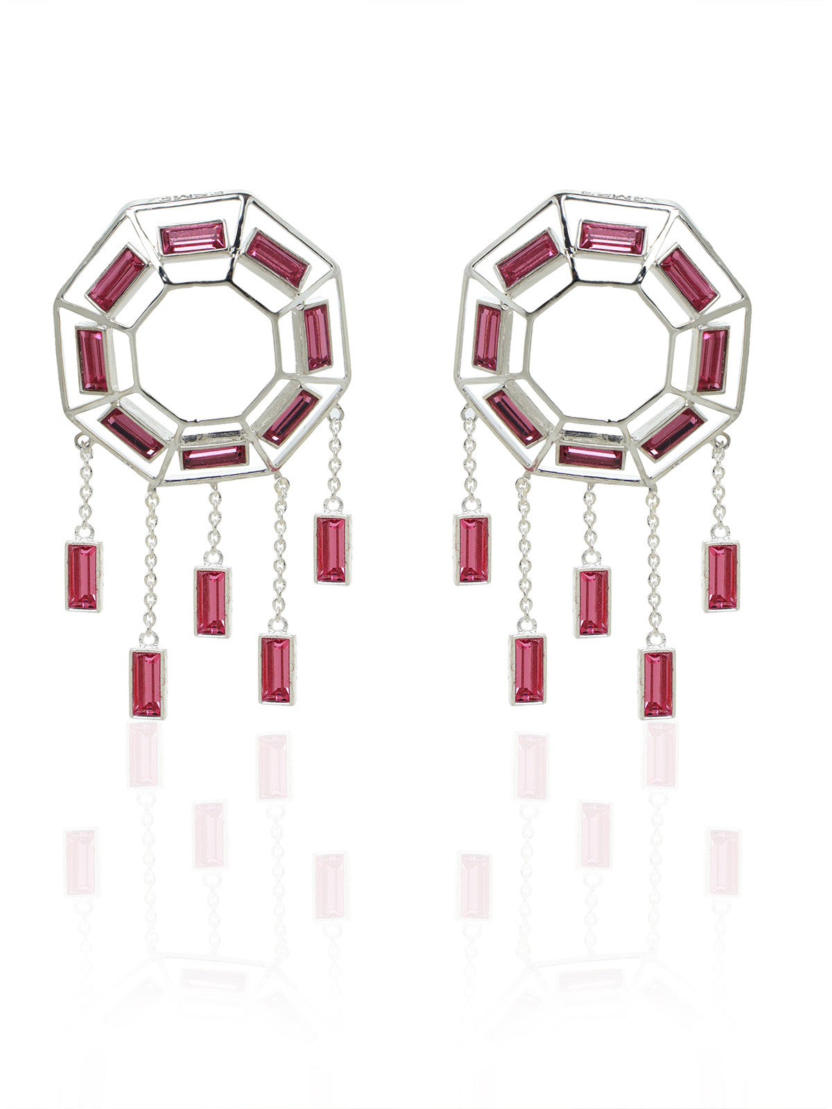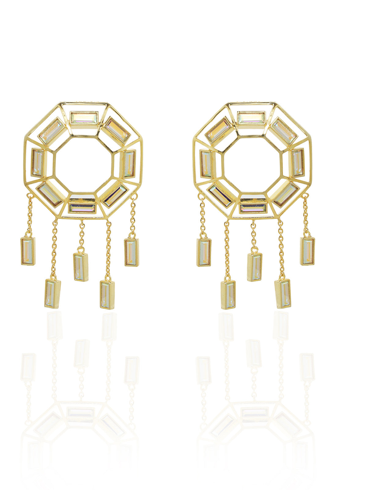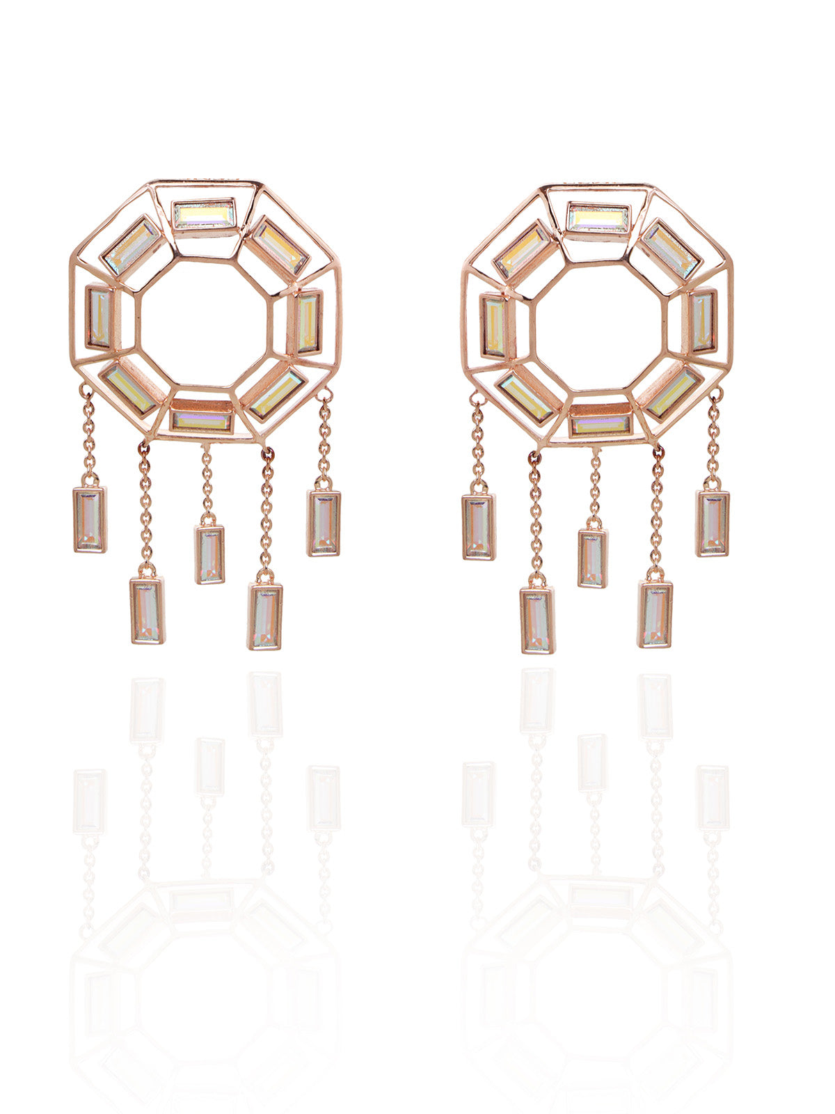 Hanging earrings with a play of beautifully studded baguette swarovski crystals