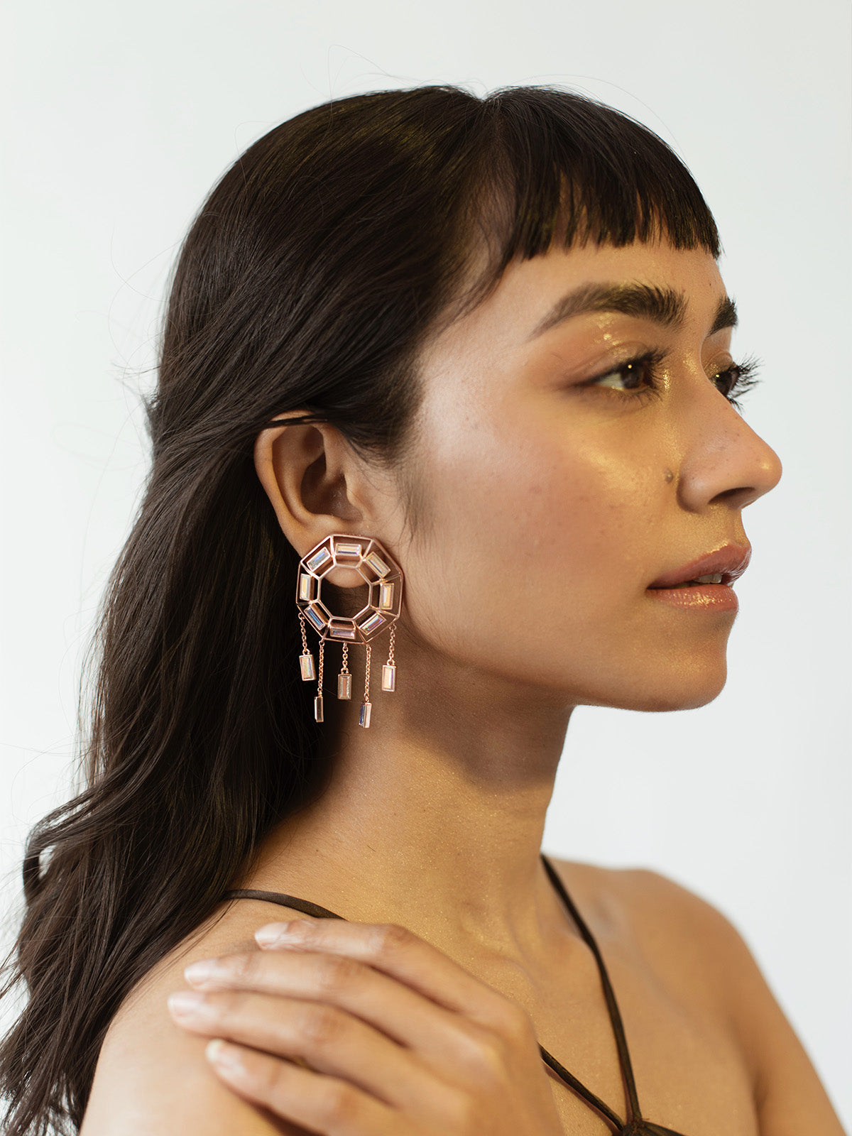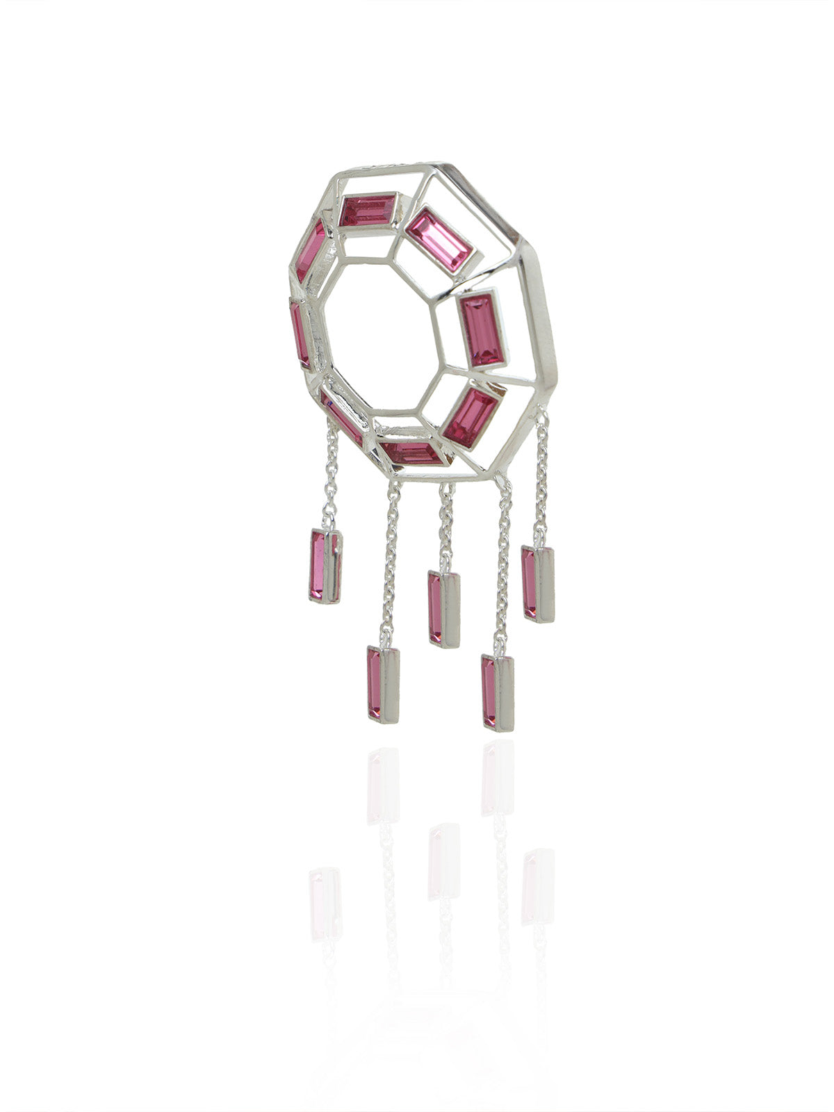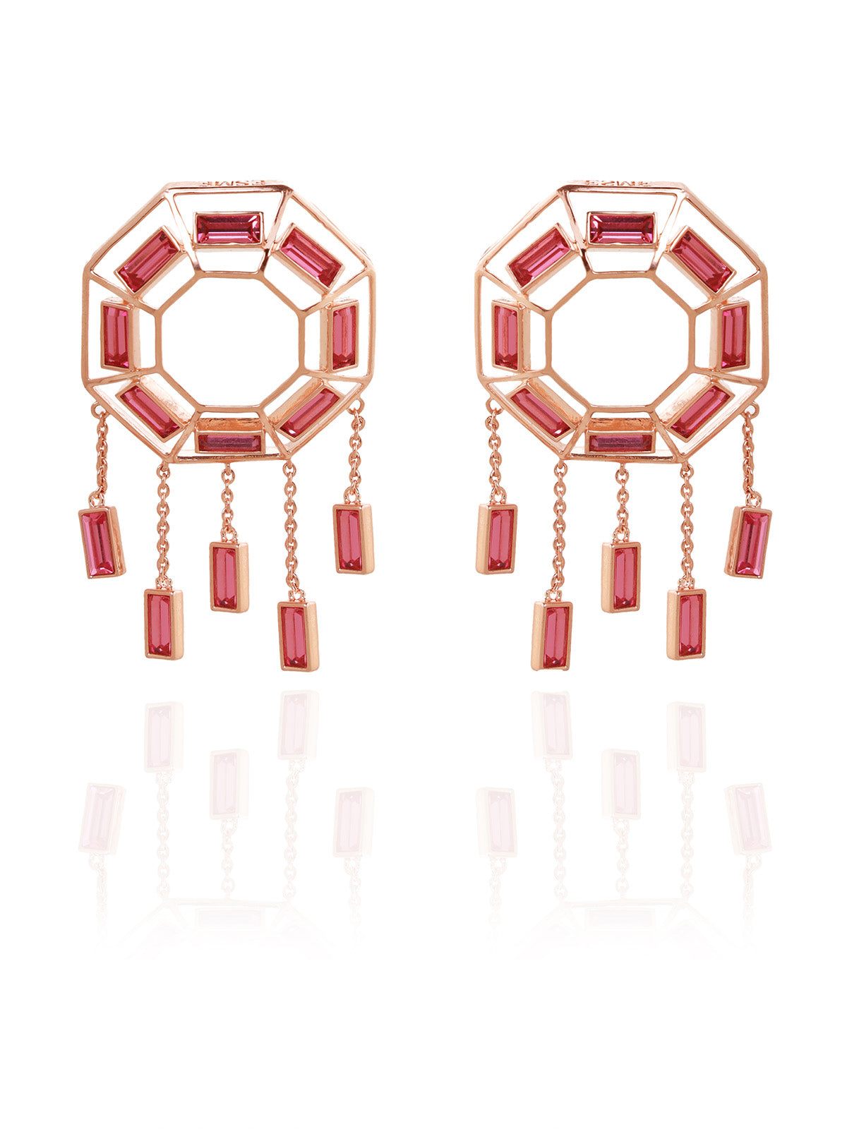 Hanging earrings with a play of beautifully studded baguette swarovski crystals