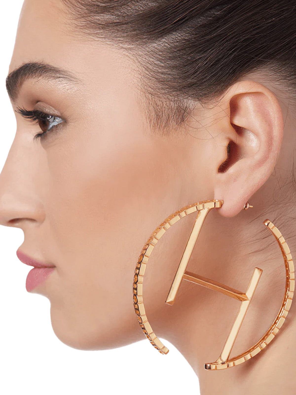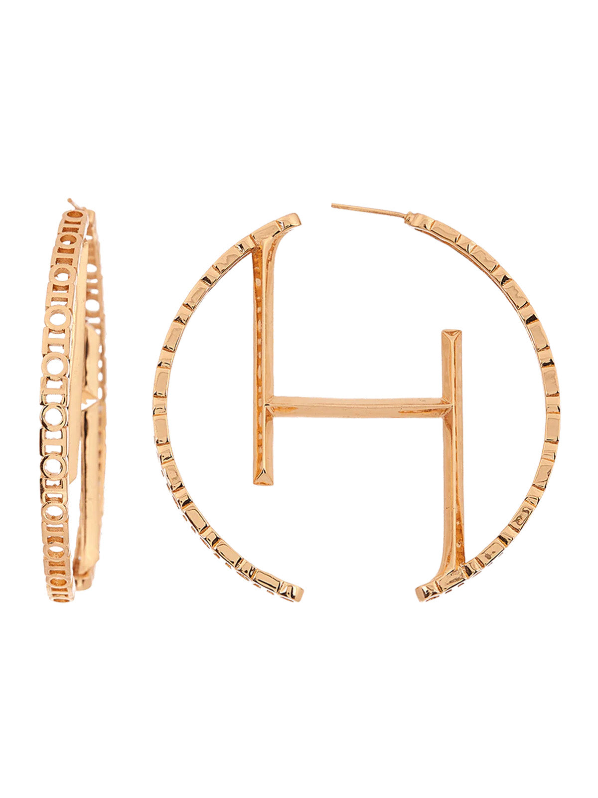 Eternally sensational, the O.H Monogram Hoop Earrings is a splendor of elaborate craftsmanship. Taking the shape of the ‰Û÷OH‰۪ monogrammed pattern featuring a blistering layer of 22K Gold Plating. The versatile must have hoop earrings are a tribute to the spirit of Outhouse.