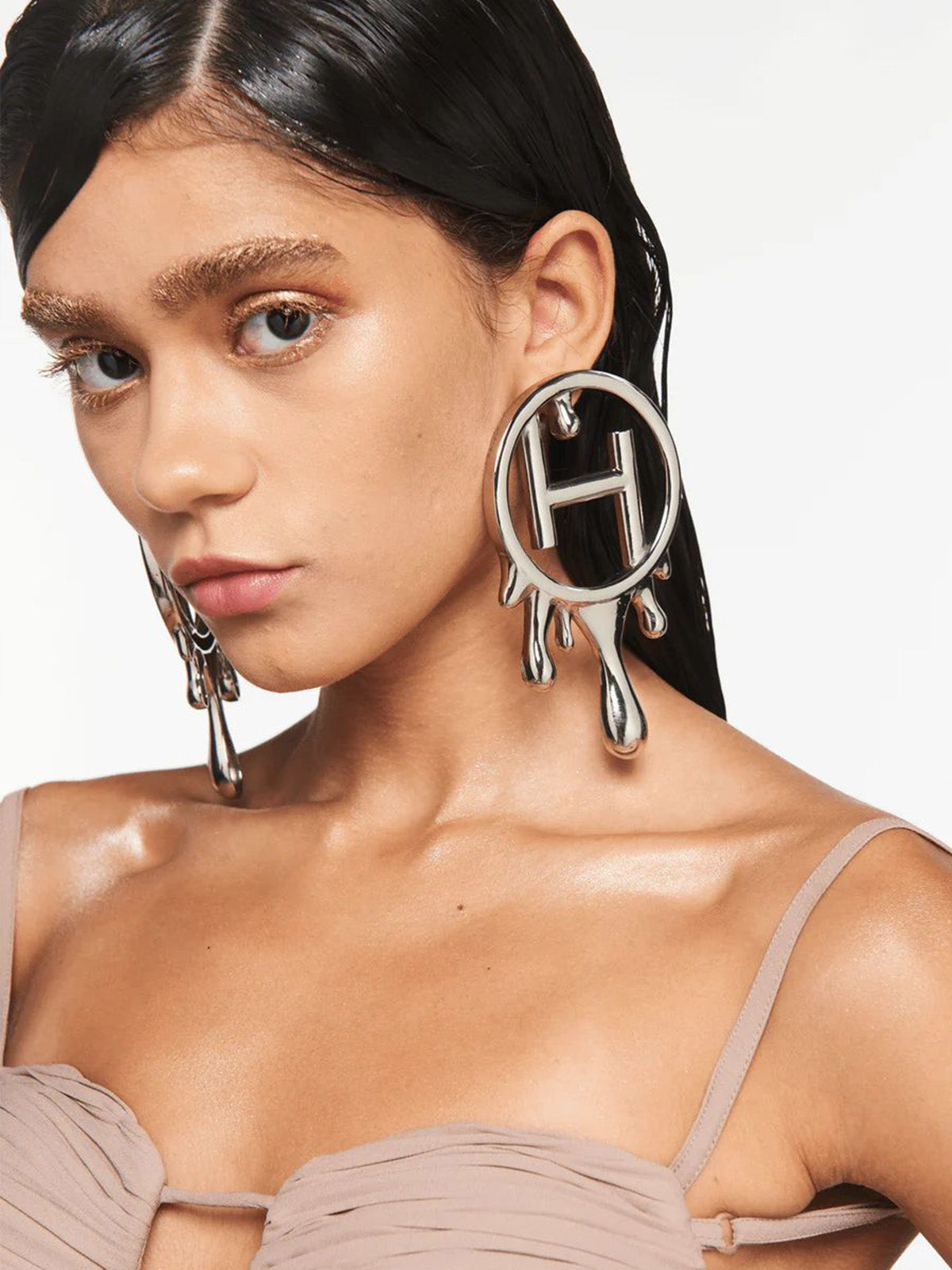An iconic reinterpretation of the House’s monogram, the Drip "OH" Midi Earrings embrace an artistic aesthetic by featuring a dripping accent in its design. An exquisite and timeless creation, the earrings are handcrafted in 22 KT silver plating that elegantly adorn the ears. The iconic silhouette is the ideal way to add a touch of radiance to your everyday looks with the House’s initials taking the centre stage.