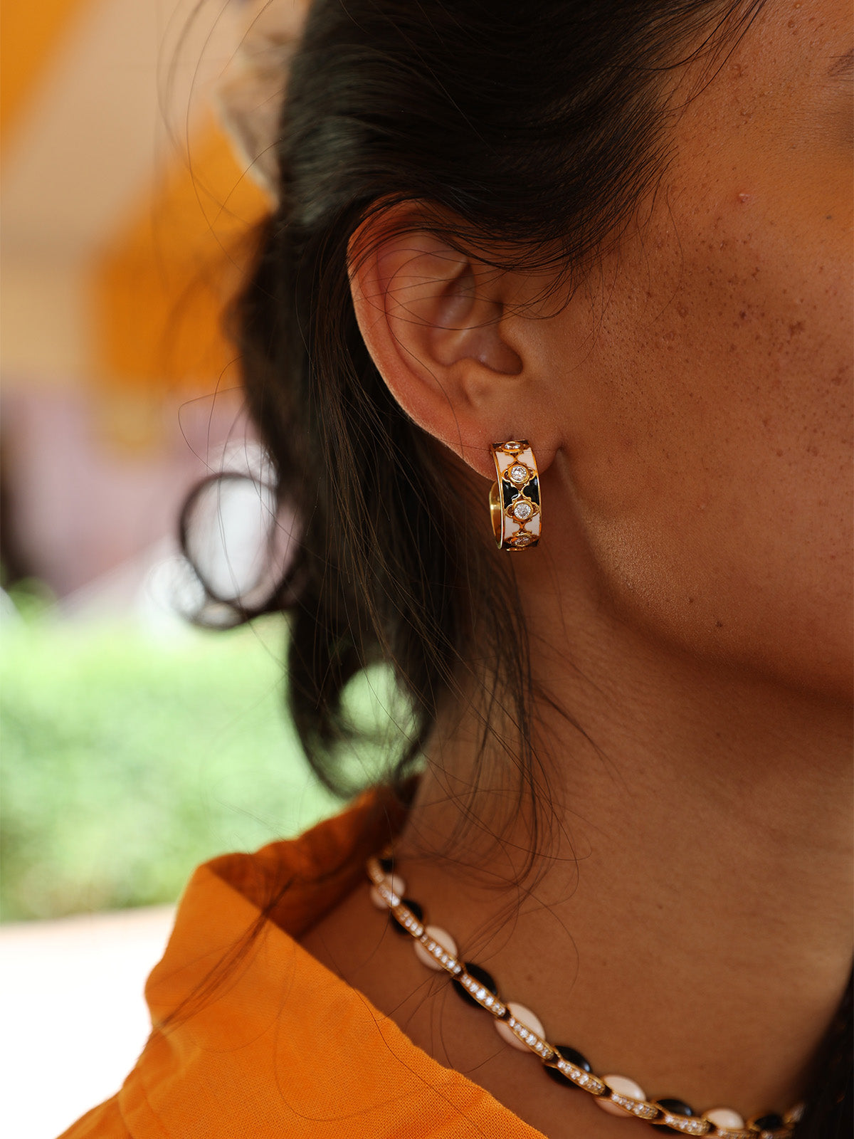 nspired by the mosaic patterns, colors, and calligraphy of Spanish architecture, the Andalusia collection showcases everyday jewelry pieces that amplify this beauty. Enamel work brings the vibrant Spanish color palette to life in each design. These versatile and reversible pieces, including exquisite daily wear gold earrings, can be stacked together or worn individually, creating harmonious patterns and enhancing your style.
