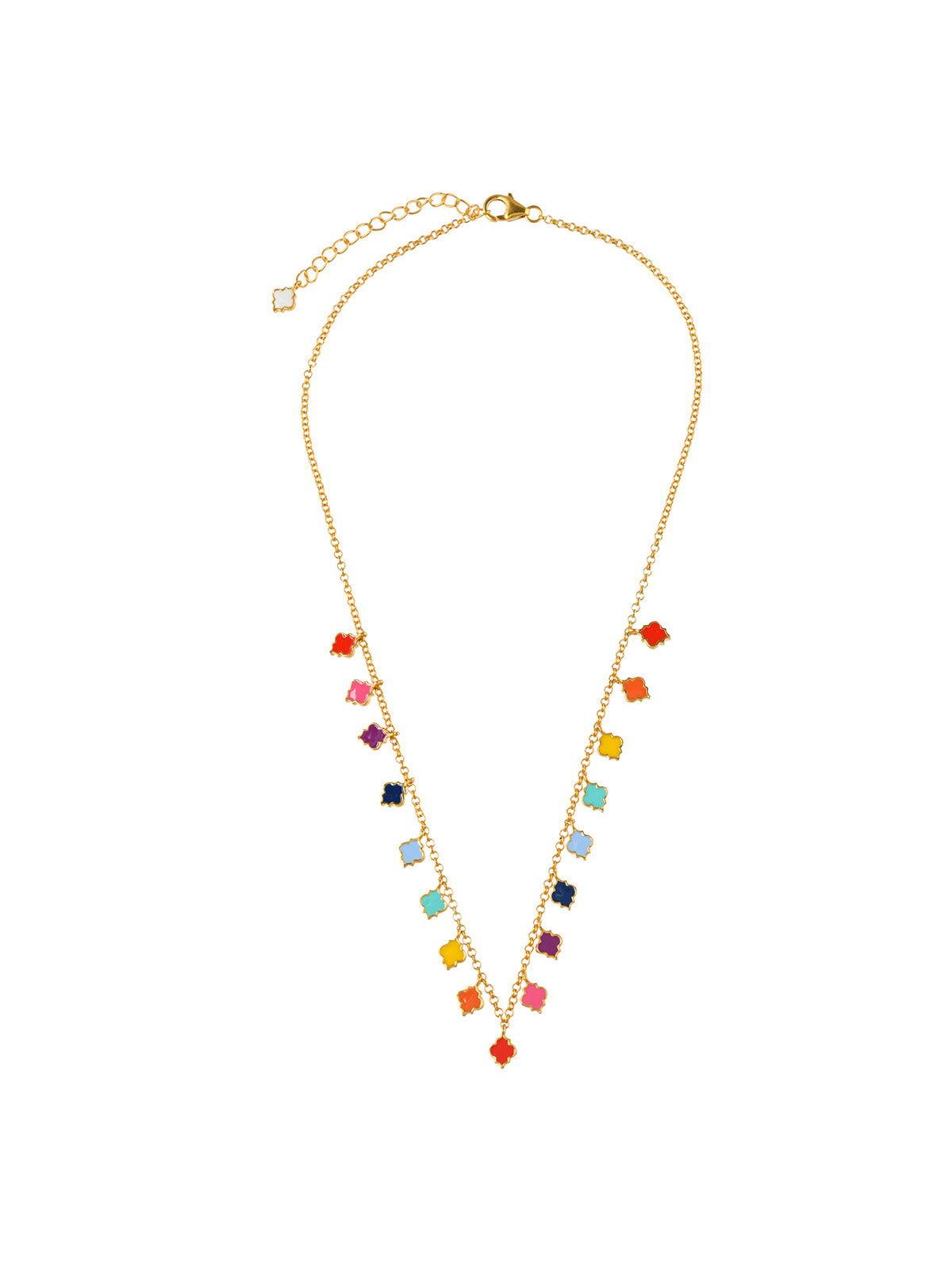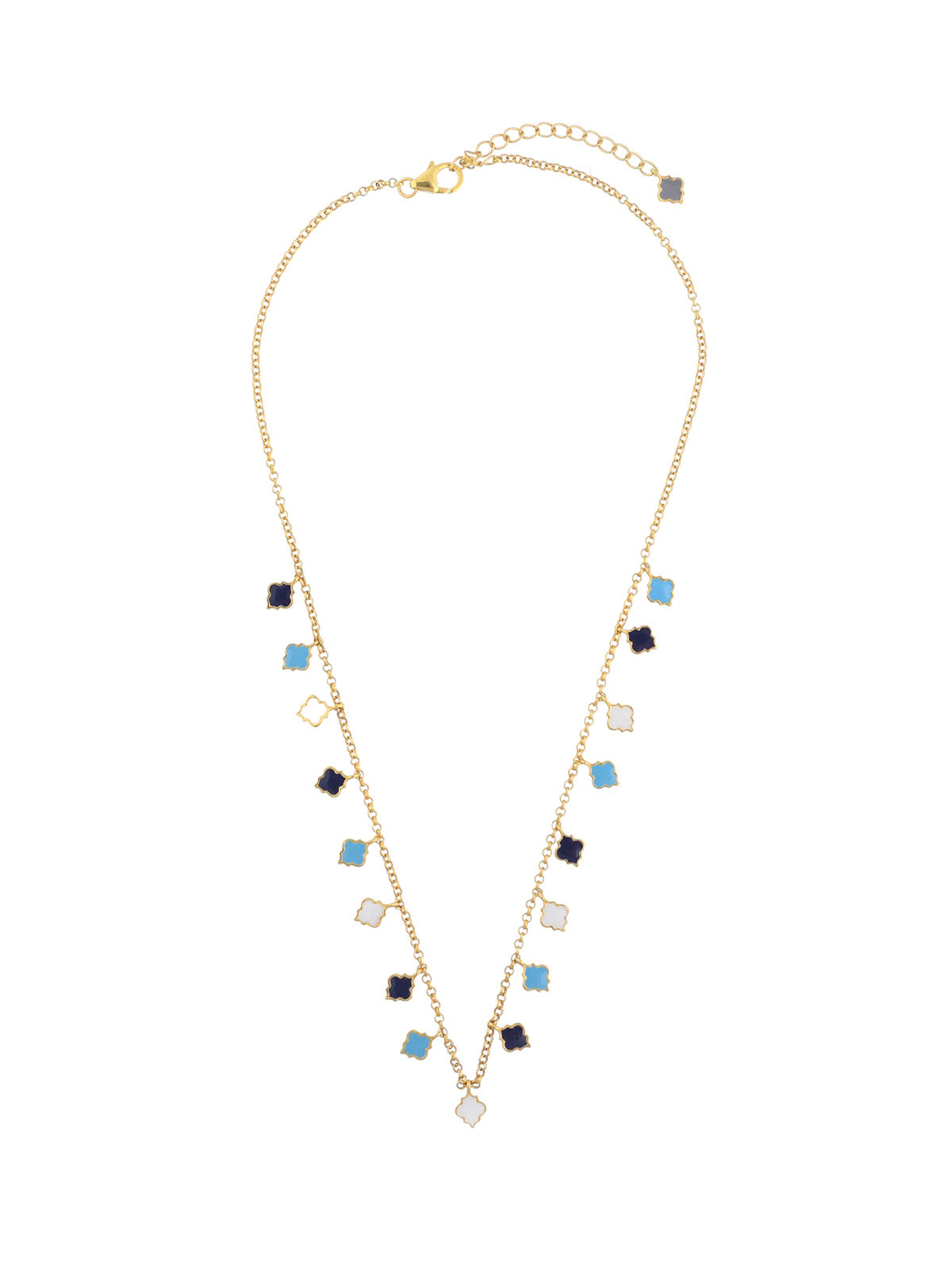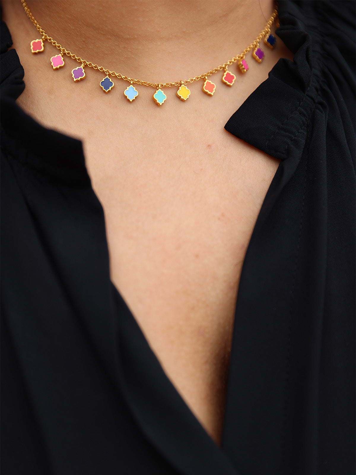 Drawing inspiration from the mosaic patterns, colors, and calligraphy in Spanish architecture, the Andalusia collection exudes everyday jewelry pieces that magnify the beauty of this rich heritage. The vibrant color palette embedded in Spanish architecture is brought to life through enamel in each design, creating modern lightweight gold necklace designs. These pieces can be stacked together or worn on their own, blending patterns that complete each other. Elevate your style with our Andalusia collection, where tradition meets contemporary elegance.