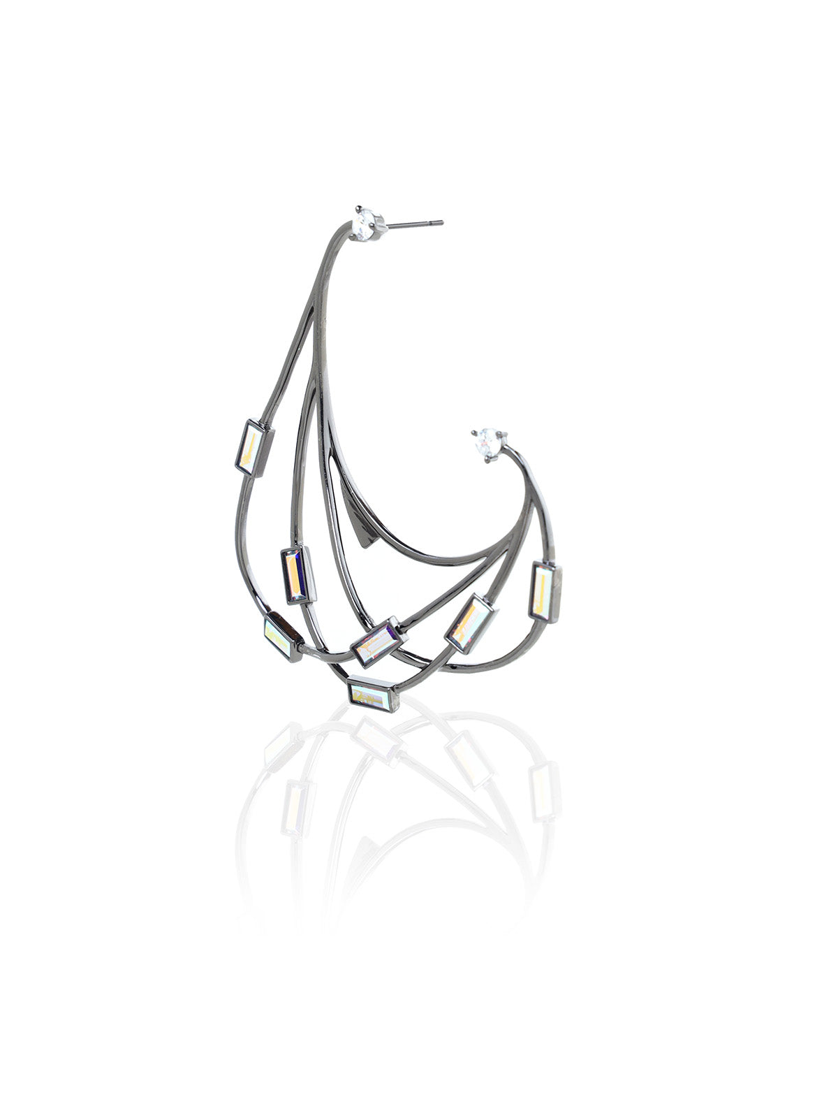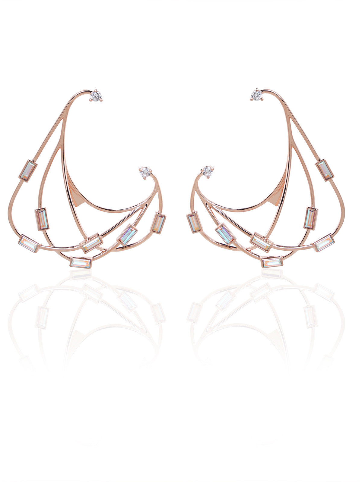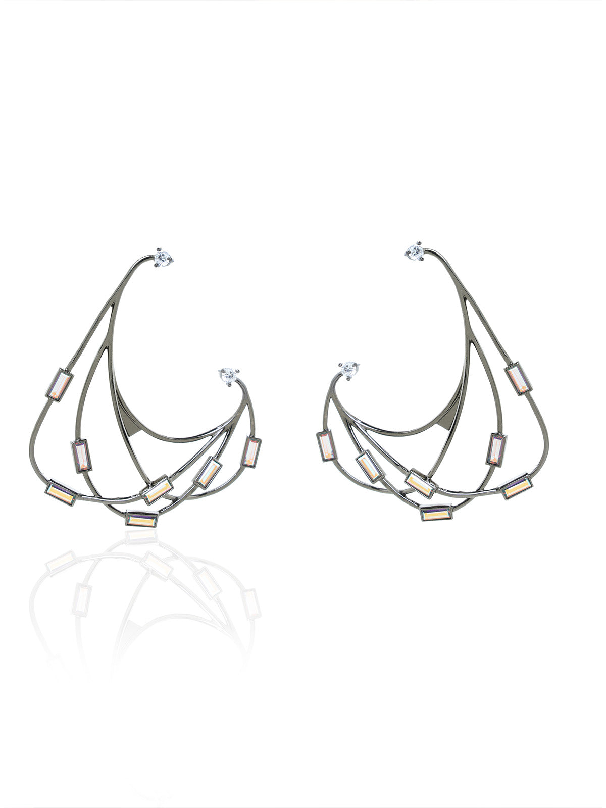 Hanging earrings with a play of beautifully studded baguette swarovski crystals