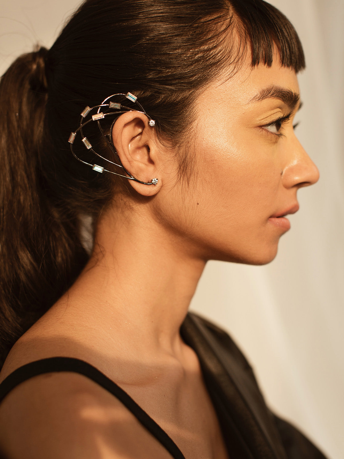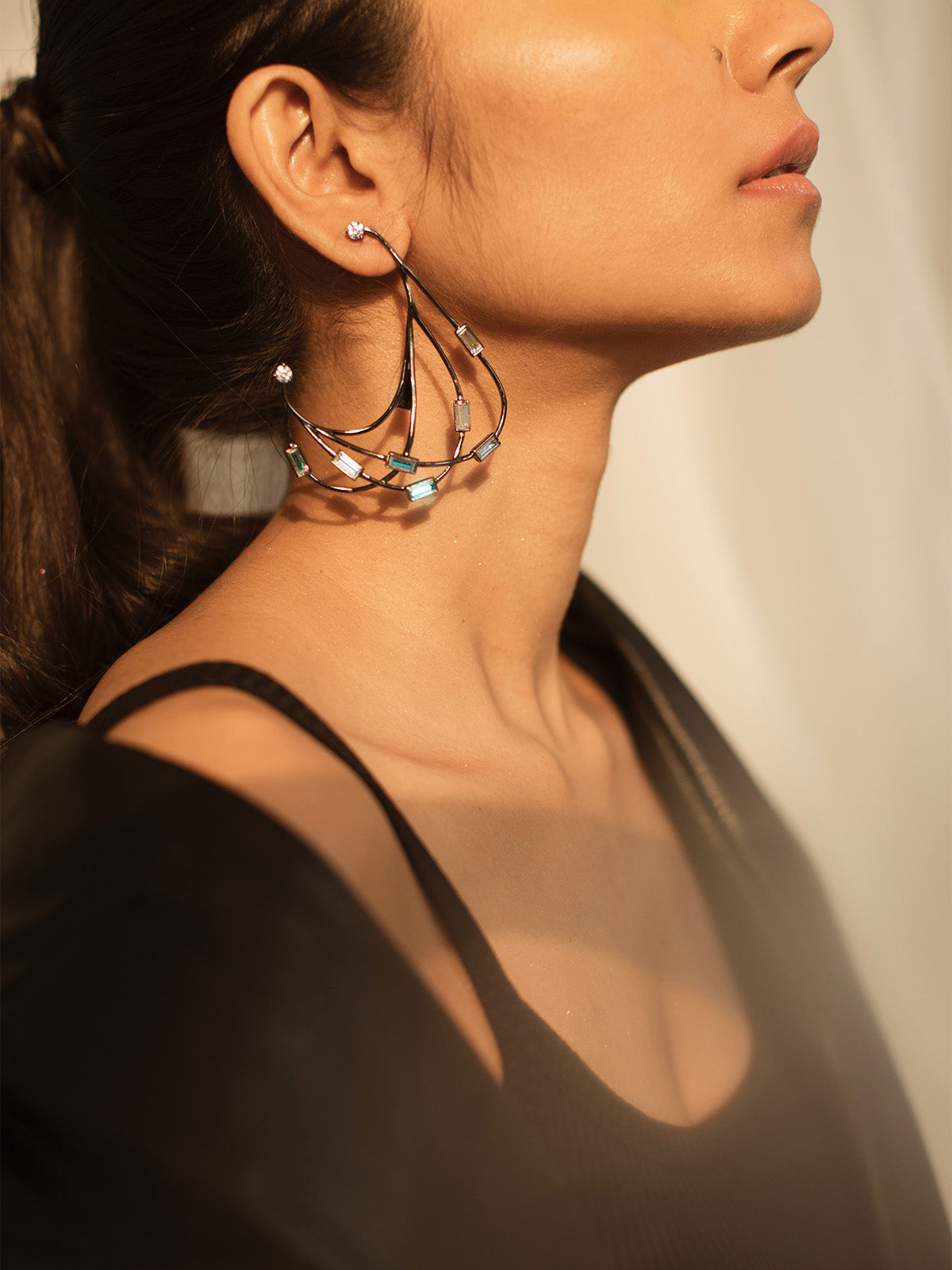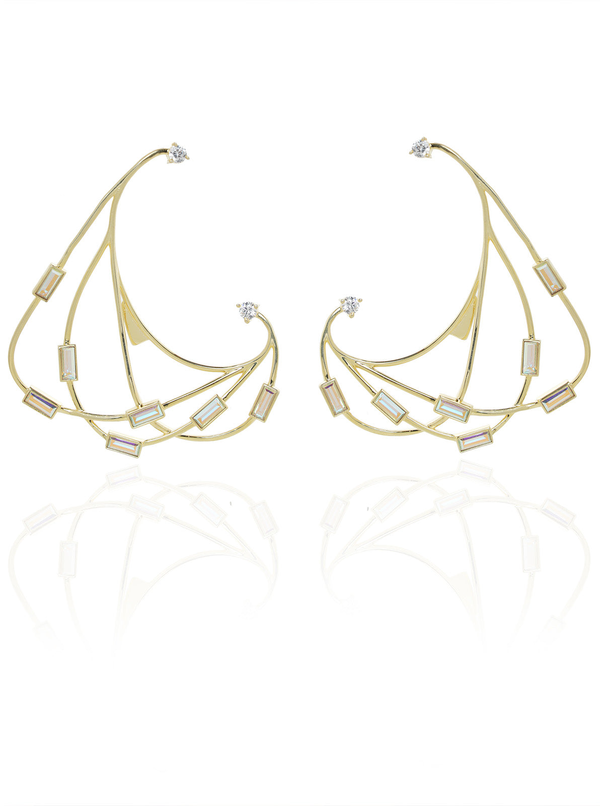 Hanging earrings with a play of beautifully studded baguette swarovski crystals
