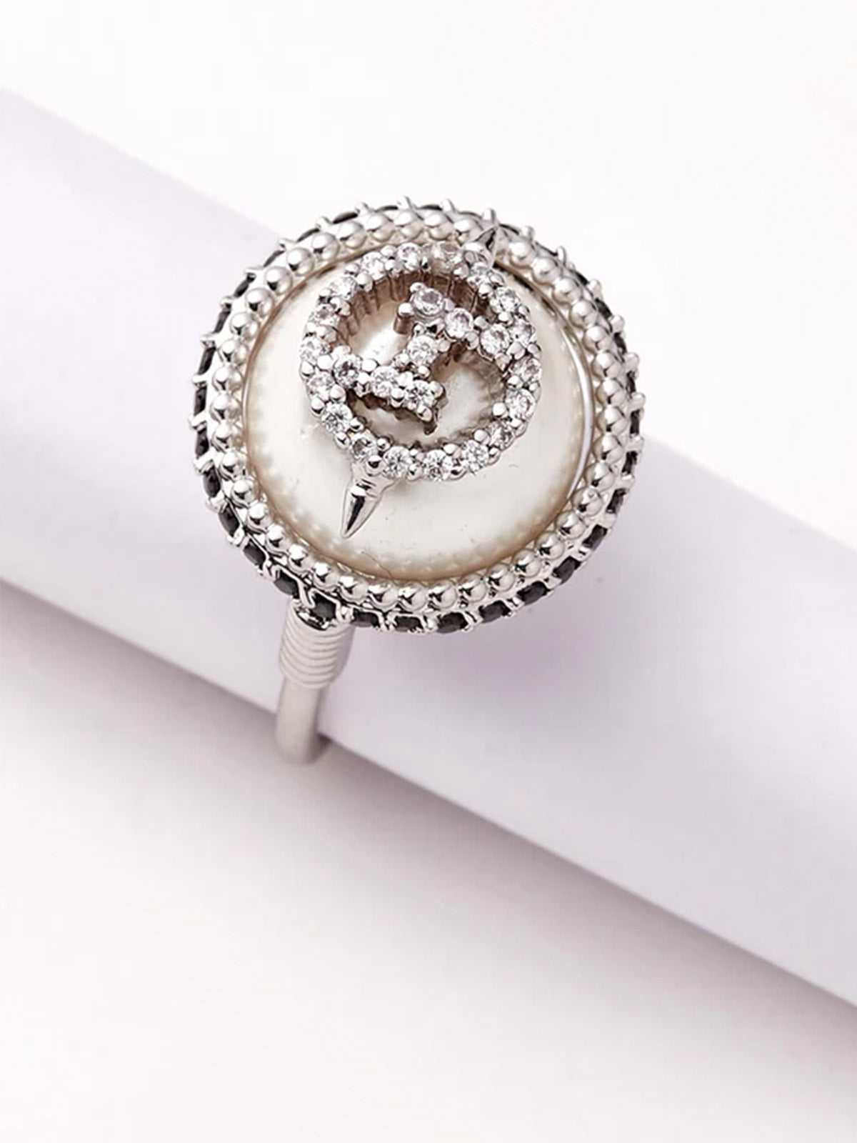 Meticulously crafted and polished to perfection, the OH Crystal Nova Monogram Ring is beautifully set into 22k Silver that illuminates dreamy Swarovski pearls and crystals - the clean juxtaposition of the OH Logo is an iconic statement, making it a simple and stark piece of modern luxury.