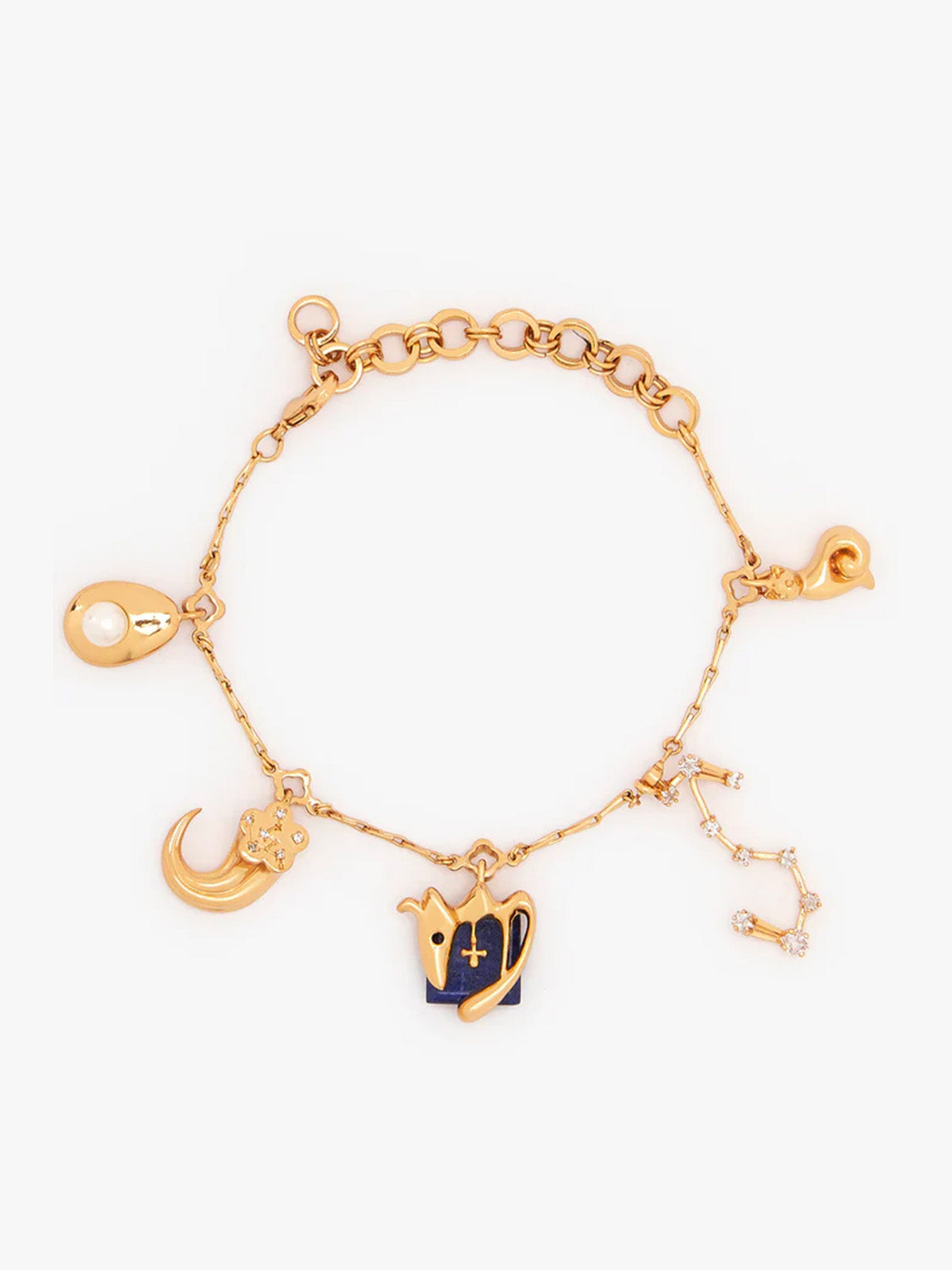 Craft your own celestial story with a bespoke cosmic masterpiece that allows you to weave your own universe. The Scorpio zodiac motif, set in the semi-precious Lapis Lazuli and paired with the Scorpio constellation charm, forms the heart of your piece. Personalise it with exquisite good luck charms, including your fortune number, guiding spirit animal, and additional celestial constellations, elegantly embellished with the OH celestial poppy tusk. Meticulously handcrafted, these delicate charms are designed to encapsulate your elegance and individuality. Finished in 22k rose