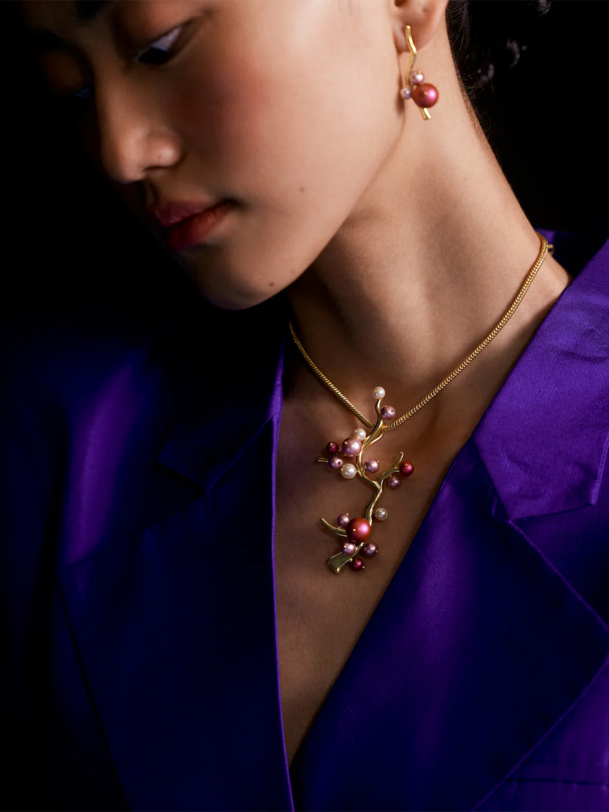 Rosée de café (meaning "Dew on Coffee") draws its inspiration from the coffee plantations in Coorg. It features glistening pearls and intricate gold designs abstracting the form of coffee berries. This collection is well suited for occasions demanding elaborate designs but where you don’t want to go with the commonplace!