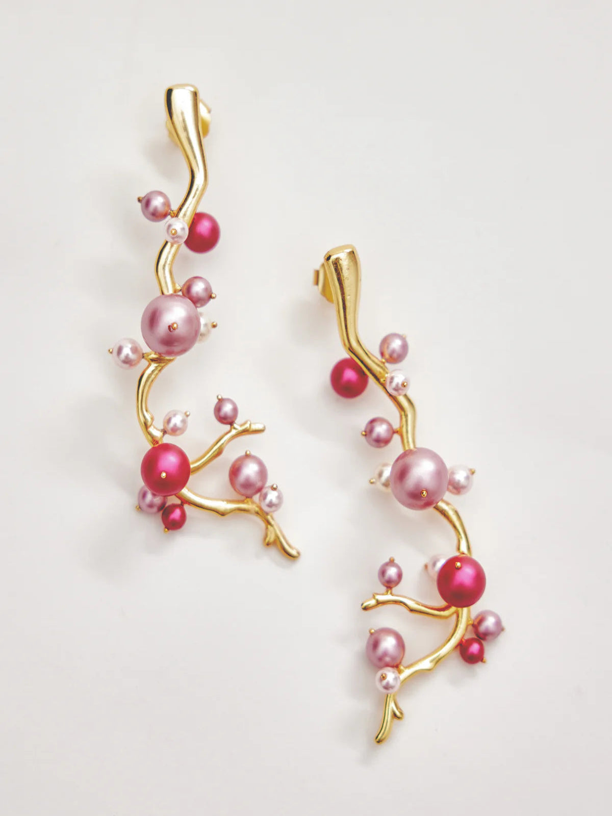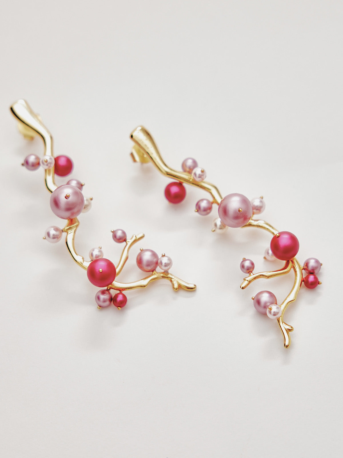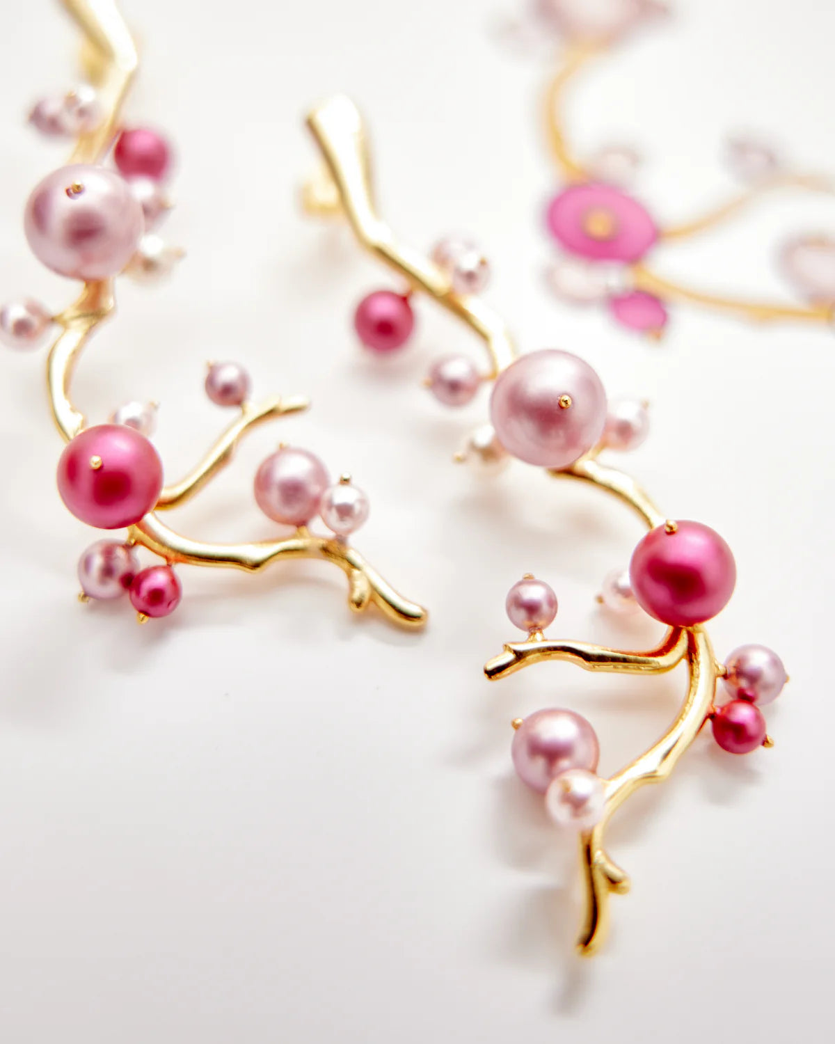 Rosée de café (meaning "Dew on Coffee") draws its inspiration from the coffee plantations in Coorg. It features glistening pearls and intricate gold designs abstracting the form of coffee berries. This collection is well suited for occasions demanding elaborate designs but where you don’t want to go with the commonplace!