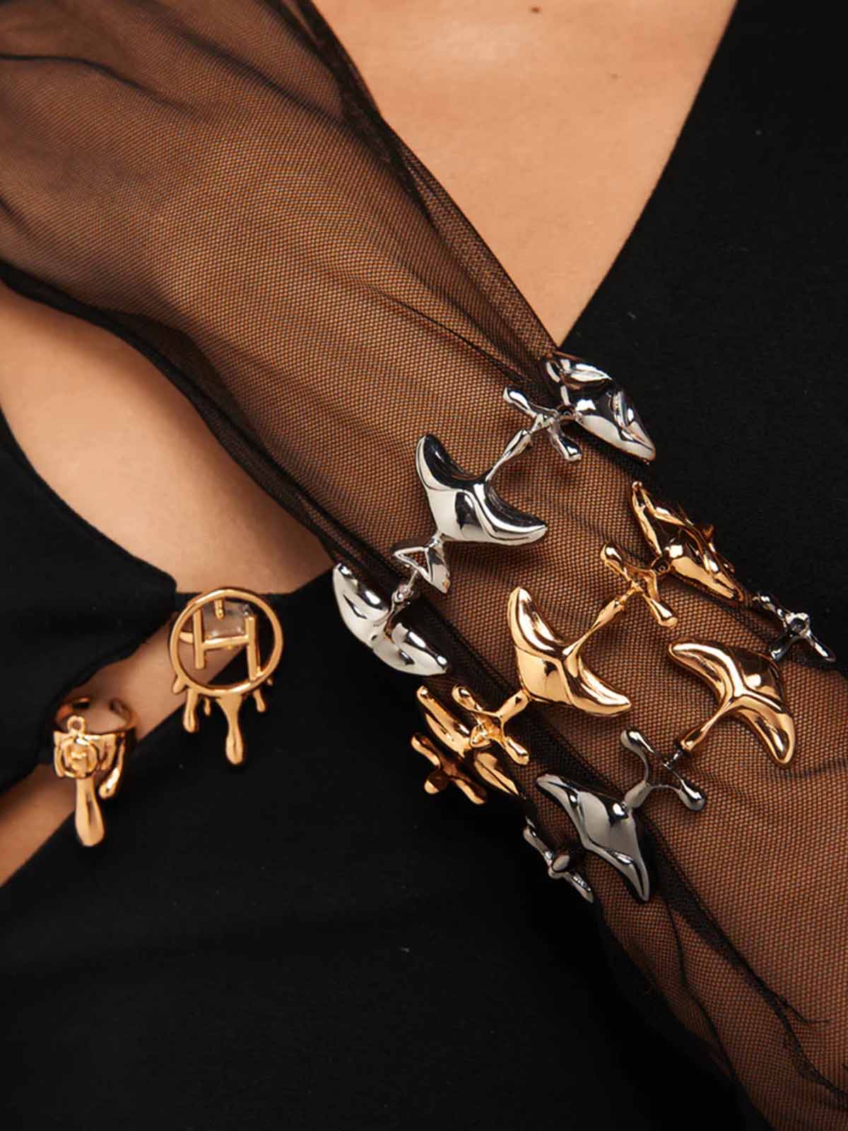 The Shroomhead bangle is a versatile piece created in 22 KT gold plating, that will effortlessly take the centerstage in any outfit. Designed to uplift the entire look, the bracelet features the new motif of the House in a contemporary version, promising an individualistic look through its refined artistry.