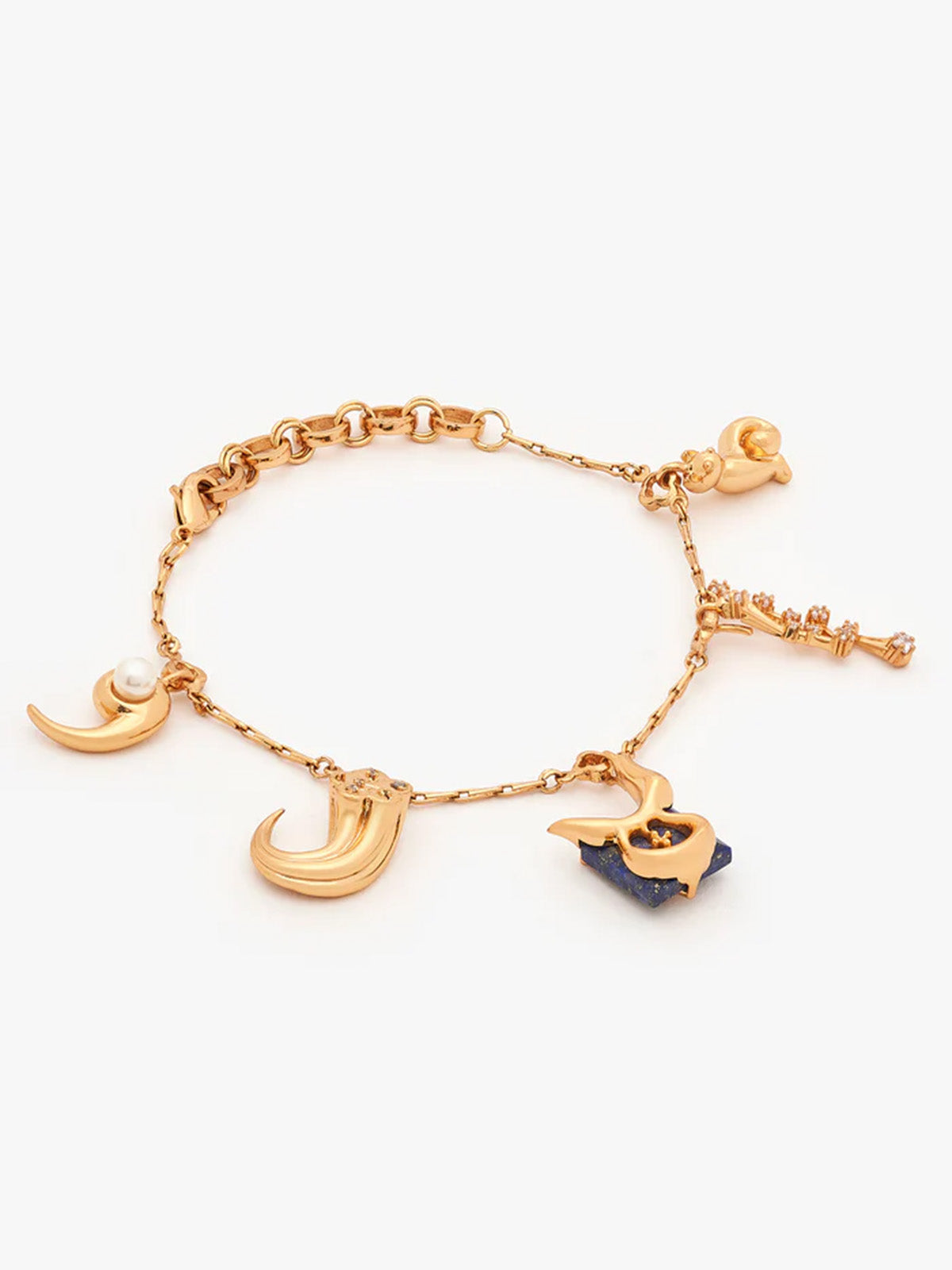 Craft your own celestial story with a bespoke cosmic masterpiece that allows you to weave your own universe. The Taurus zodiac motif, set in the semi-precious Lapis Lazuli and paired with the Taurus constellation charm, forms the heart of your piece. Personalise it with exquisite good luck charms, including your fortune number, guiding spirit animal, and additional celestial constellations, elegantly embellished with the OH celestial poppy tusk. Meticulously handcrafted, these delicate charms are designed to encapsulate your elegance and individuality. Finished in 22k rose
