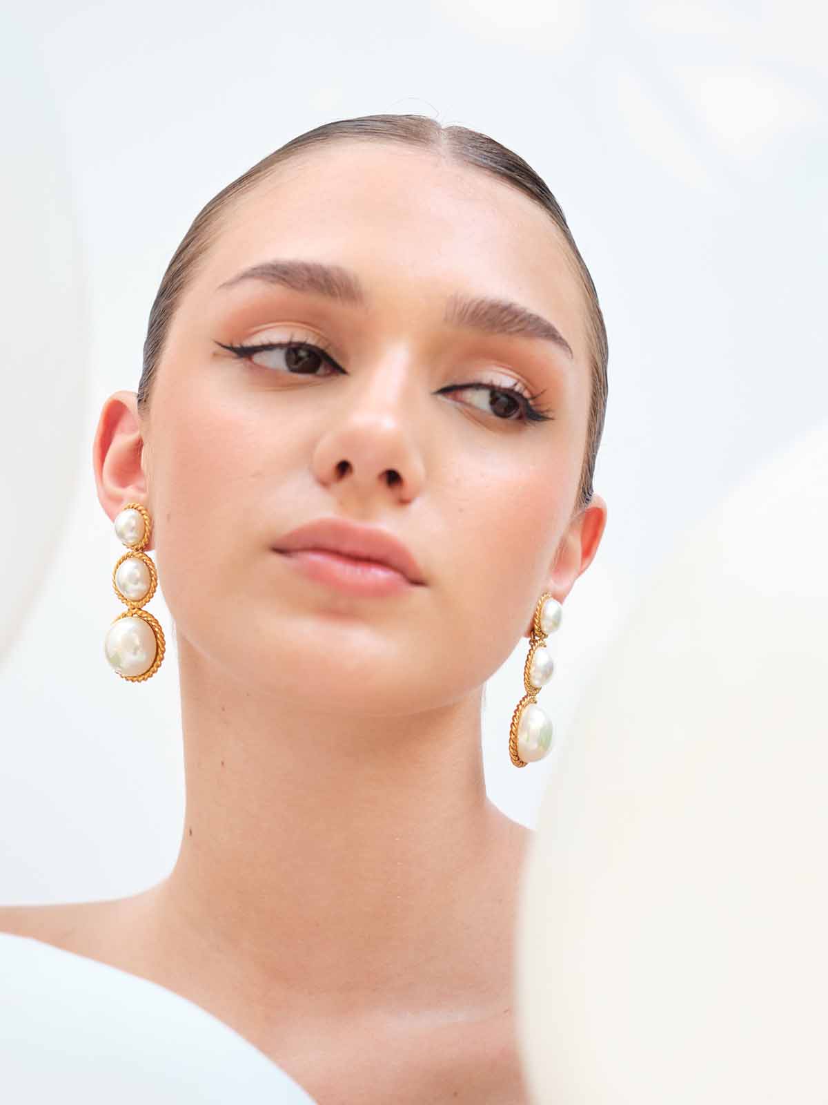 Composition/Fabric: Manufactured Pearl,22k Gold-Plated Brass