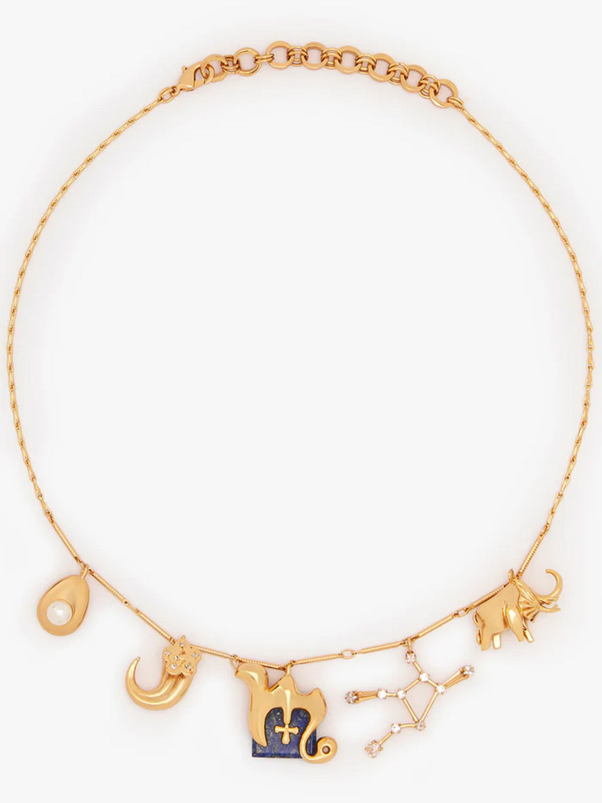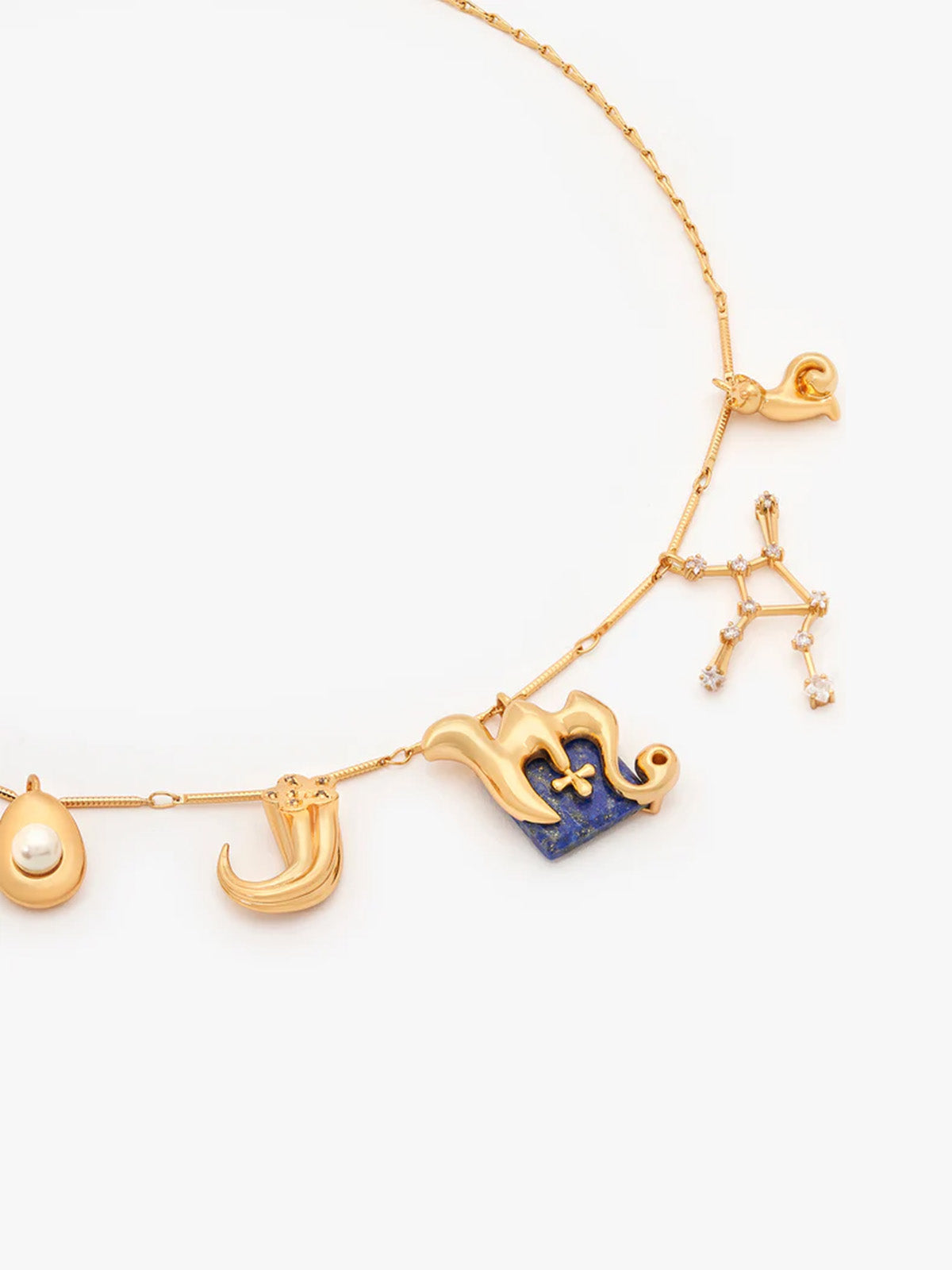 Craft your own celestial story with a bespoke cosmic masterpiece that allows you to weave your own universe. The Virgo zodiac motif, set in the semi-precious Lapis Lazuli and paired with the virgo constellation charm, forms the heart of your piece. Personalise it with exquisite good luck charms, including your fortune number, guiding spirit animal, and additional celestial constellations, elegantly embellished with the OH celestial poppy tusk. Meticulously handcrafted, these delicate charms are designed to encapsulate your elegance and individuality. Finished in 22k gold.