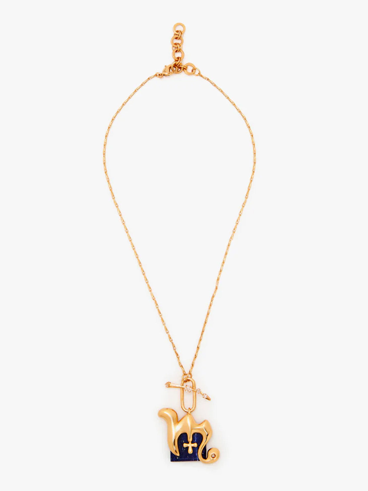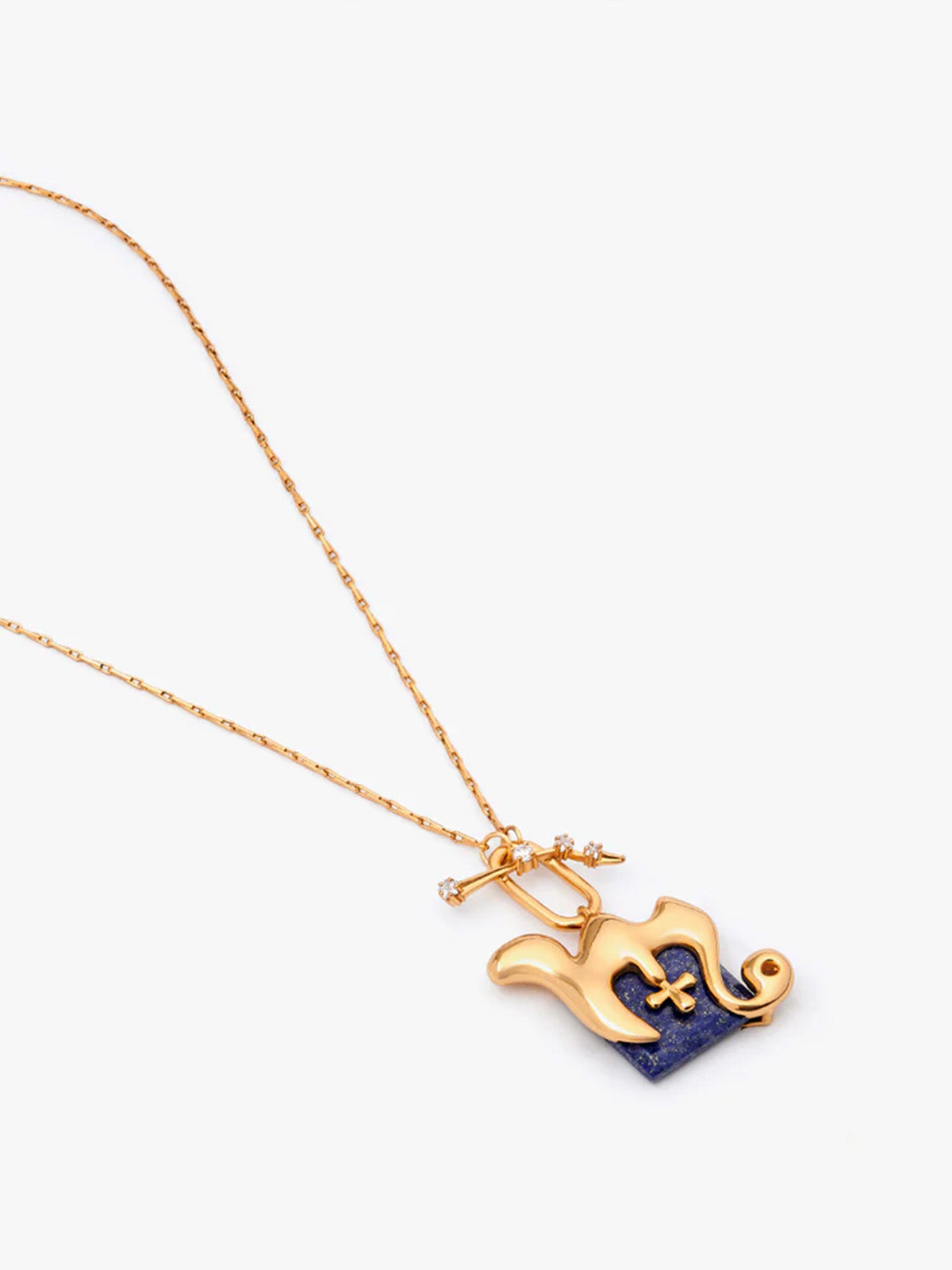 Inspired by the iconic bulbous design of the Lazuli Shroom Head, the Virgo Zodiac Pendant is a sculptural masterpiece, paying homage to the house’s passion for astral wonders. At its heart lies an alluring lapis lazuli, while a T-clasp encrusted with sparkling cubic zirconia adds a sophisticated glint. Moulded in brass and plated with 22k gold, this pendant serves as a talisman for your inner brilliance, perfect for any day and every occasion.