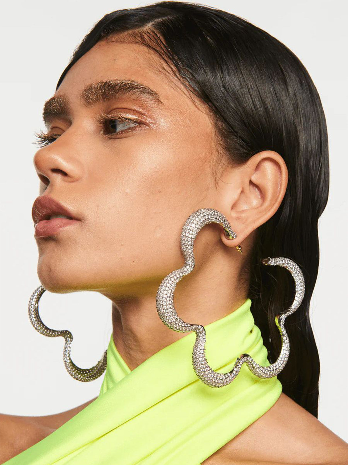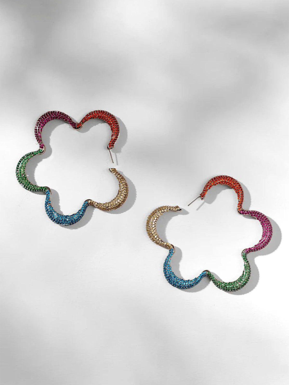 Blossoming from a radiant rendition of the House’s five petal monogram, The Christina Hoop Earrings in multicolour accent an iridescent look finished in 22 KT silver and encrusted with Cubic Zircon in prismatic tones. The creation is further enhanced with a meticulous finish of 2264 hand set stone insets. Showcasing a modern way to wear colour, the creation is interspersed with a luxe palette of crystal yellow, blue, green, ruby red and orange that delicately form the floral structure, perfect to make a statement when paired with your next outfit.