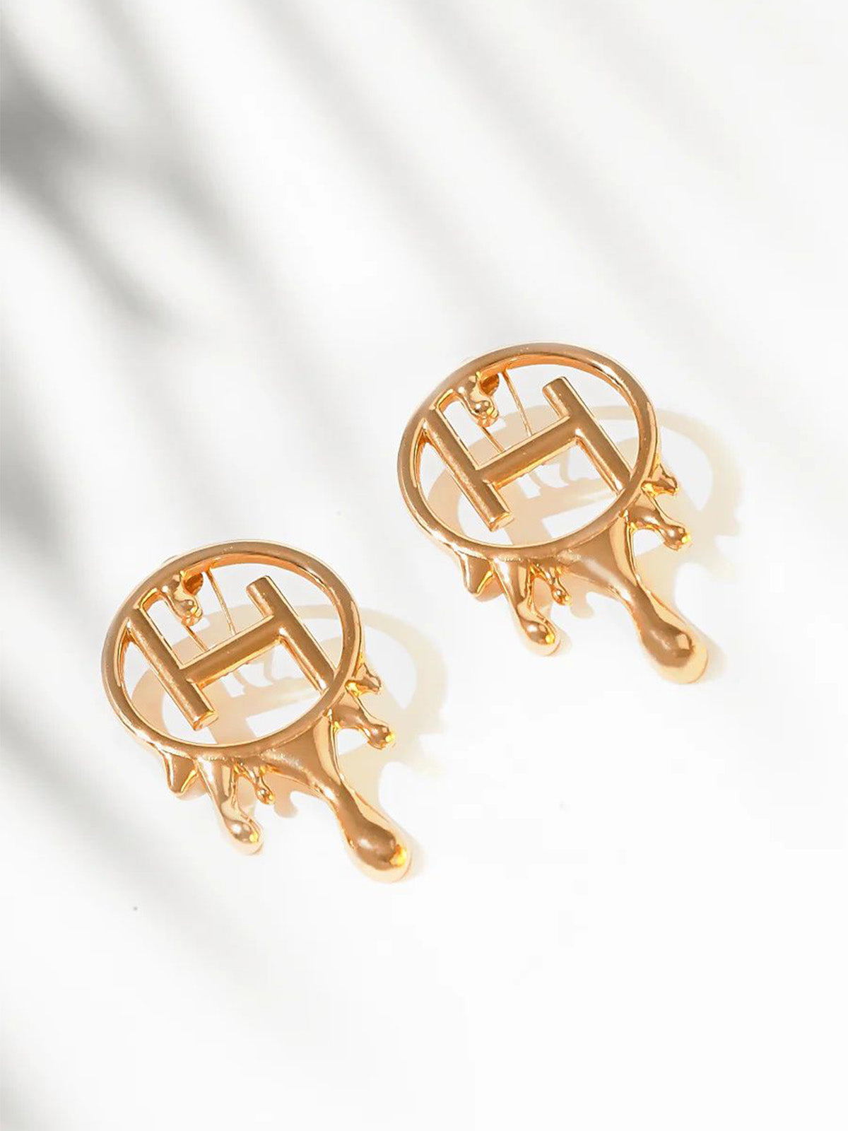 An iconic reinterpretation of the House’s new Iconic monogram this season the Drip"OH" Maxi Earrings embrace an artistic aesthetic by featuring a dripping accent in its design. An exquisite and timeless creation, the earrings are handcrafted in 22 KT gold plating that elegantly adorn the ears. The iconic silhouette is the ideal way to add a touch of radiance to your everyday looks with the House’s initials taking the centre stage.