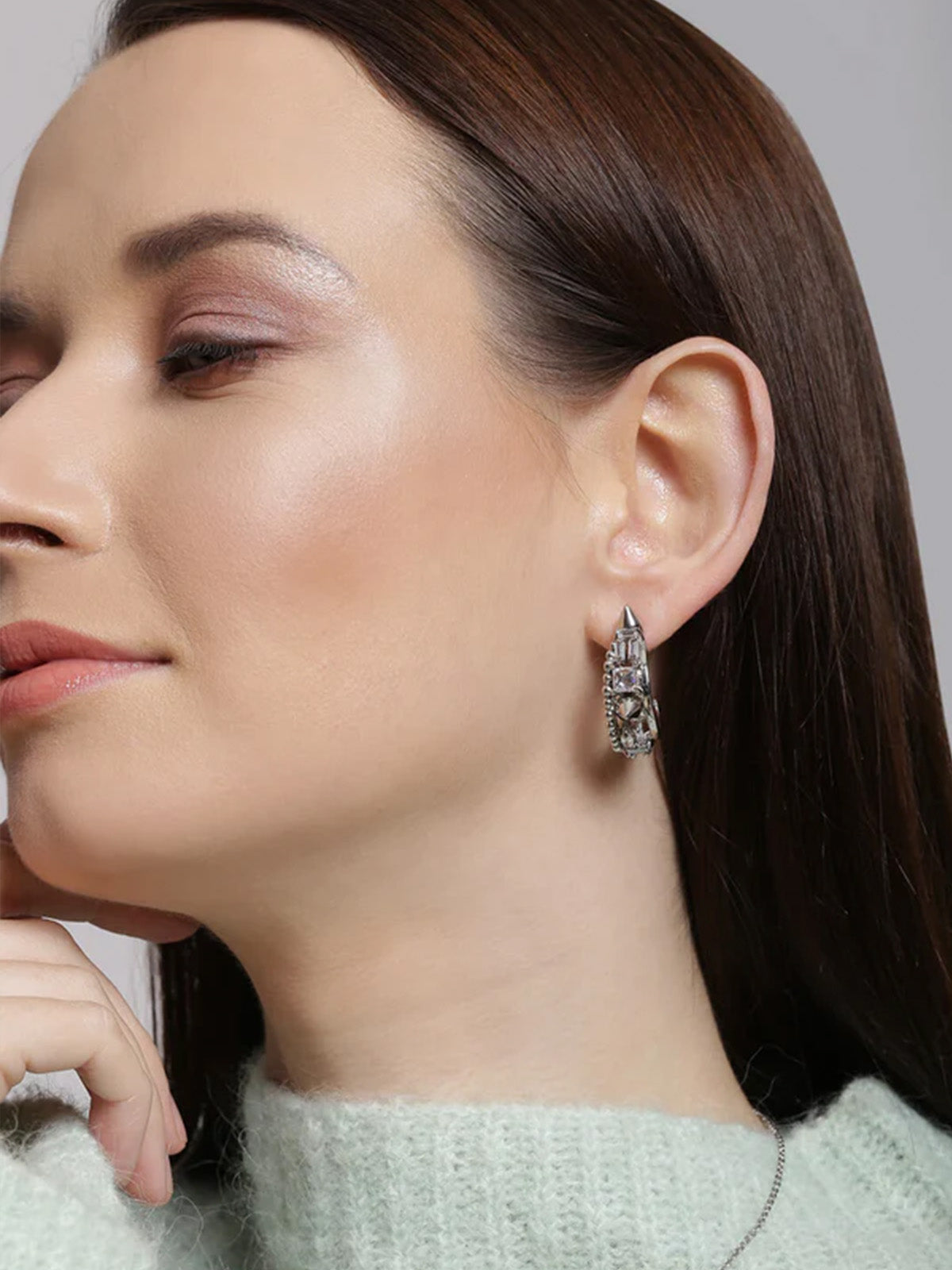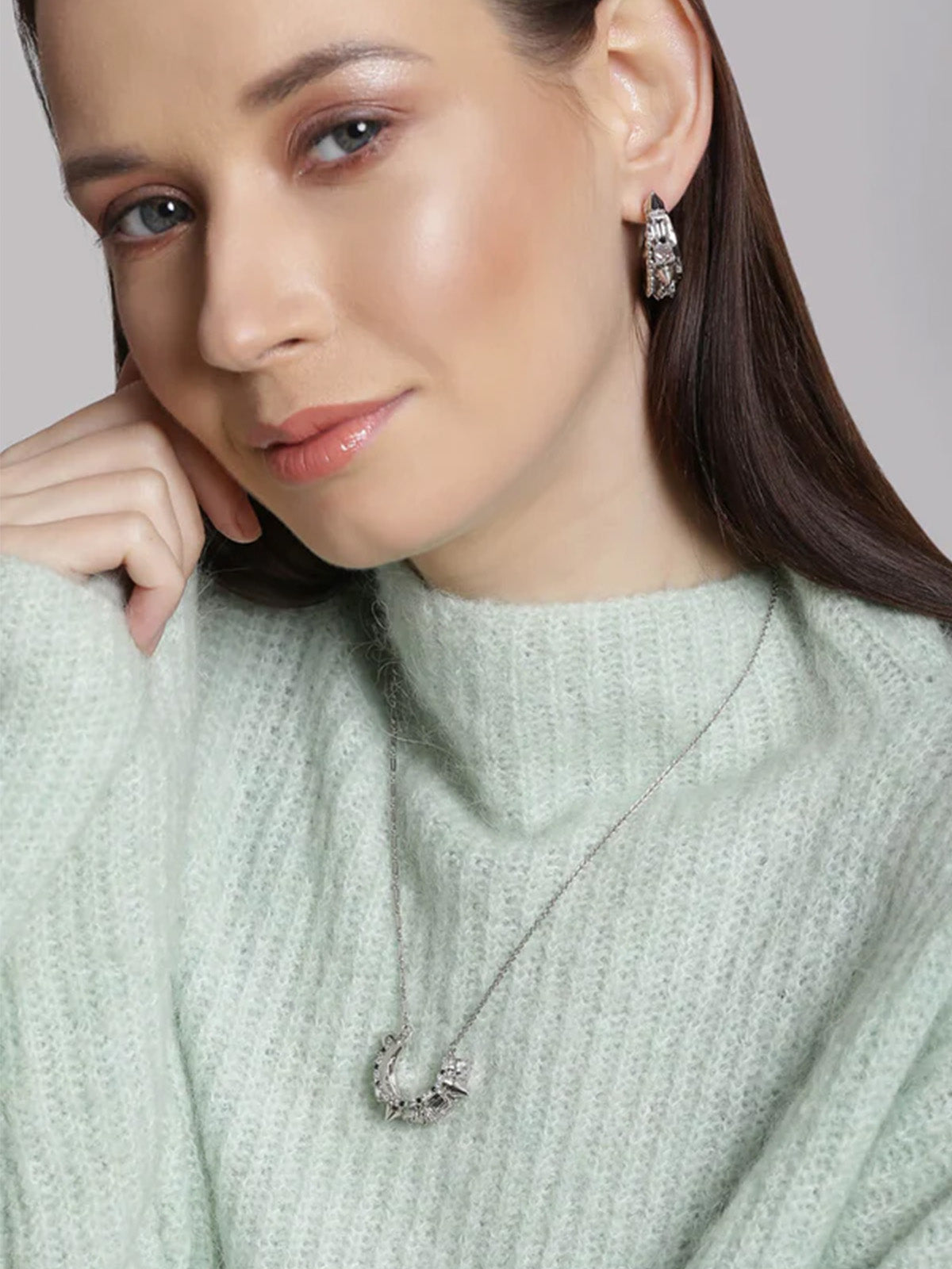 The archway gives way for a subtle yet bold accent: an intricate contemporary jewellery design with tiny spikes against glittering Swarovski Crystals. Pair with the Crescent Pendant or let it speak for itself.