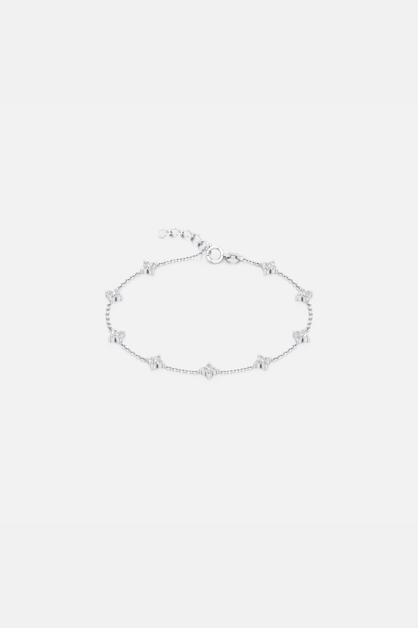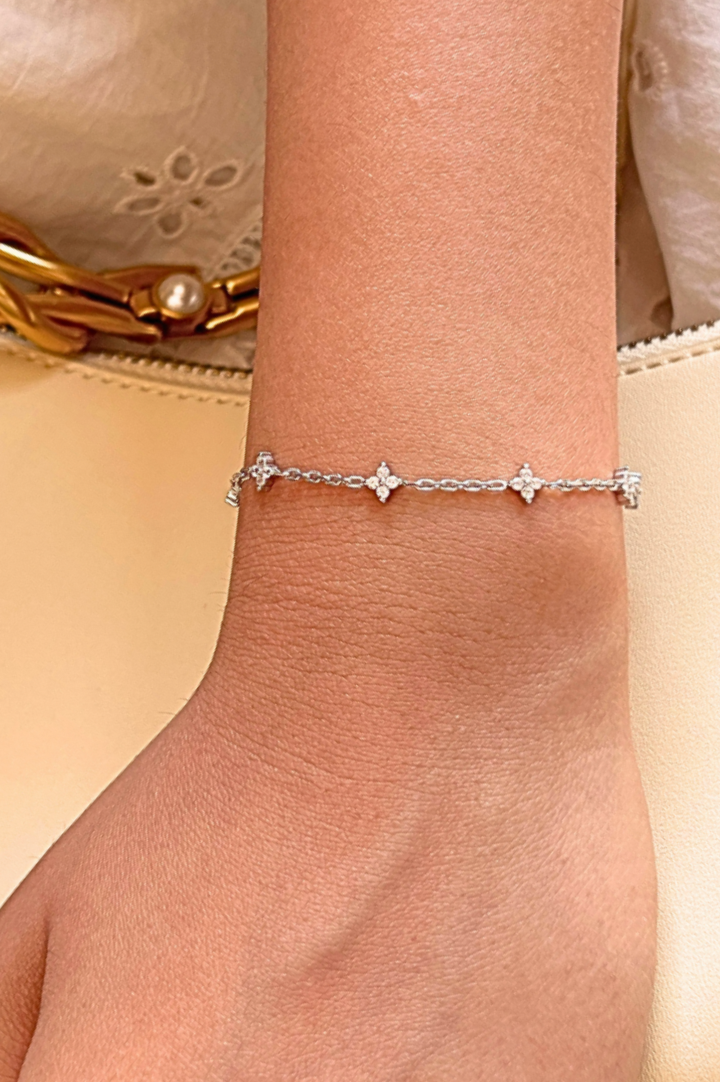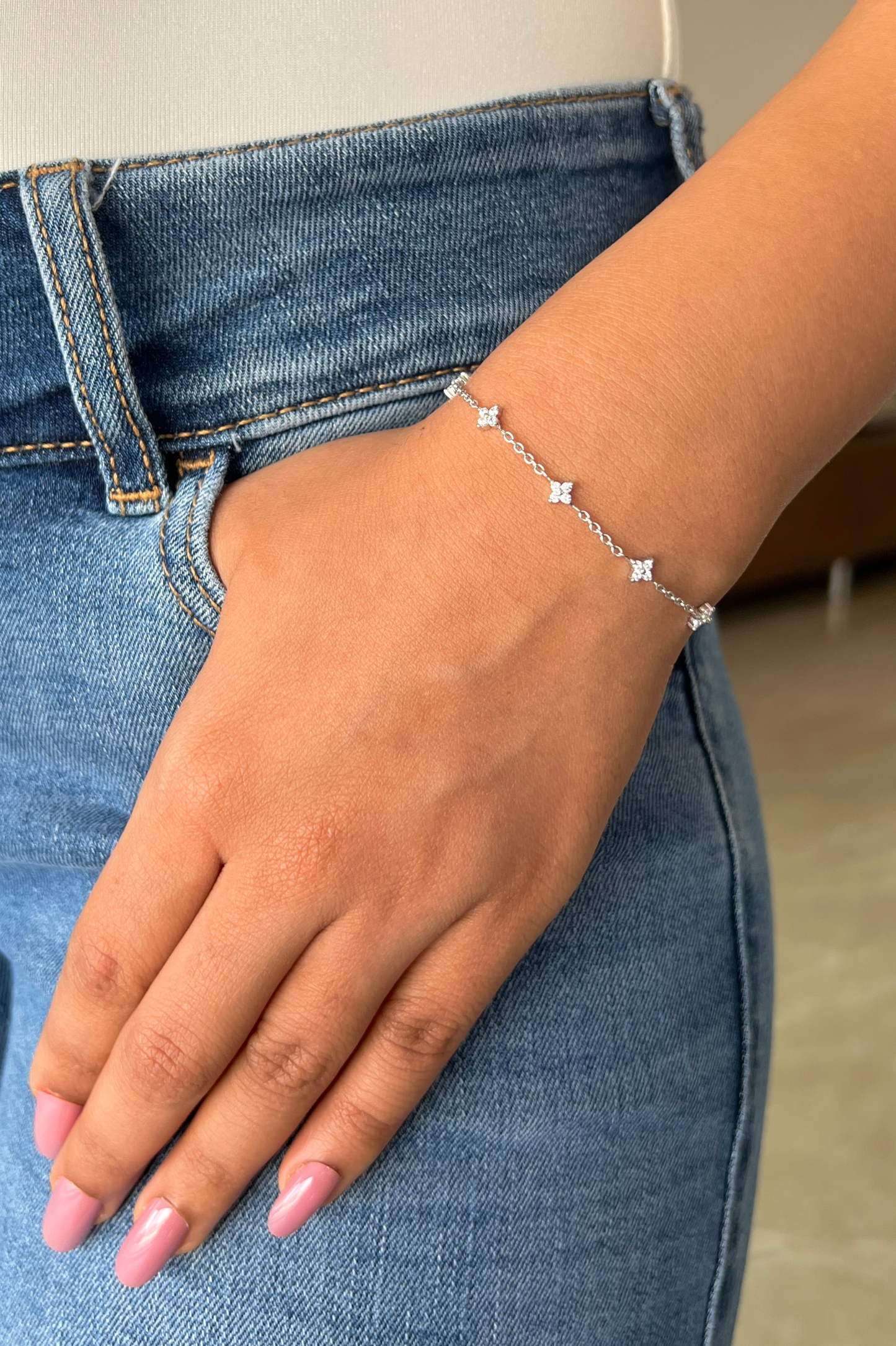 Indulge in the delicate beauty of our Floral Quartet Bracelet - a symphony of blooms delicately crafted to adorn your wrist, adding a touch of timeless elegance to any ensemble with its graceful charm.