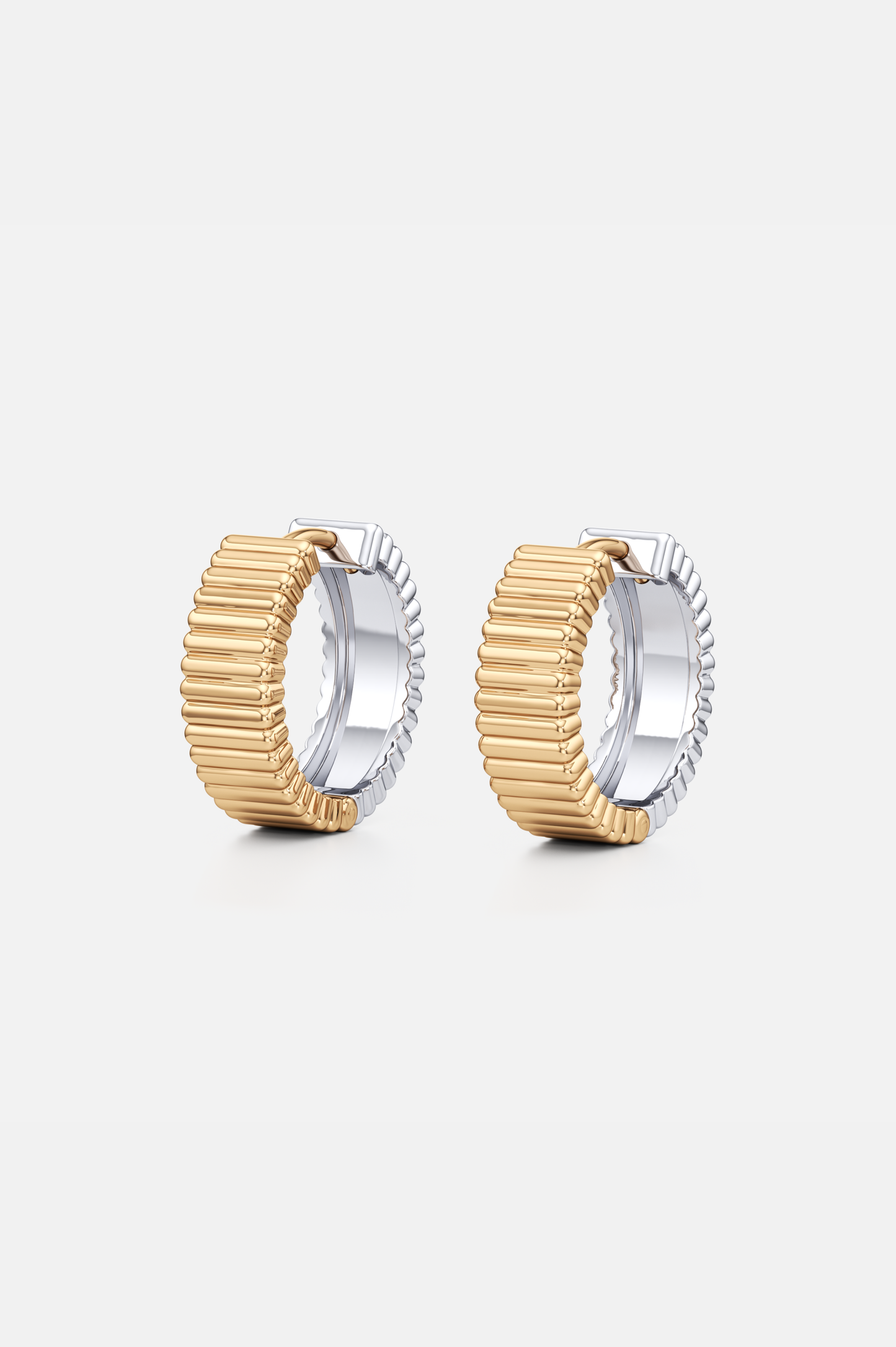 Two tones, one decision. Discover versatility with our Two-Tone Reversible Hoops. Effortlessly switch between silver and gold tones to suit your mood and outfit. Classic and yet contemporary, these textured beauties are perfect for any occasion.