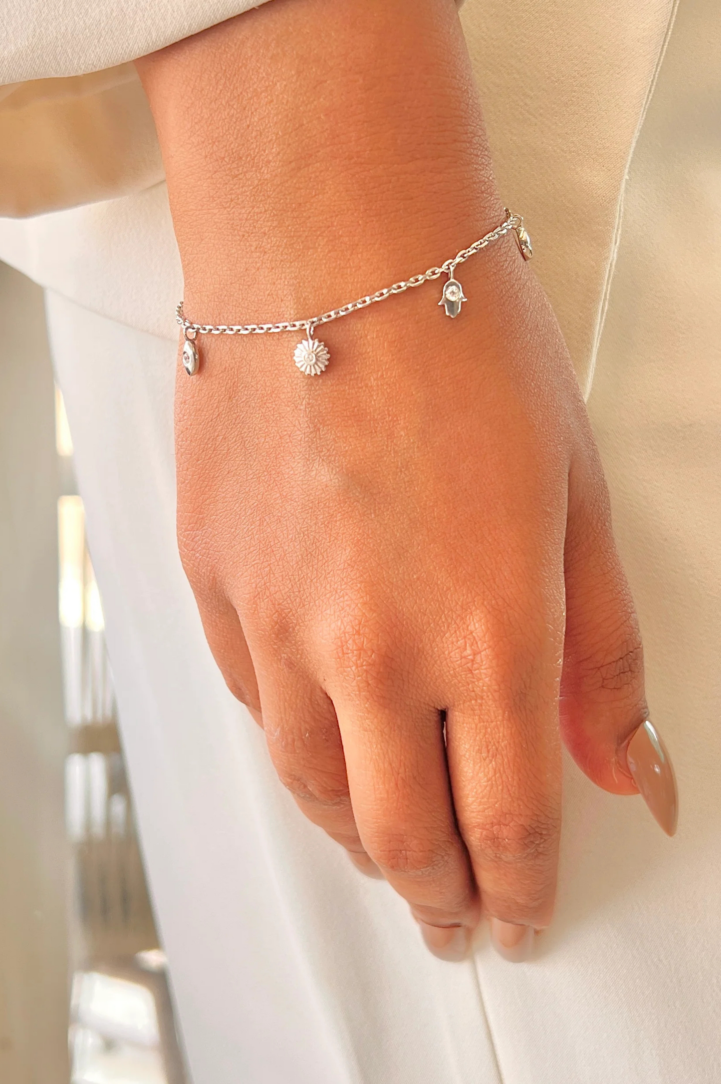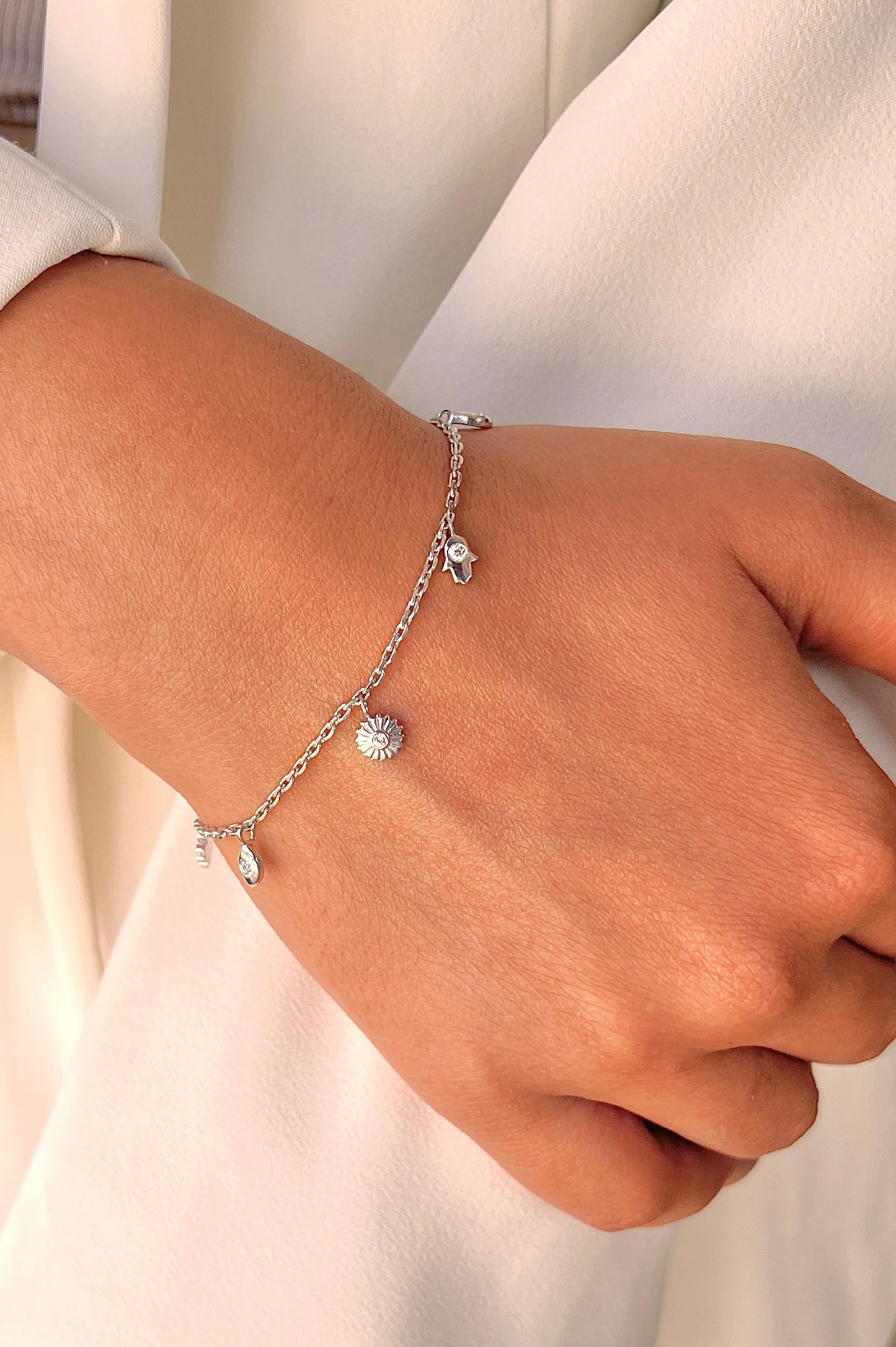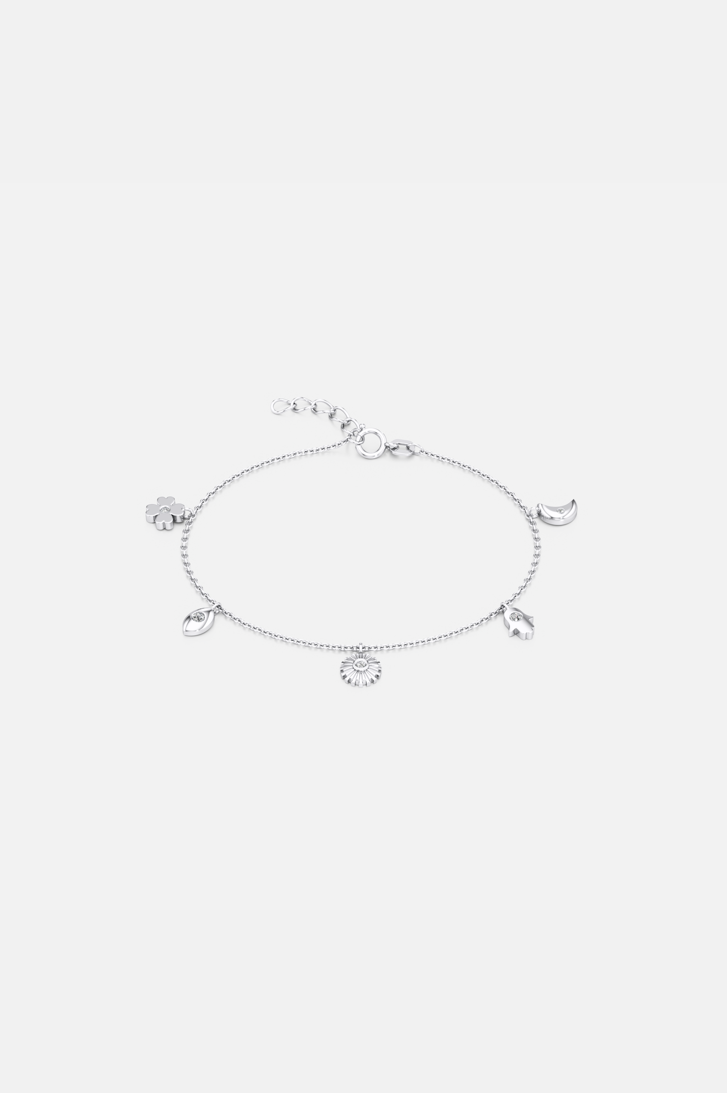 Featuring a mix of celestial and classic symbols, this charm bracelet adds a fun and dainty touch to your bracelet collection. And the best part? It's incredibly versatile, effortlessly complementing any outfit in your wardrobe.