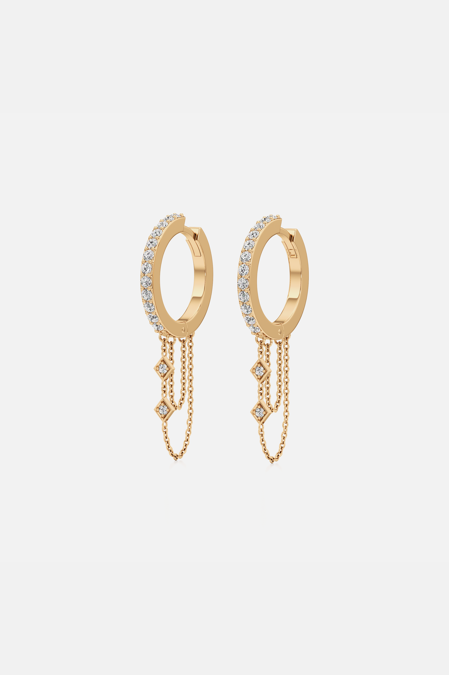 Tired of your usual hoops? Make a chic statement with our Kite Chain Earrings, featuring stunning pave hoops and elegant chain detailing. Perfect for those seeking something extraordinary, these earrings offer a truly unique look.