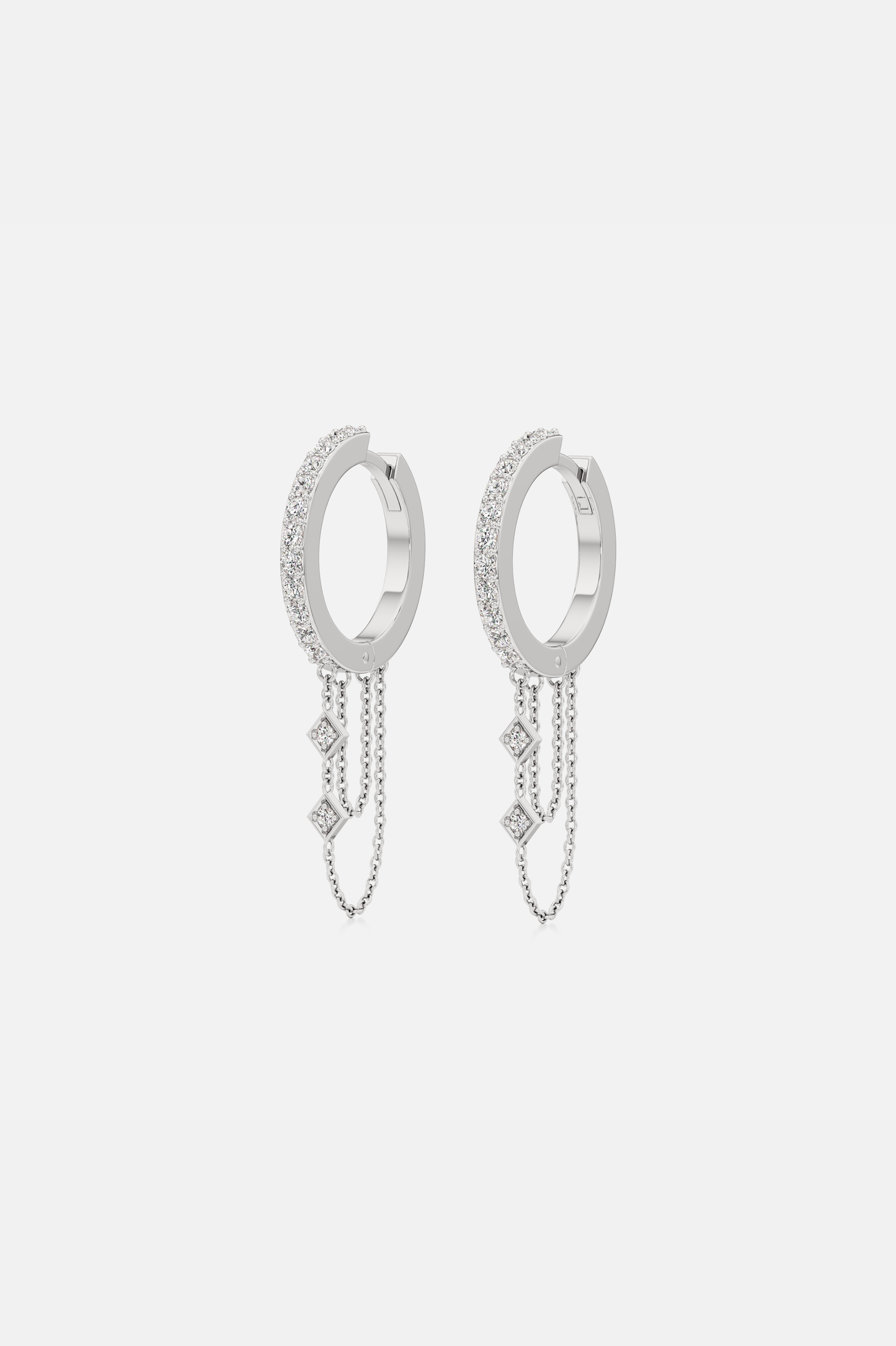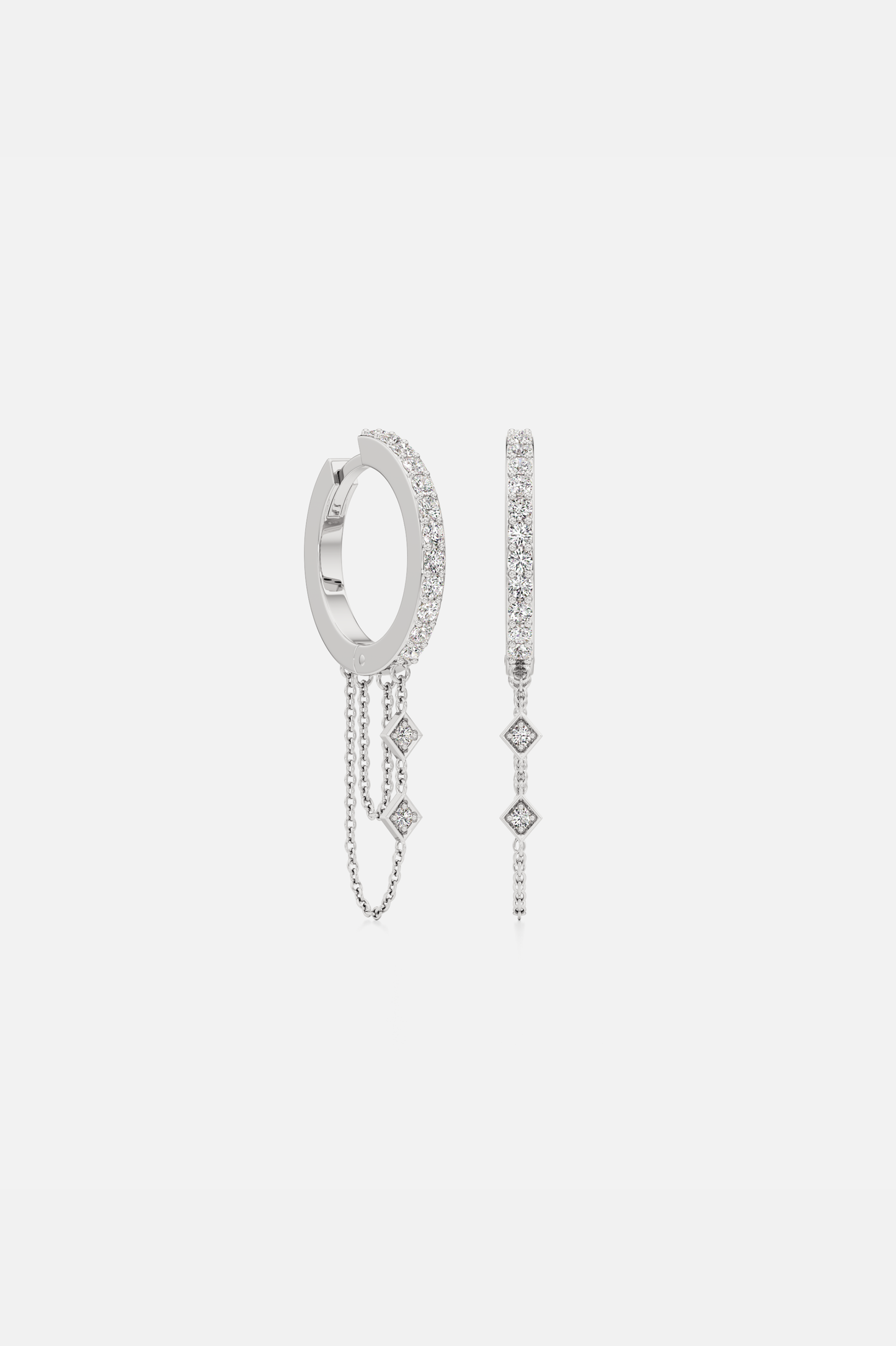 Tired of your usual hoops? Make a chic statement with our Kite Chain Earrings, featuring stunning pave hoops and elegant chain detailing. Perfect for those seeking something extraordinary, these earrings offer a truly unique look.