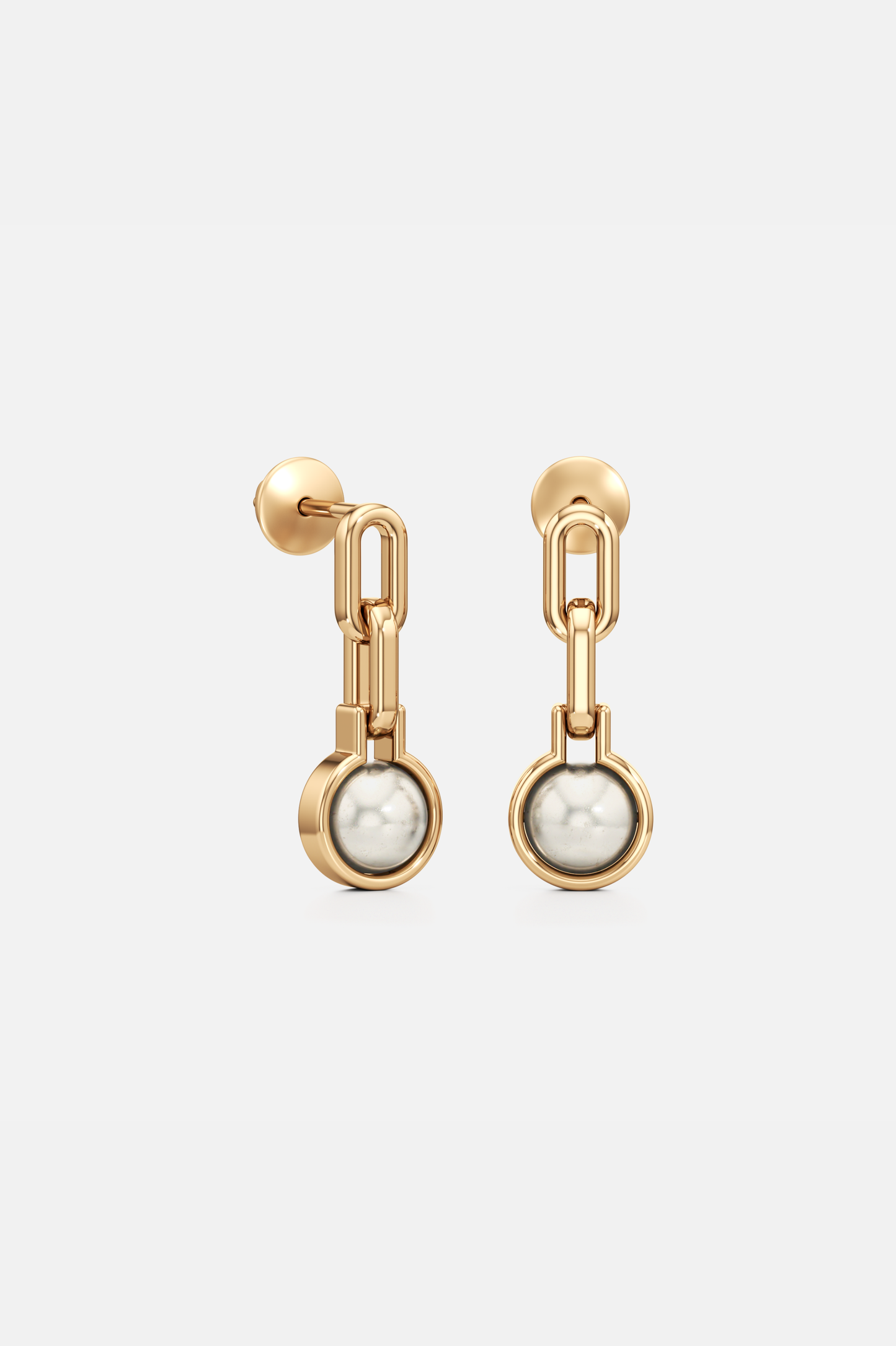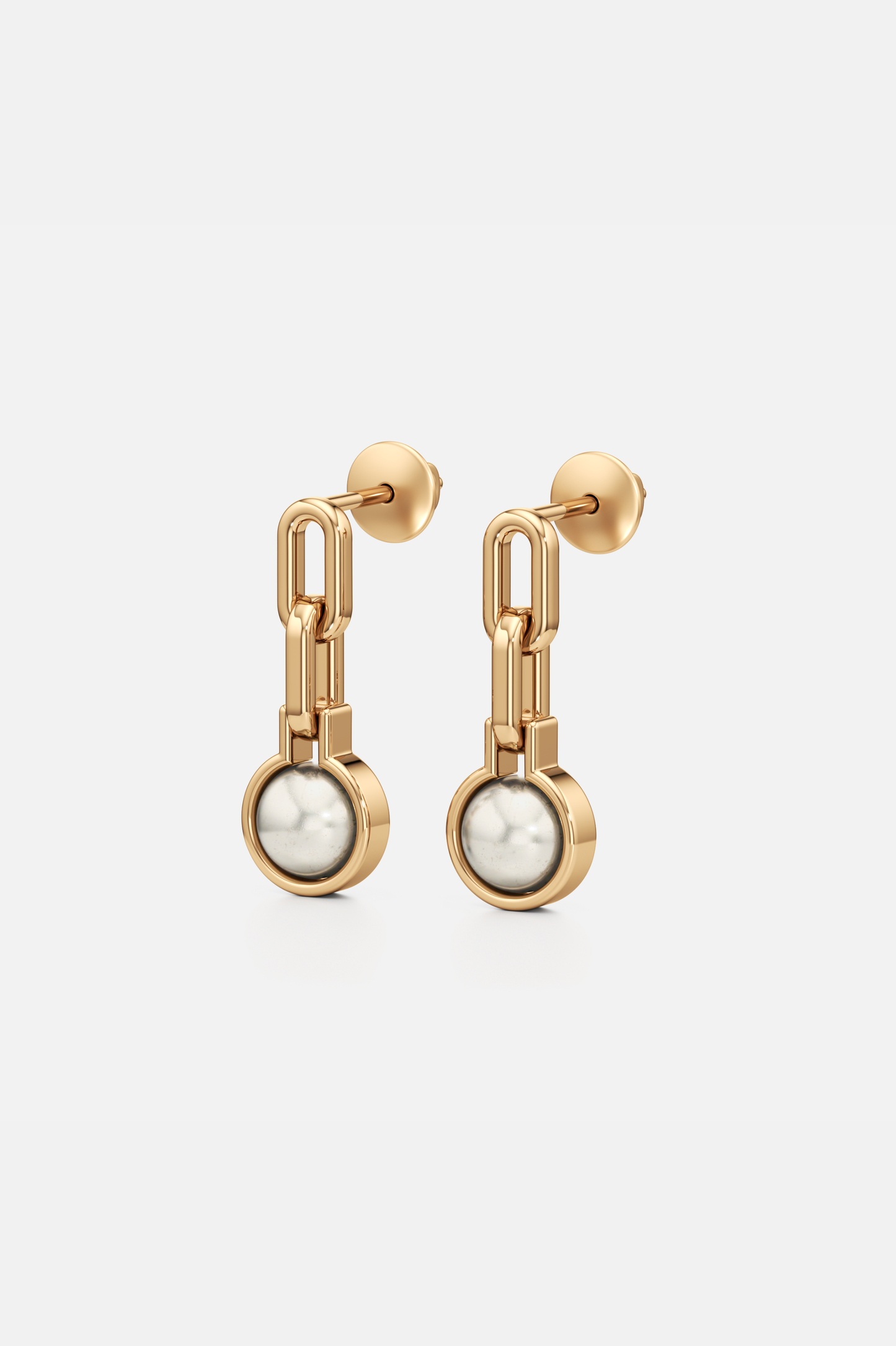 Classic pearls get a contemporary upgrade with our Pearl Link Earrings. Featuring sleek metal links that gracefully lead to a dangling pearl, these earrings blend timeless elegance with modern design. Perfect for any occasion, these linked beauties add a touch of sophistication and swing into style effortlessly.