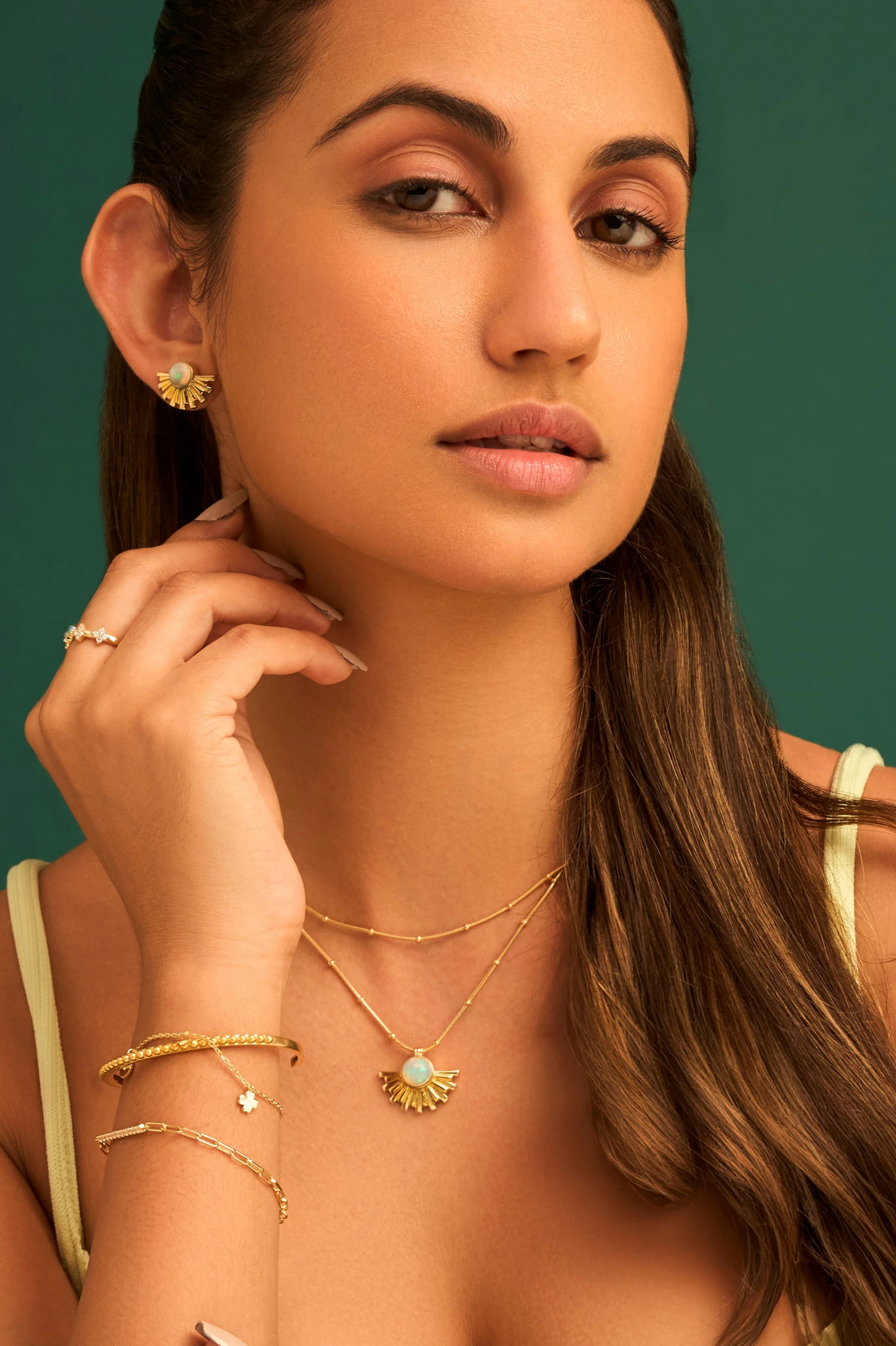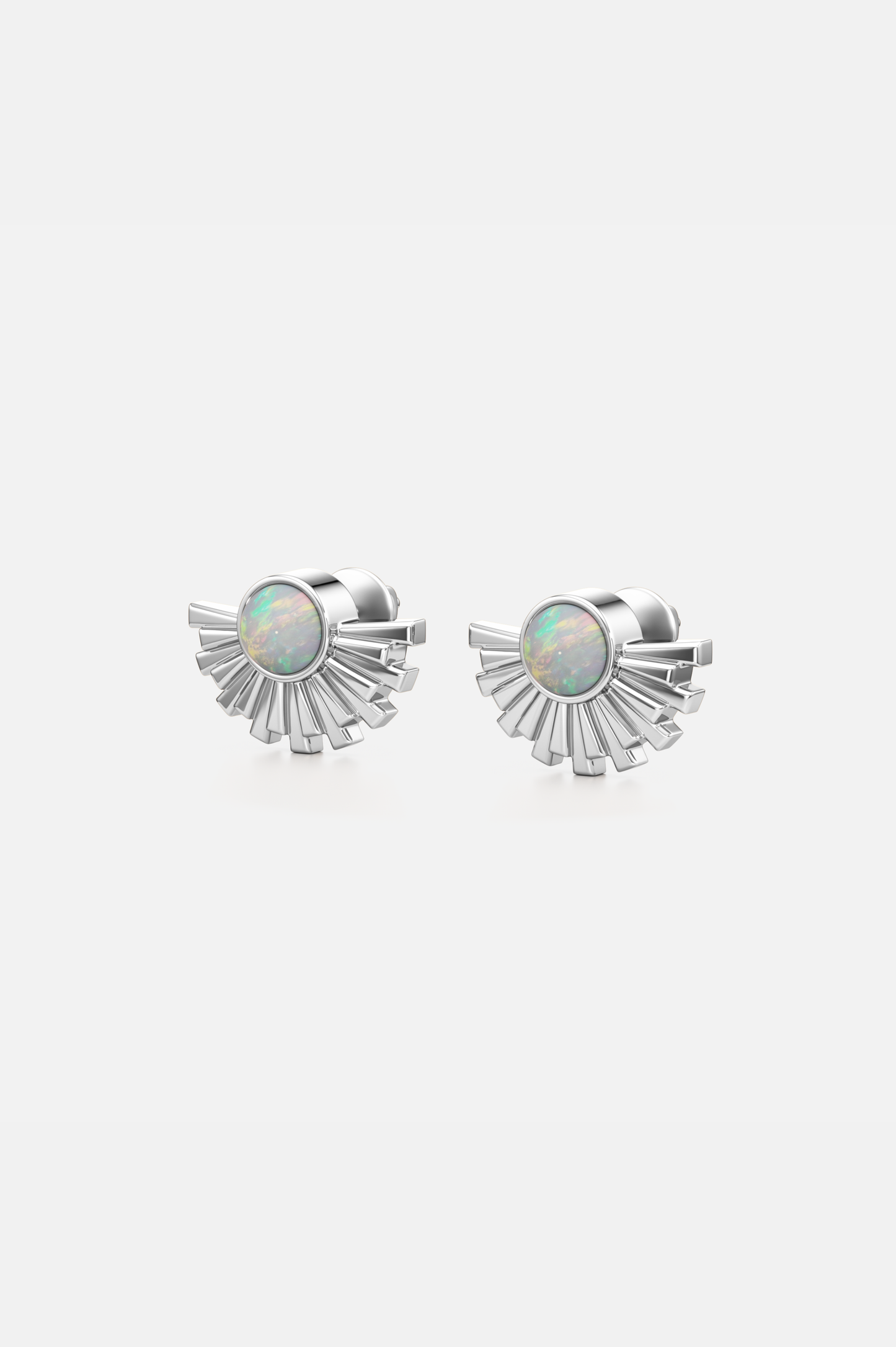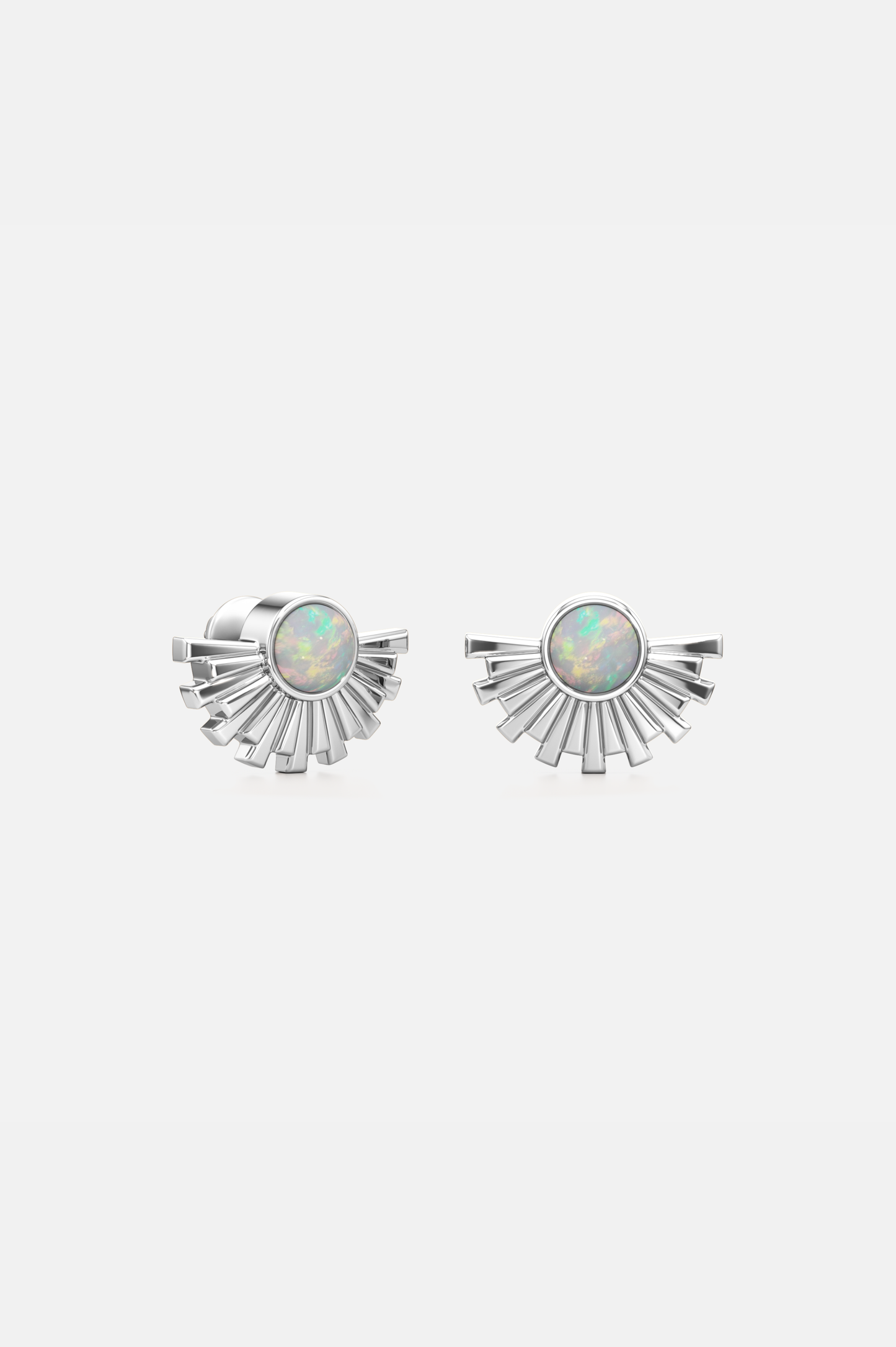 Indulge in the allure of our Solaris Opal Earrings. Each earring features an opal stone in a half sun-inspired design, radiating warmth and elegance.