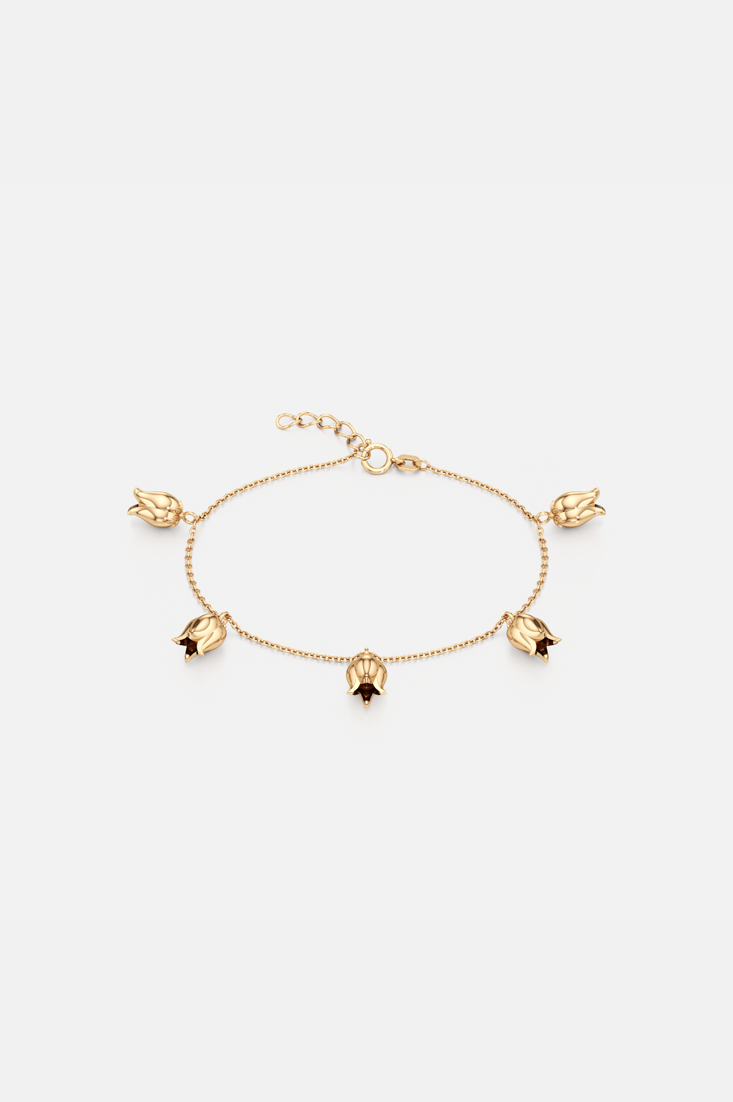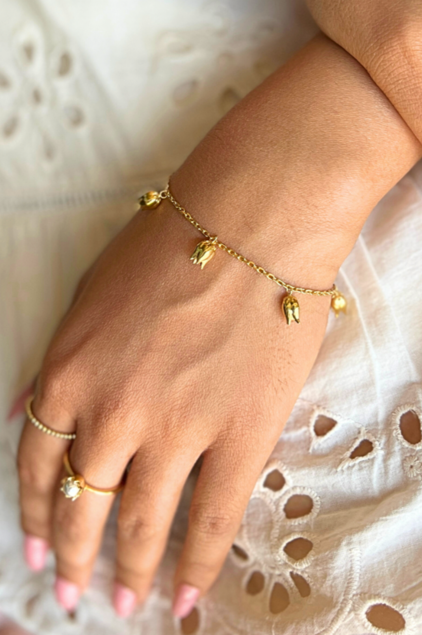 Featuring delicate tulip dangles crafted with refined detailing, our Tulip Dangler Bracelet is a testament to style and modern elegance.