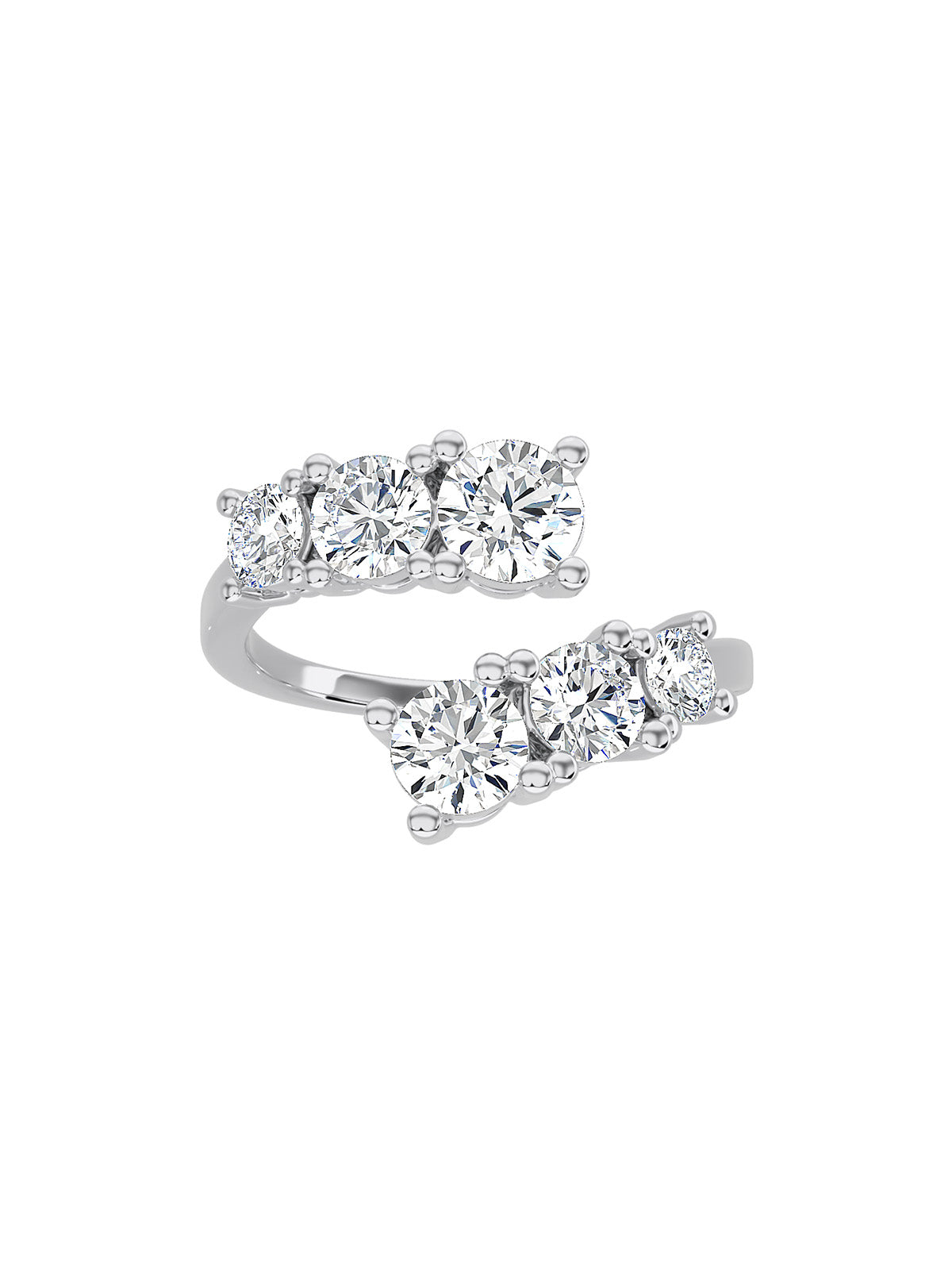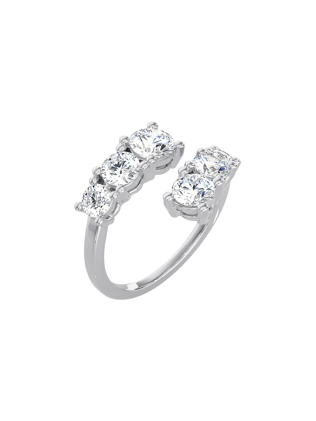 1.83 total carat weight zara ring with round brilliant cut lab grown diamonds E-F color and VVS-VS purity.
