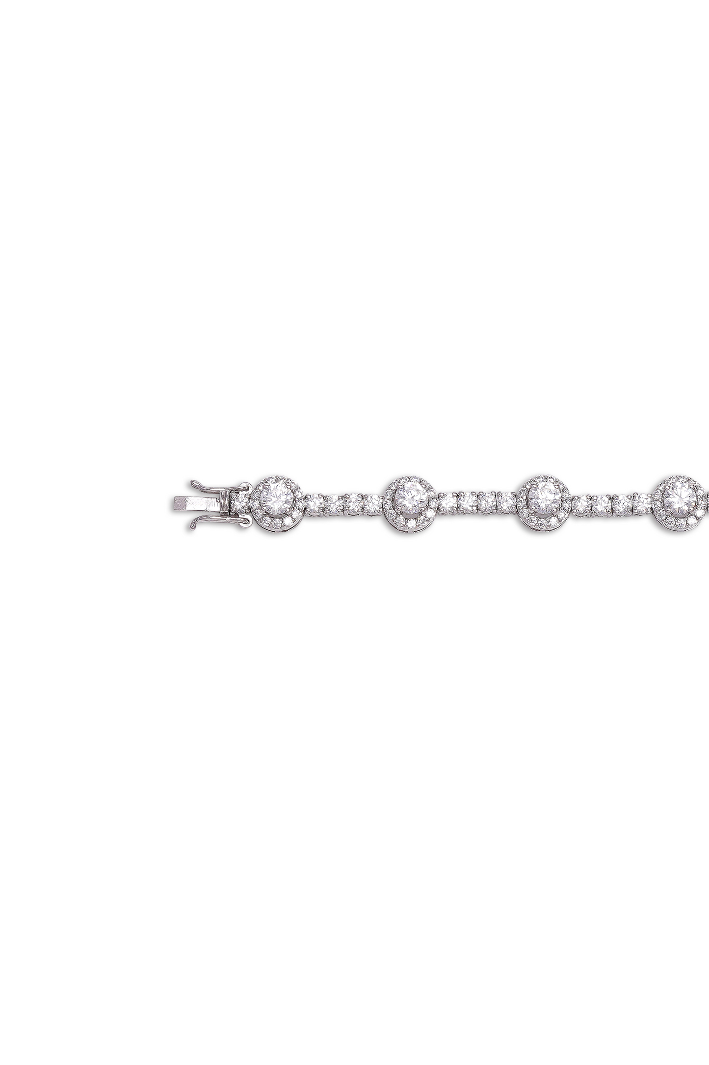 A perfect harmony of brilliance and balance, the Radiant Diamanté Bracelet reimagines the classic tennis bracelet with a touch of grandeur. Alternating between clusters of four round stones and a larger halo-set centerpiece, this design creates a rhythmic play of sparkle that catches the light with every movement. Designed to stand out yet remain effortlessly wearable, it’s the perfect statement piece for any occasion.